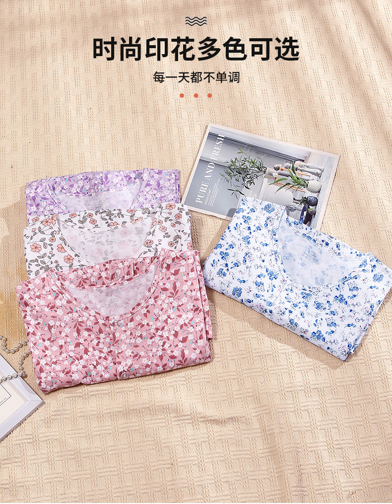 • 중노년 어머니의 순면 잠옷(꽃무늬 보라색)