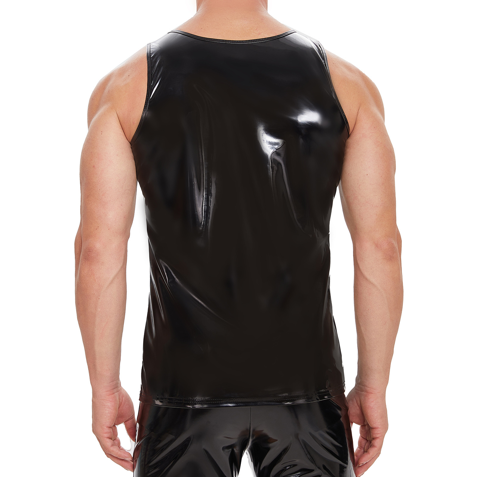 국경 간 제품 유럽 및 미국 남성 플러스 사이즈 PU 밝은 가죽 민소매 V 넥 조끼 정확한 크기 냄새 없음