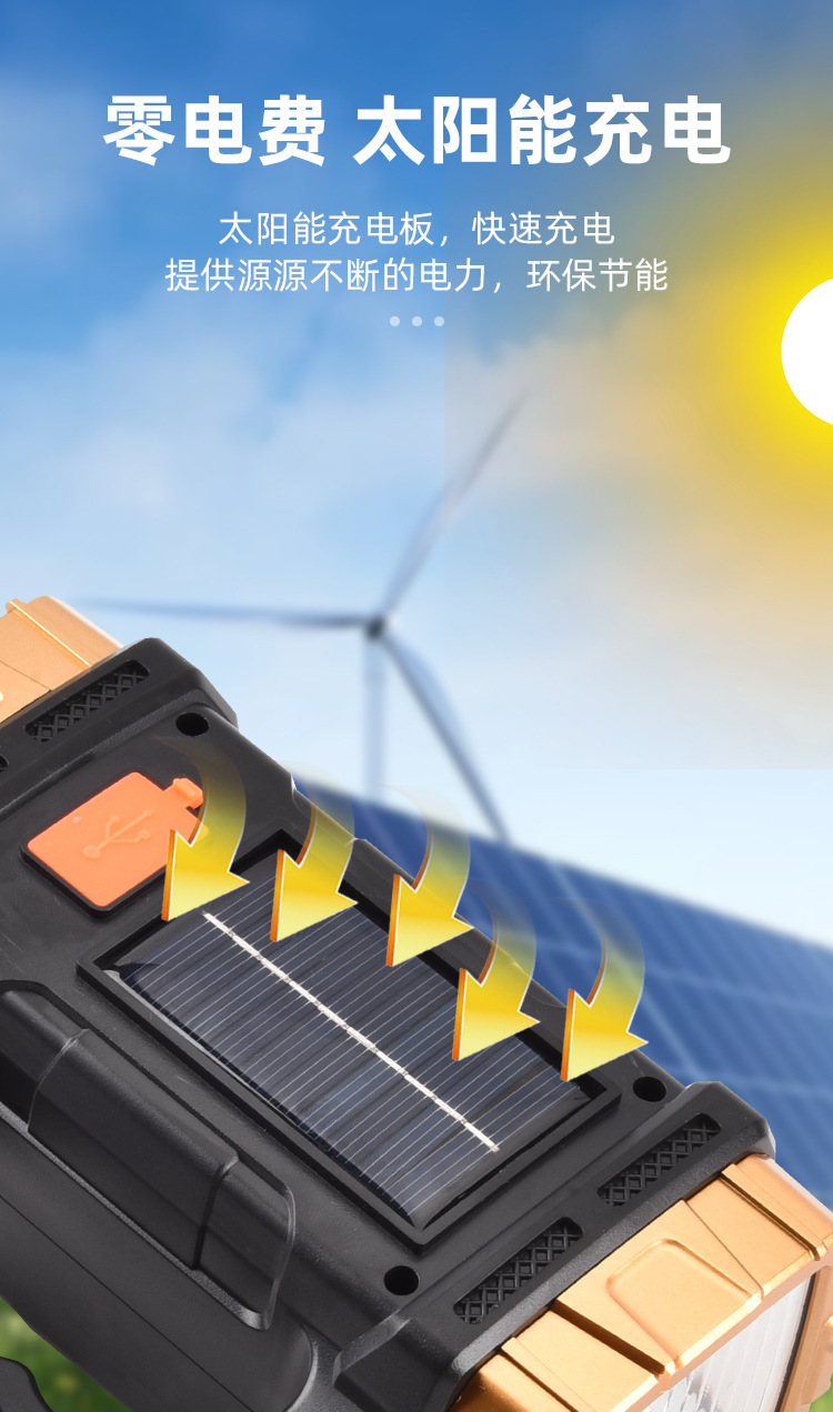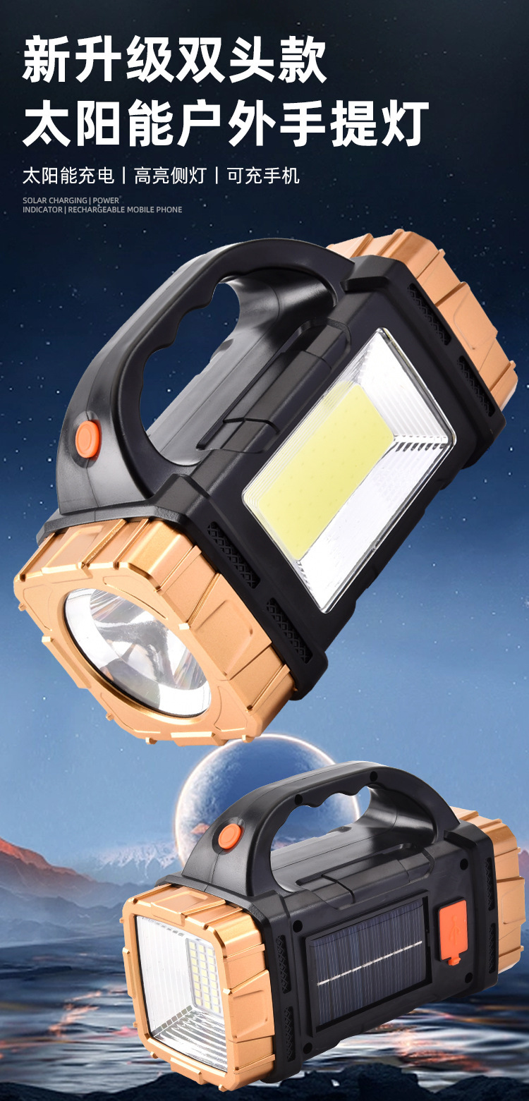국경 led 휴대용 램프 태양 충전 야외 다기능 캠핑 cob 비상 조명 손전등 야외 램프