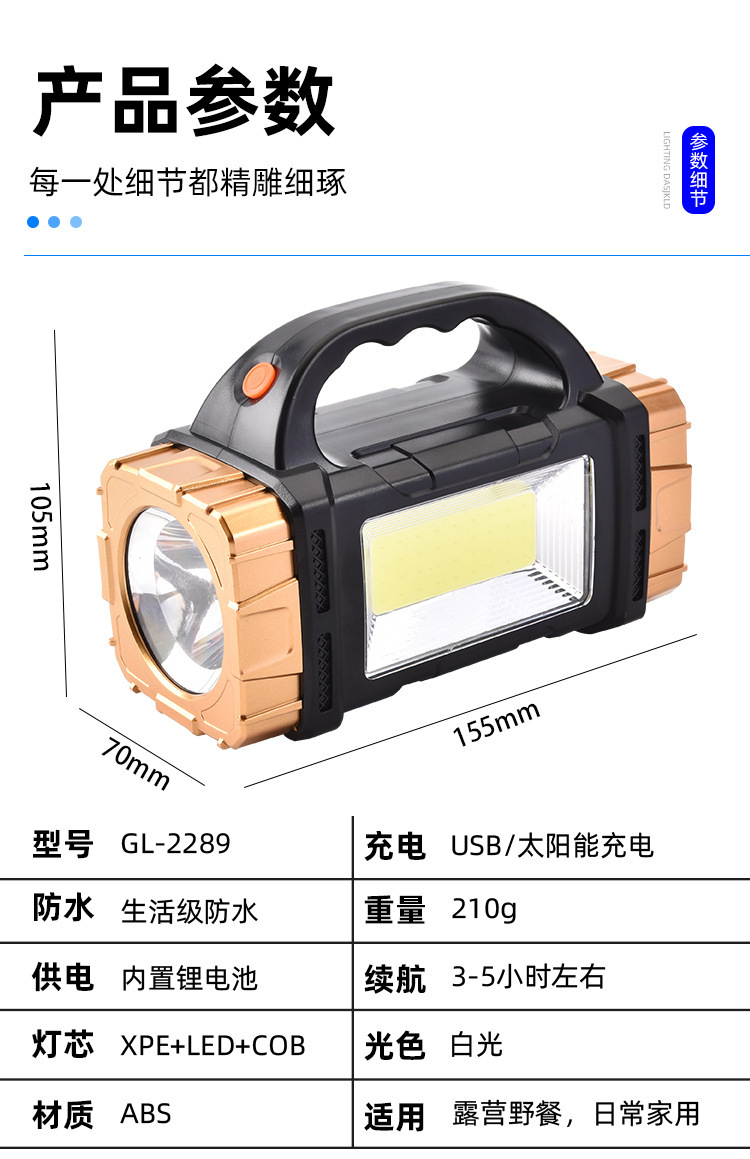 국경 led 휴대용 램프 태양 충전 야외 다기능 캠핑 cob 비상 조명 손전등 야외 램프스토어 가기
