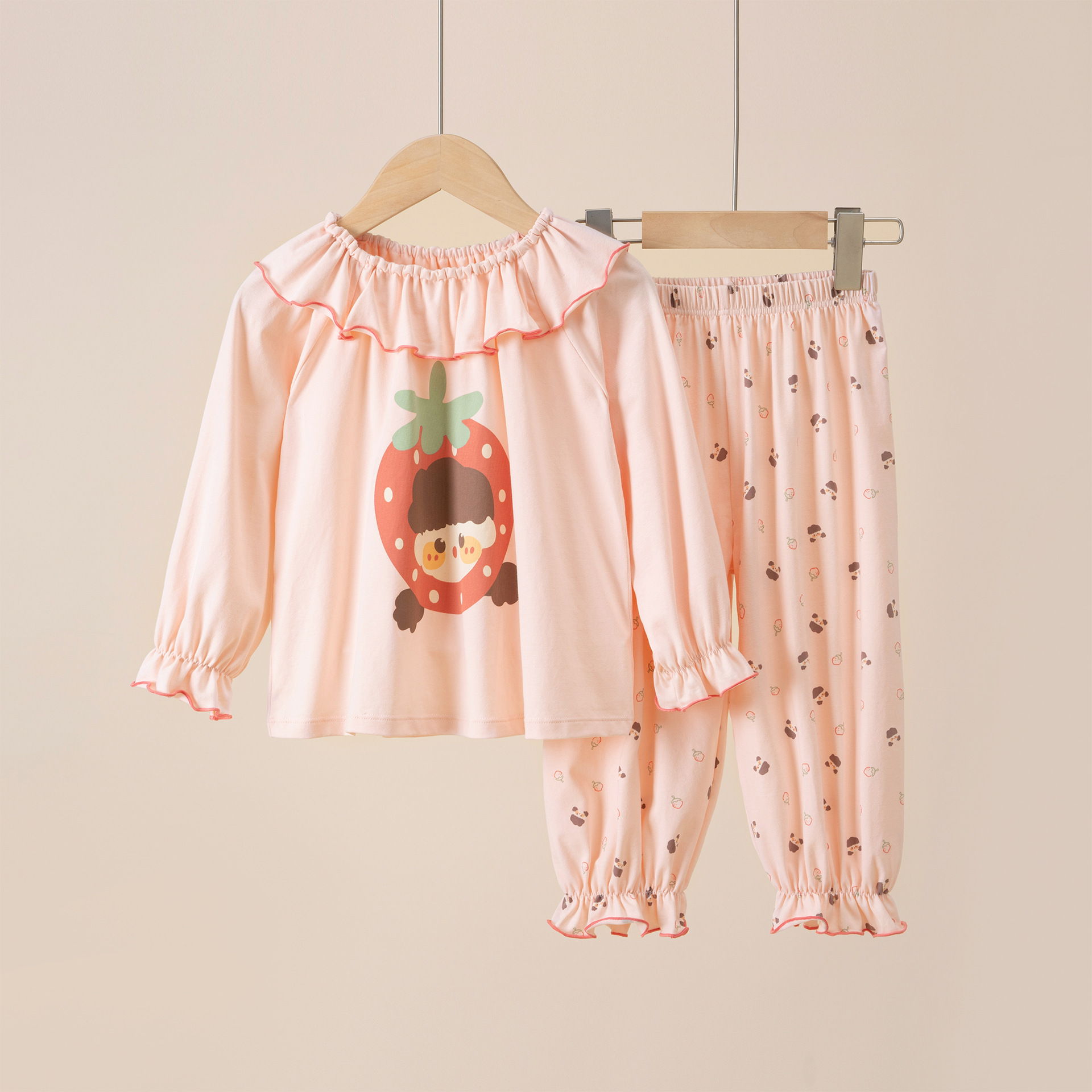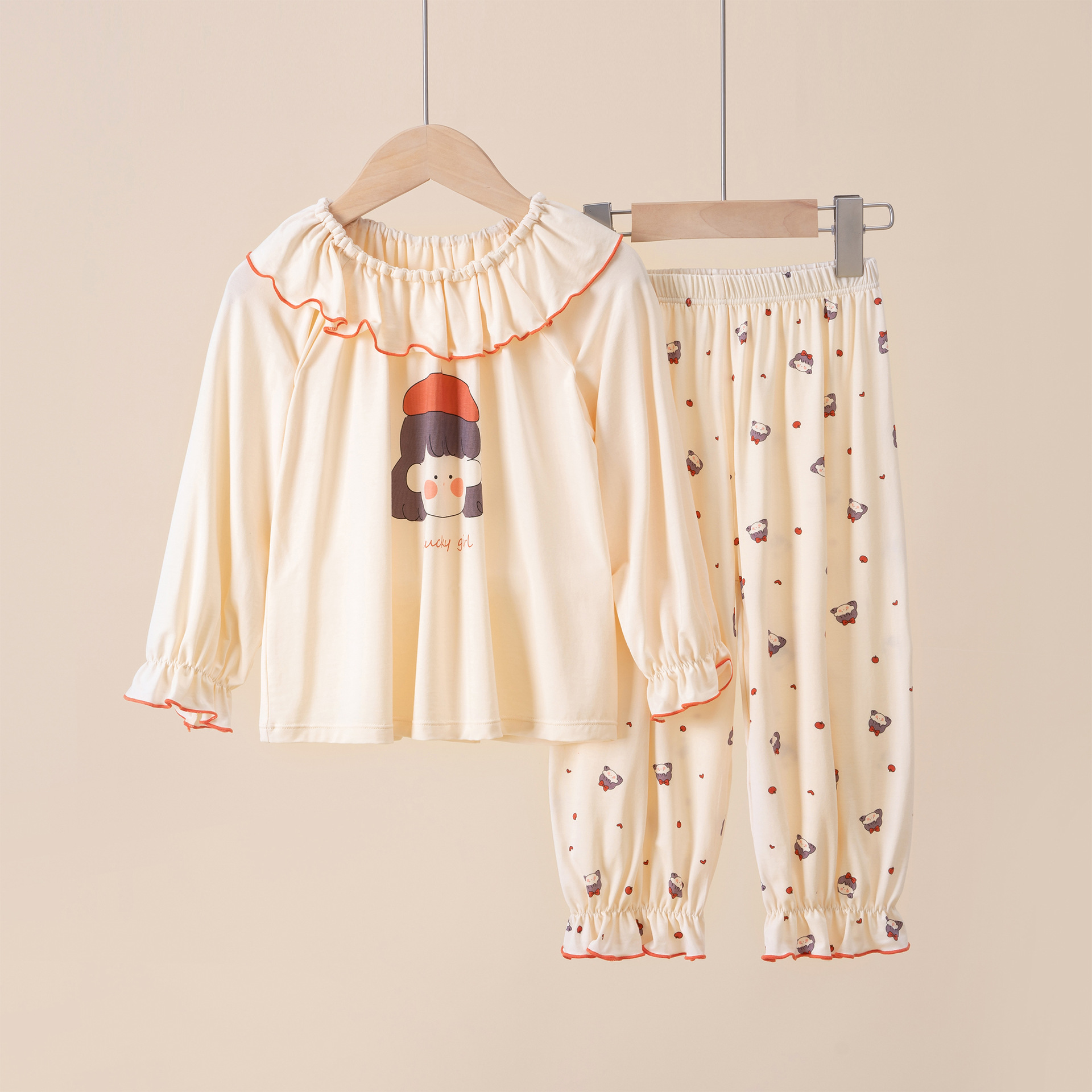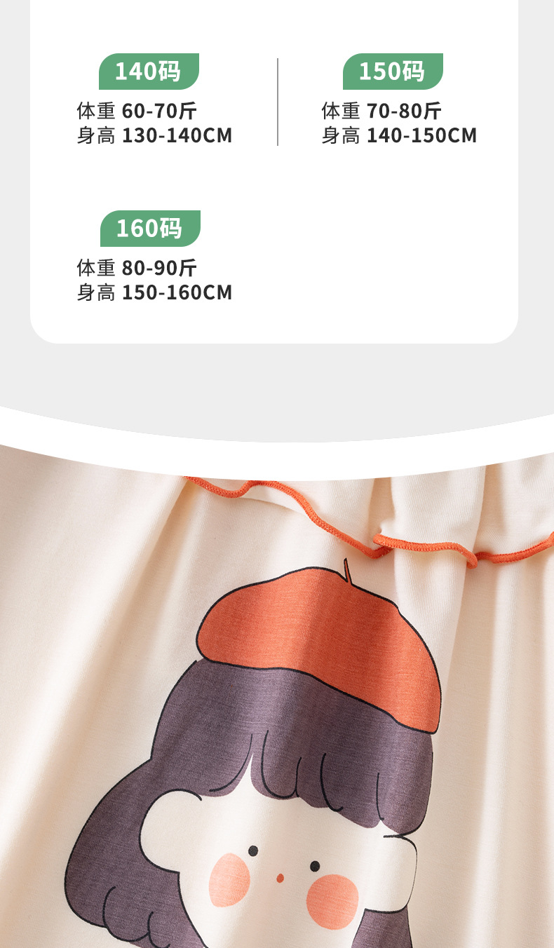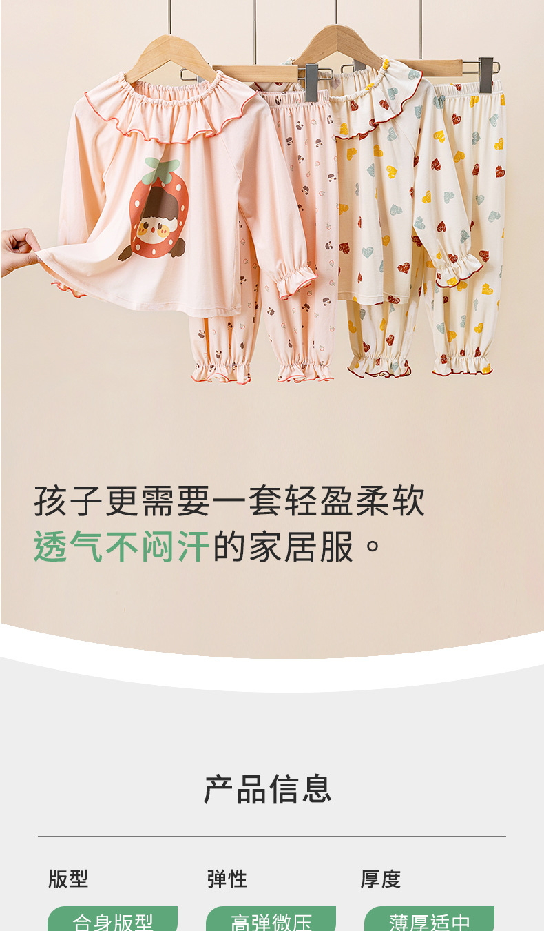 여름용 얇은 아동 잠옷, 랑징 모달 반팔 여아용 만화 캐릭터 긴팔 통기성 홈웨어 에어컨 의류스토어 가기