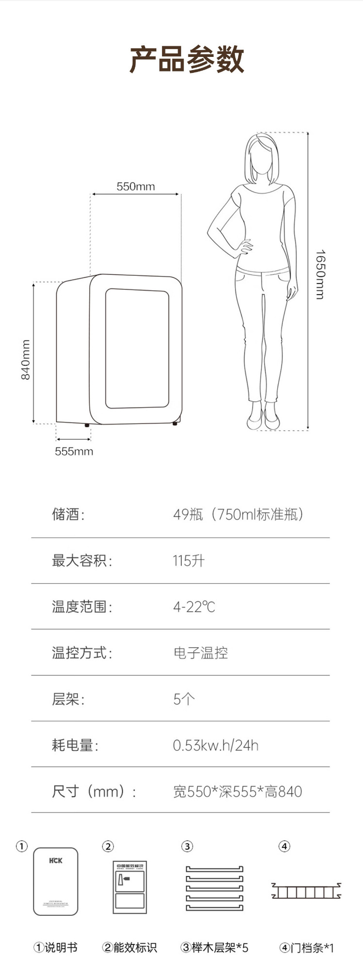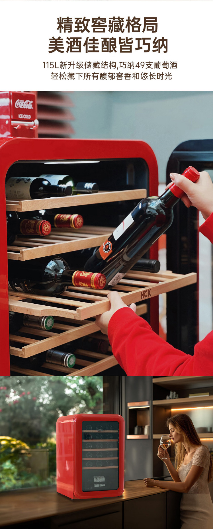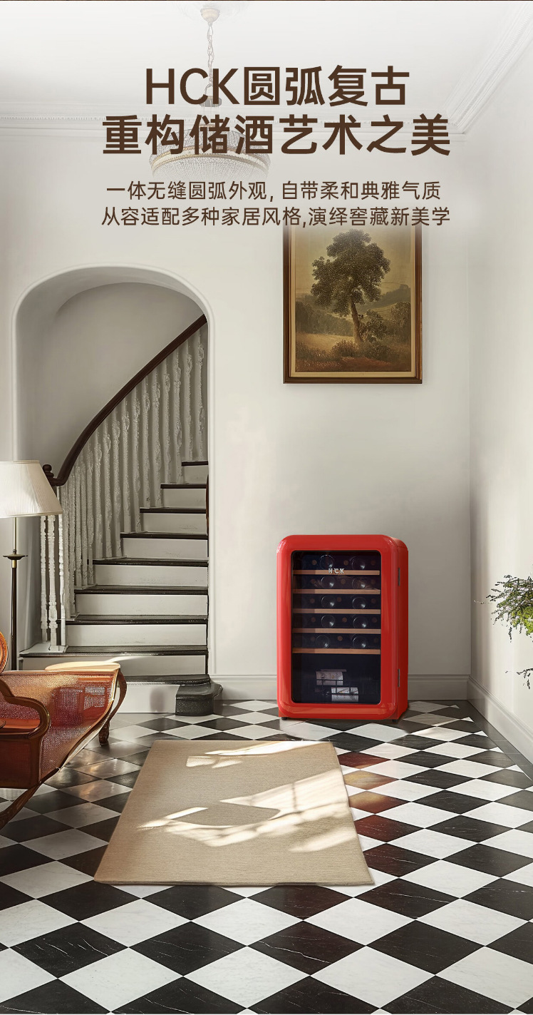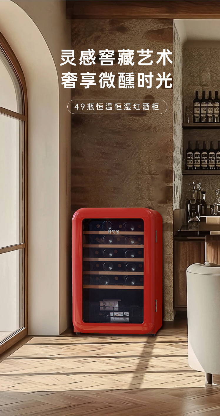 허스키 SC-130RDA 슬림 아크 레드 와인 캐비닛 115리터 항온 임베디드 단일 도어 가정용 냉장 49병스토어 가기