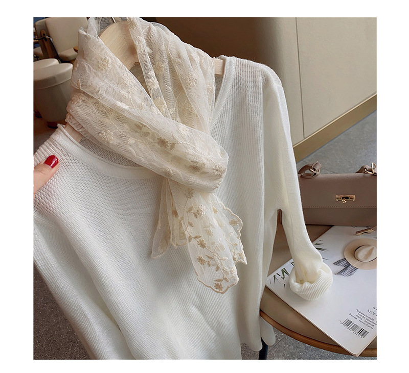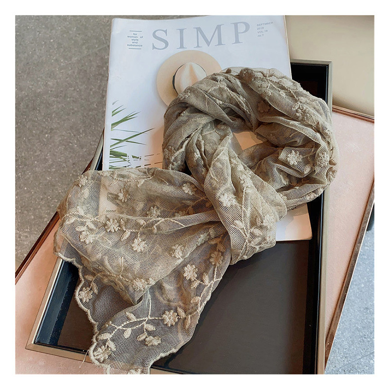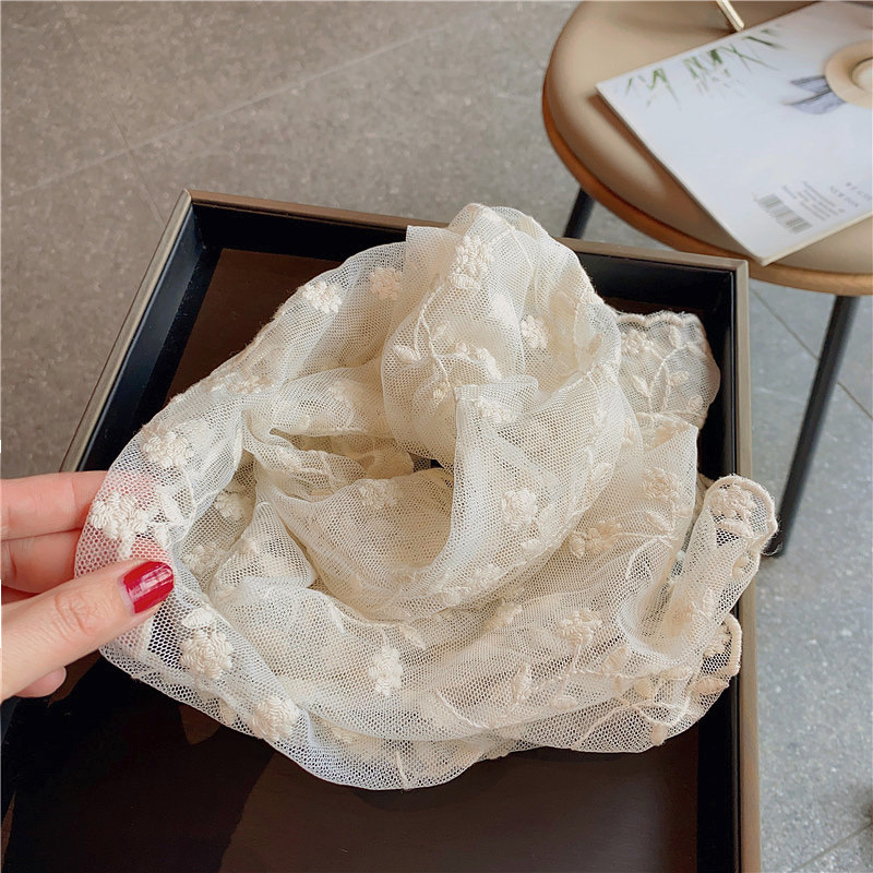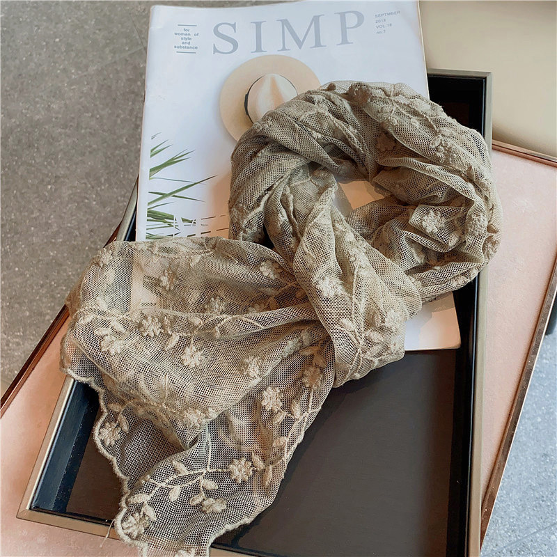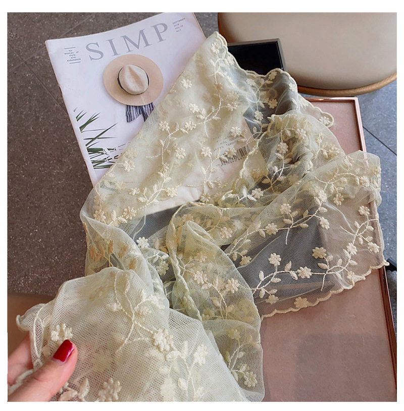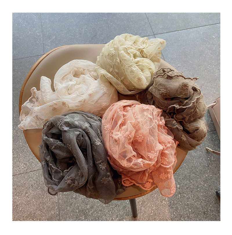 한국 단일 절묘한 자수 레이스 수 놓은 긴 스카프 작은 스카프 여성용 봄과 여름 얇은 태양 방지 닫힌 발가락 스카프