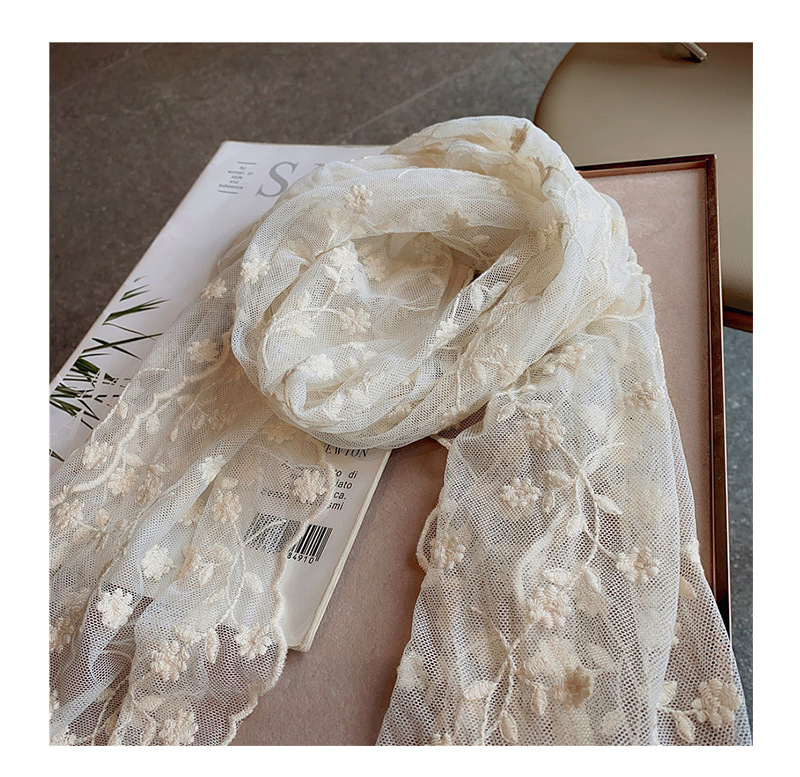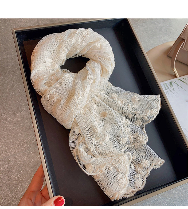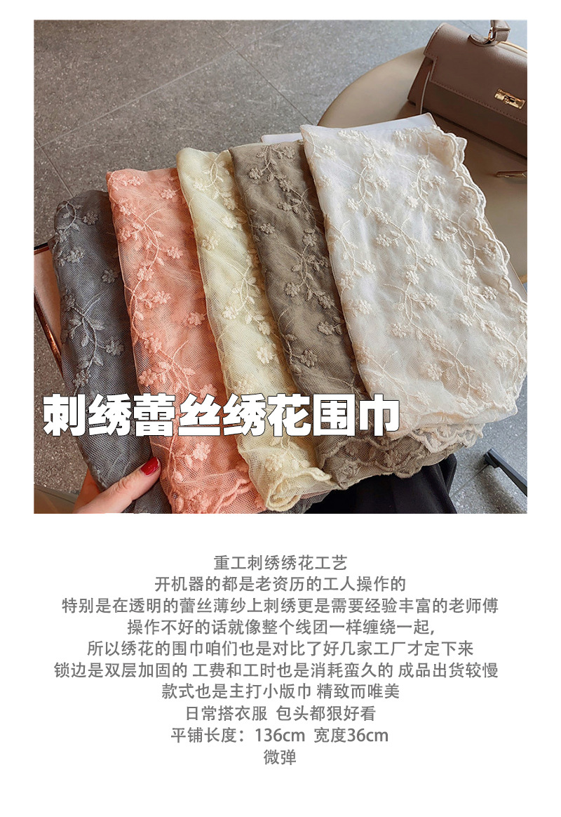 小精致重工刺绣蕾丝绣花长款丝巾小围巾女春夏季薄款遮阳包头领巾