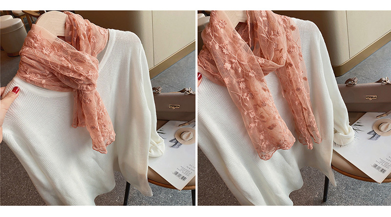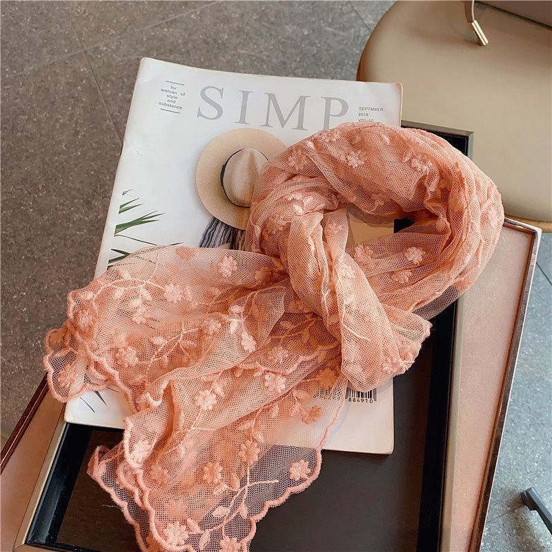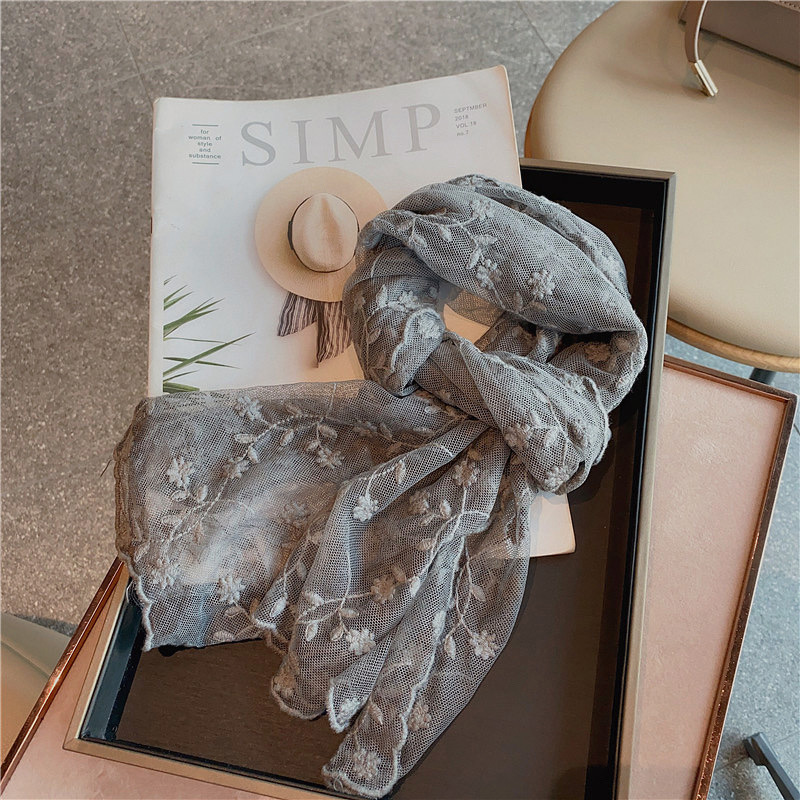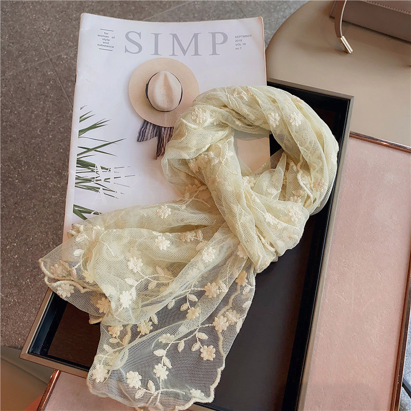 한국 단일 절묘한 자수 레이스 수 놓은 긴 스카프 작은 스카프 여성용 봄과 여름 얇은 태양 방지 닫힌 발가락 스카프스토어 가기