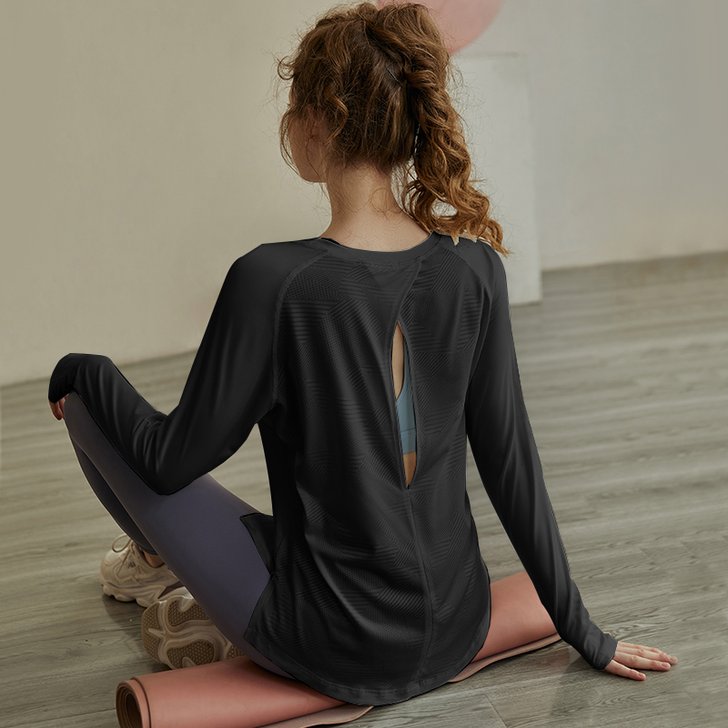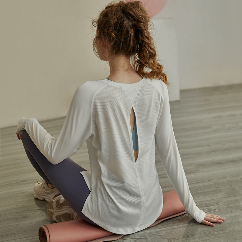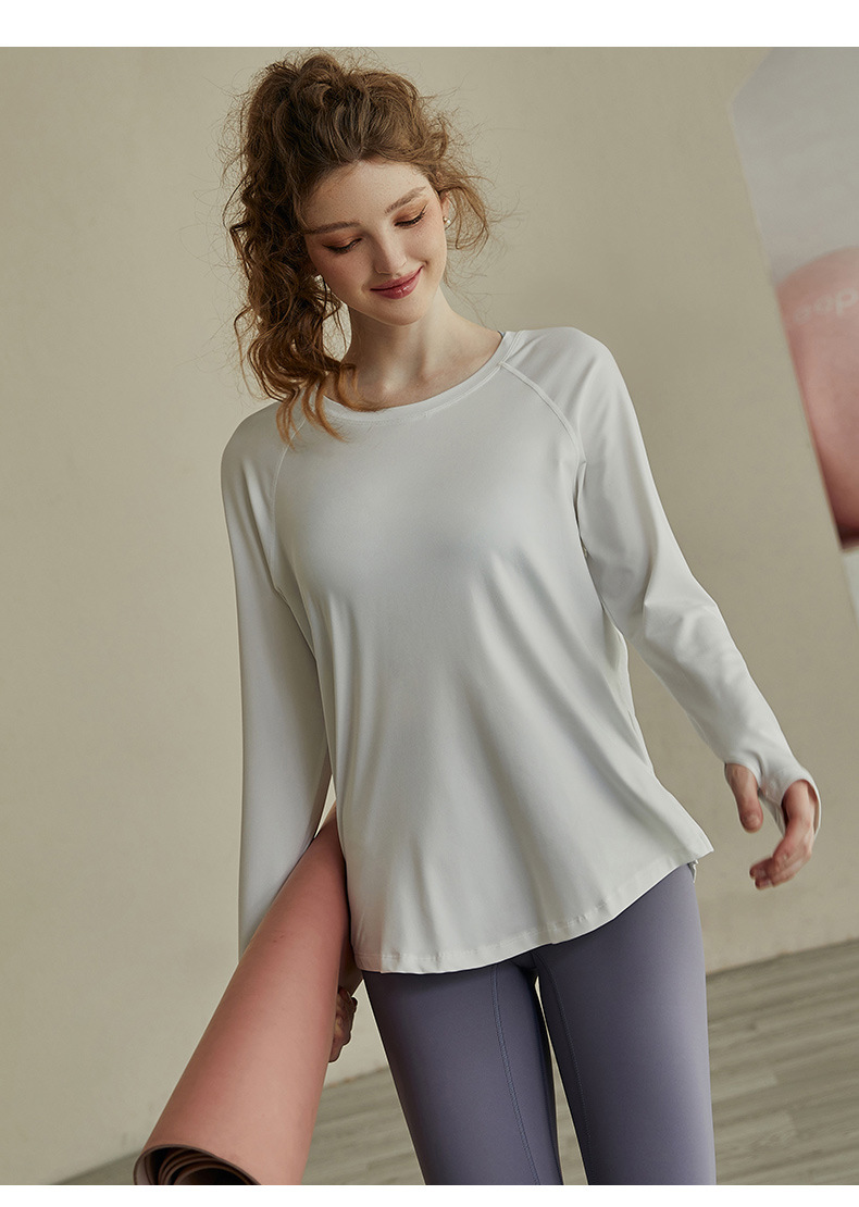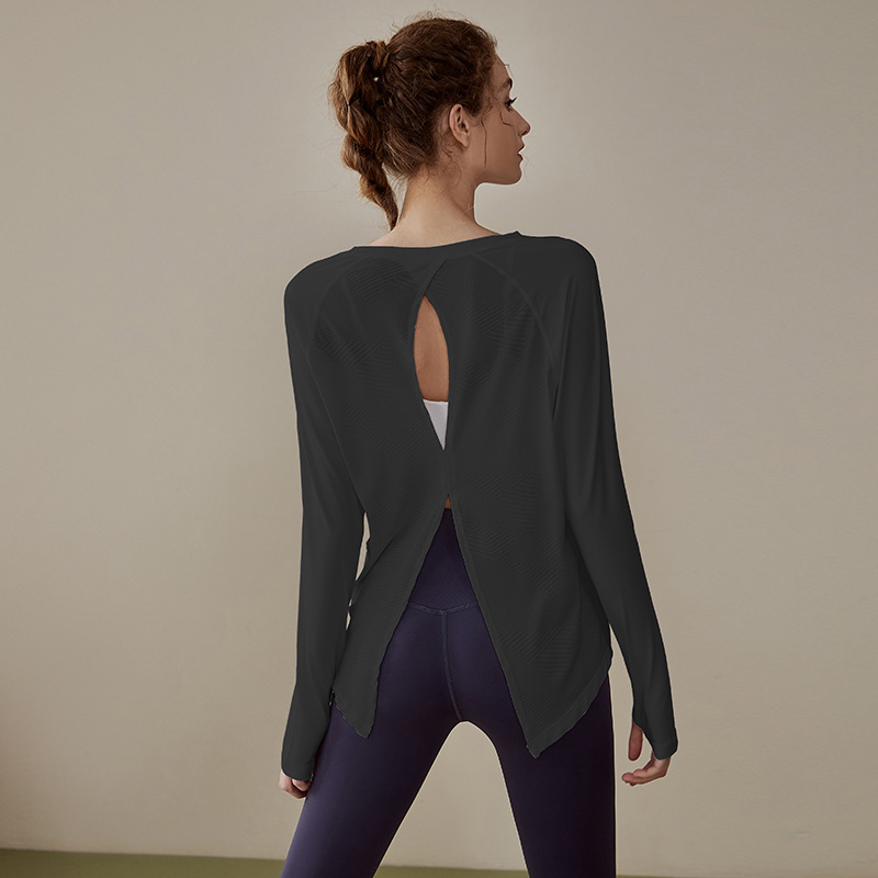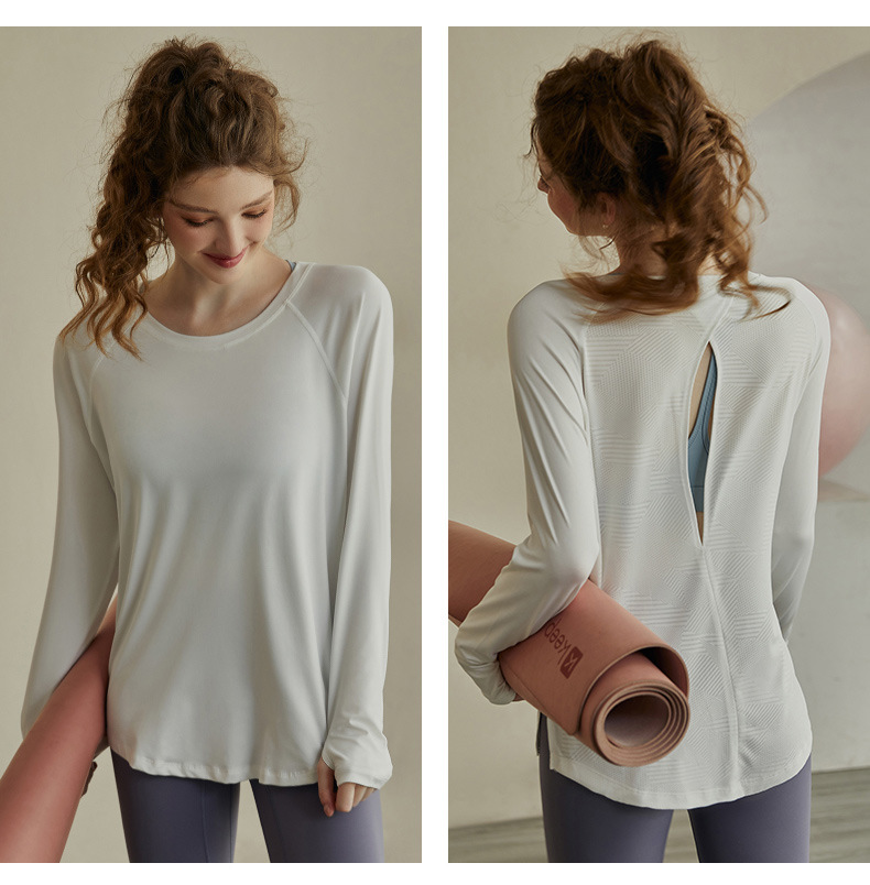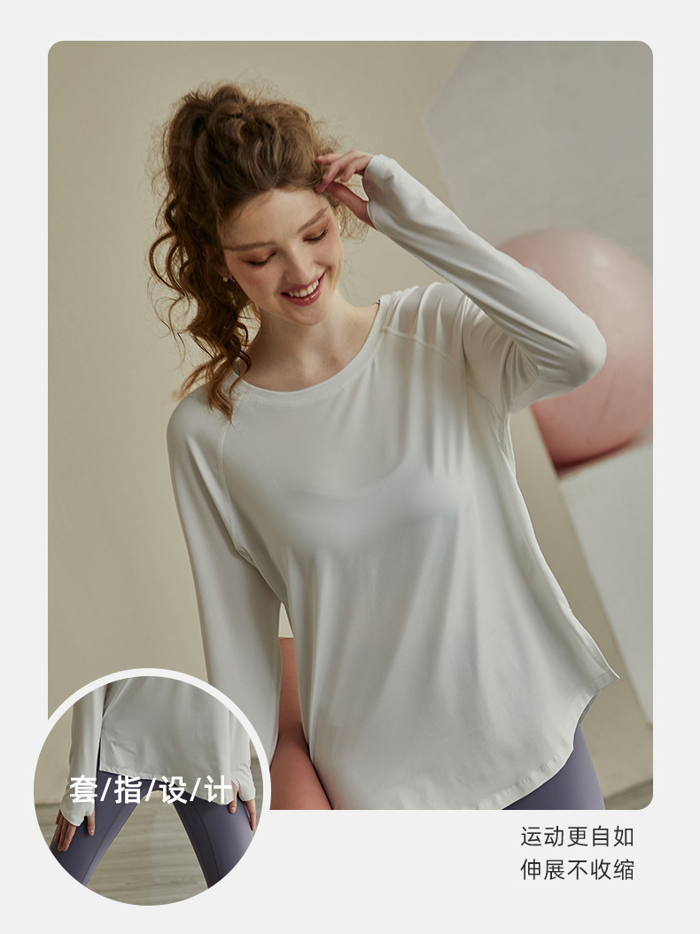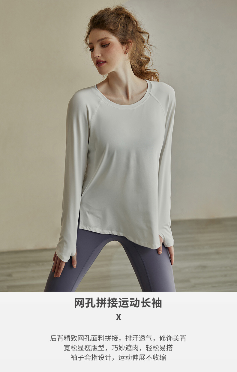 인터넷 연예인 중공 요가 의류 여성 스포츠 긴팔 풀오버 티셔츠 느슨한 프로 러닝 피트니스 탑 넥 블라우스
