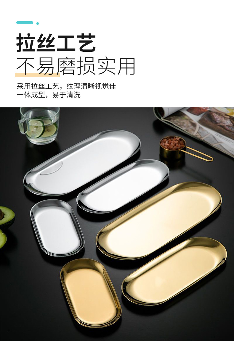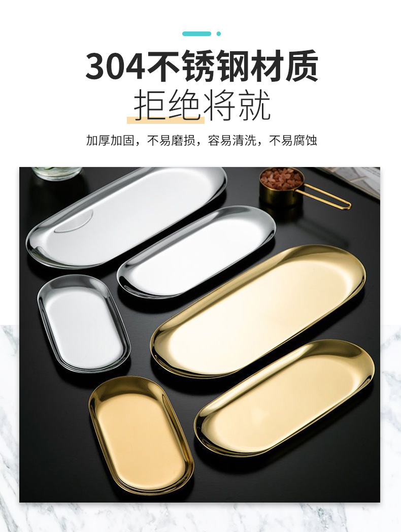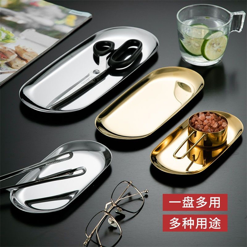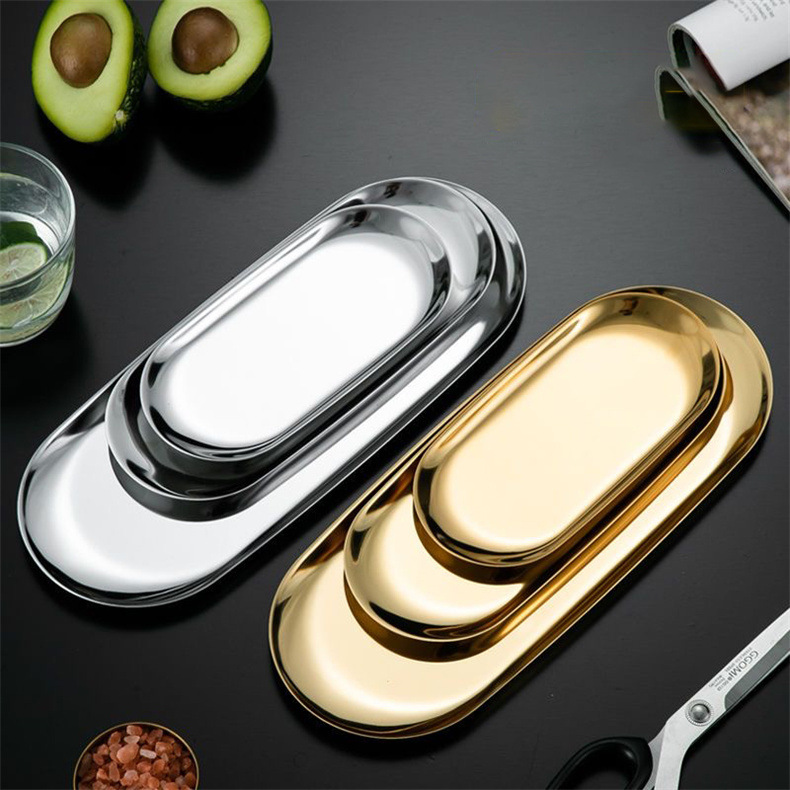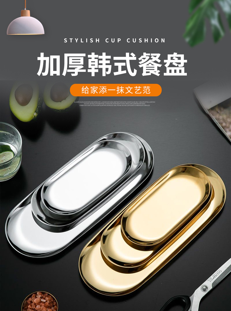북유럽 스타일 금속 트레이 스테인레스 스틸 타원형 접시 한국 요리 황금 접시 디저트 접시 바베큐 조미료 트레이