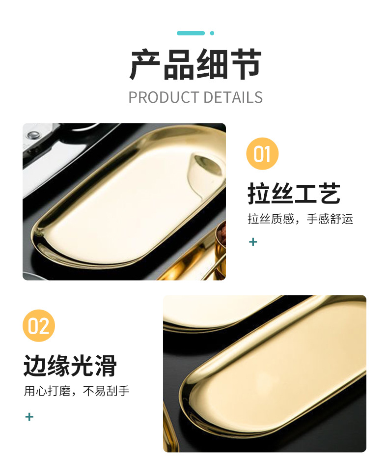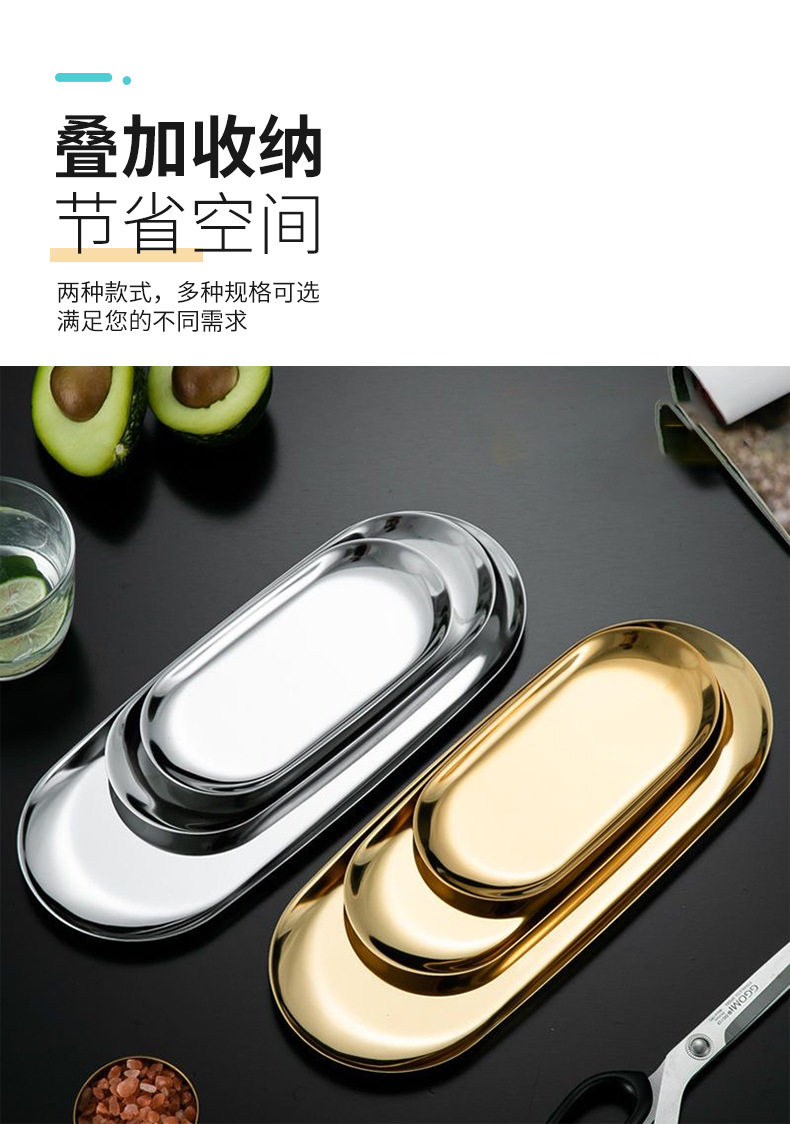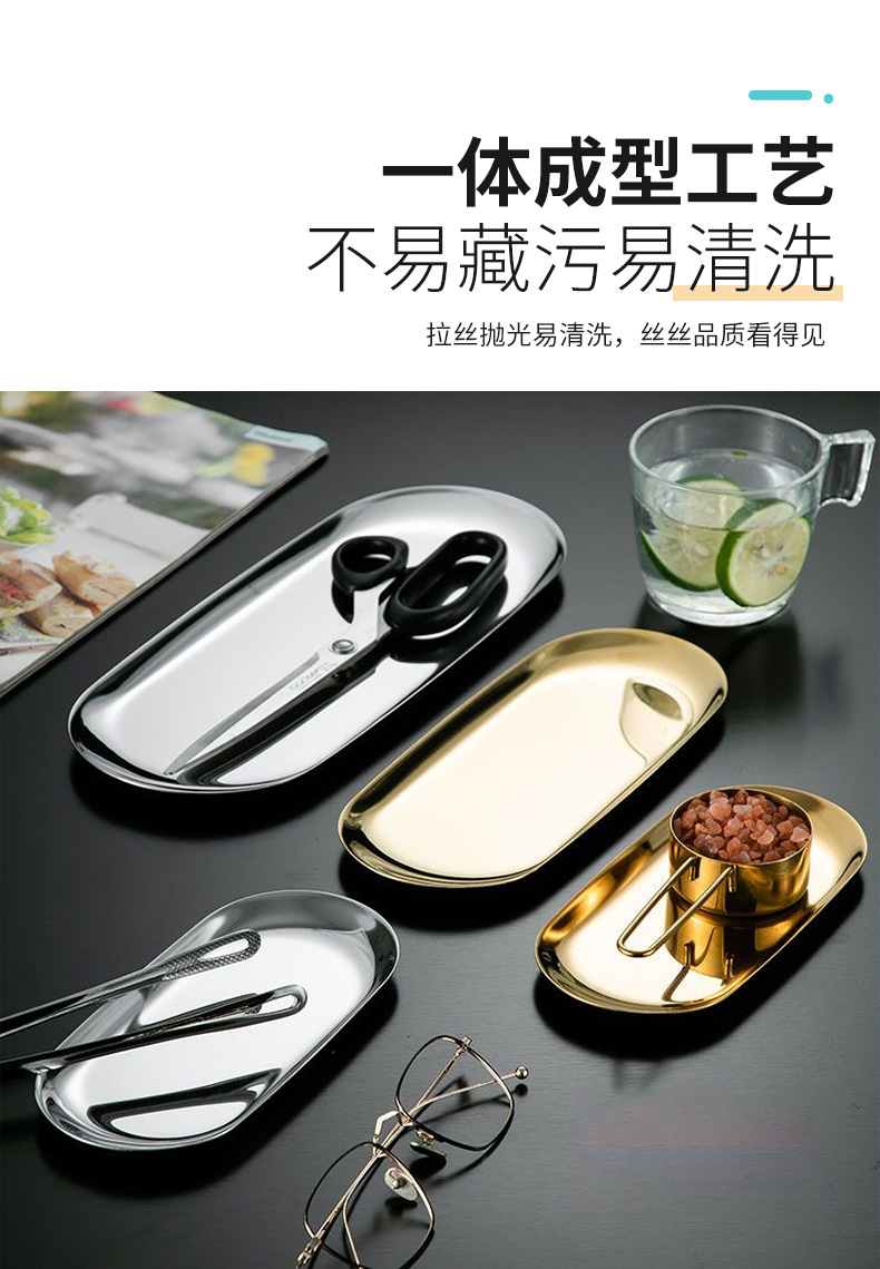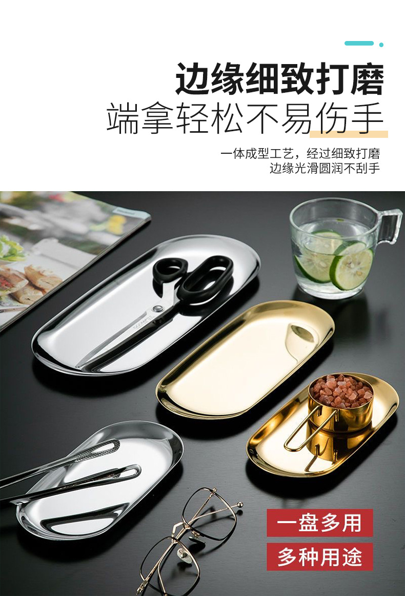 북유럽 스타일 금속 트레이 스테인레스 스틸 타원형 접시 한국 요리 황금 접시 디저트 접시 바베큐 조미료 트레이