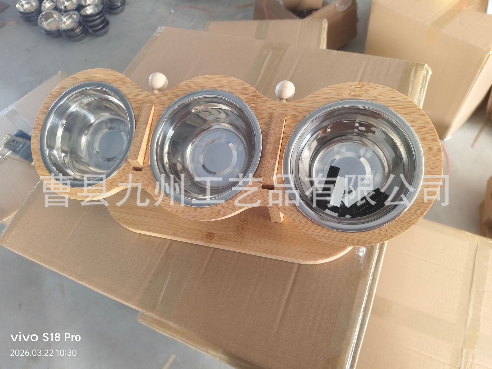 대나무 나무 애완 동물 강아지 음식 더블 그릇 브래킷 먹이 랙 고양이 그릇 선반 피더 애완 동물 그릇 스테인레스 스틸 식사 랙스토어 가기