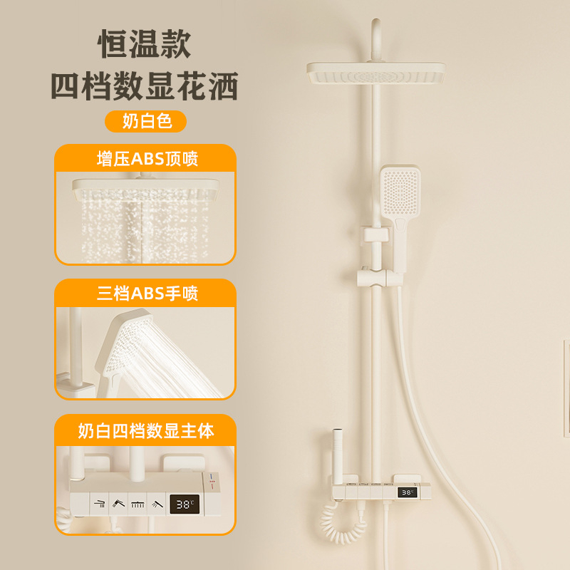 크림 스타일 샤워 헤드 세트 욕실 목욕 피아노 버튼 욕조 일정한 온도 비 가정용 유백색 노즐스토어 가기