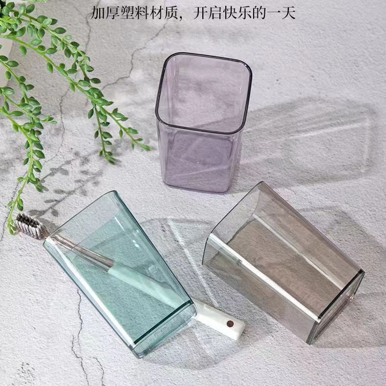가정용 사각형 플라스틱 투명 세척 컵 가벼운 고급 스타일 학생 커플 칫솔 컵 어린이 간단한 구강 세척 컵 도매스토어 가기