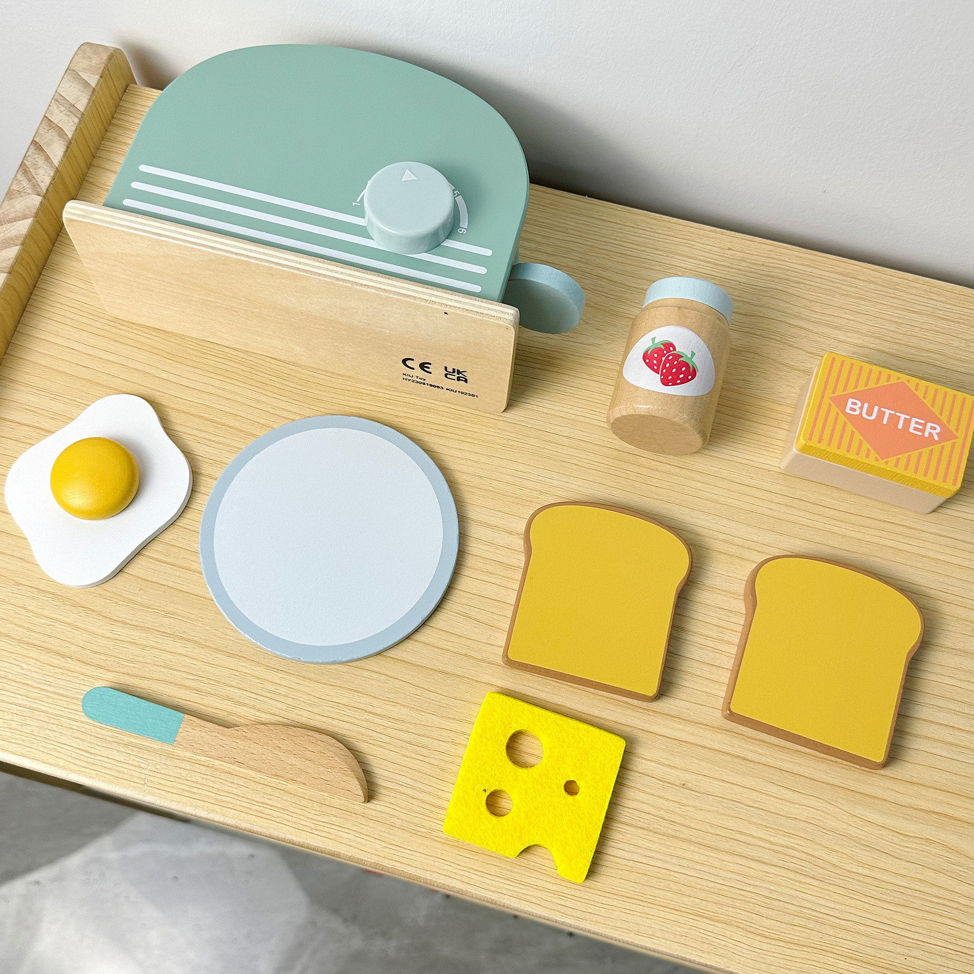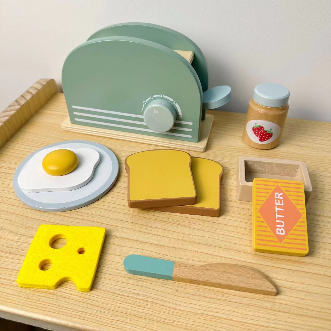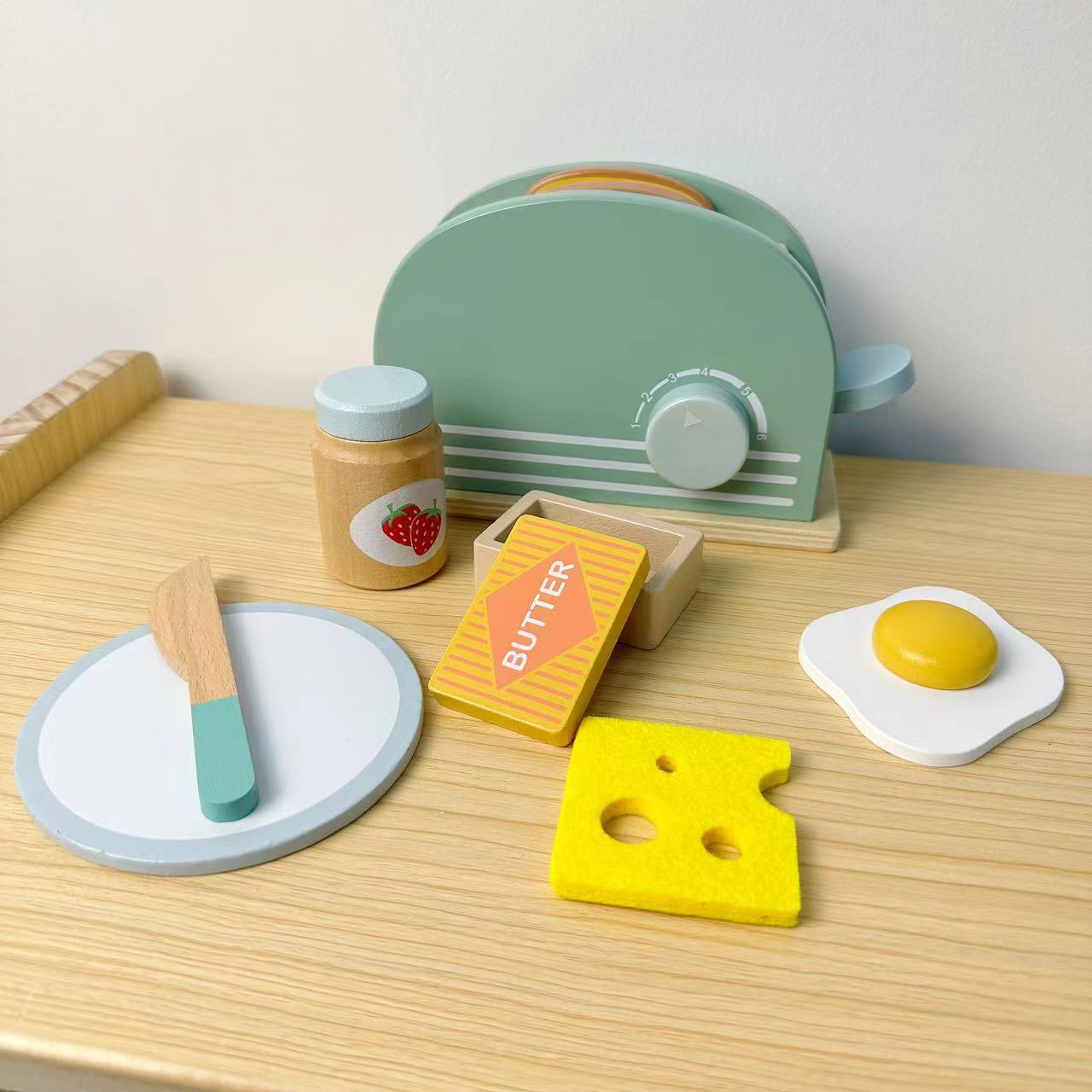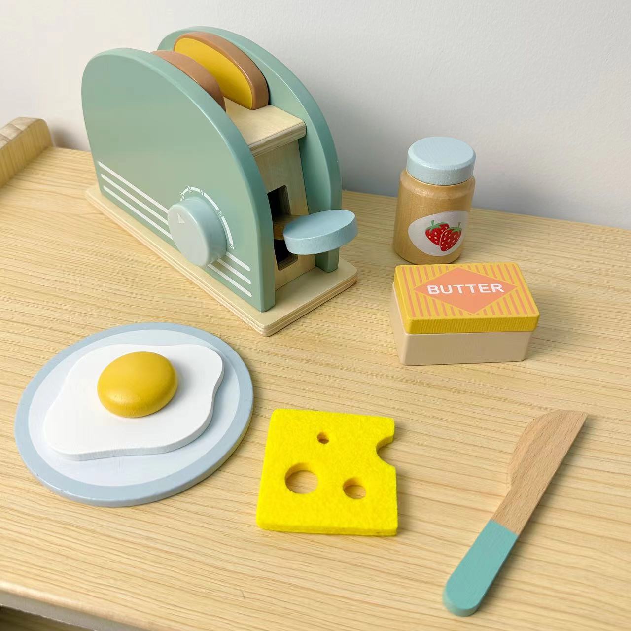 나무 요리 장난감 빵 메이커 세트 토스트 해피 주방 롤 플레이 하우스