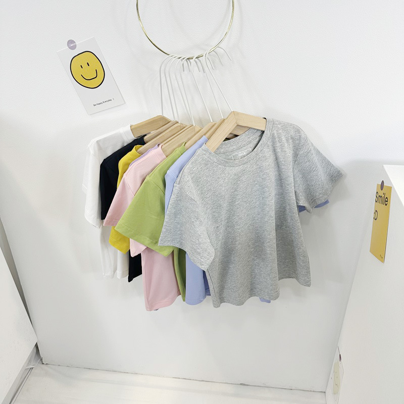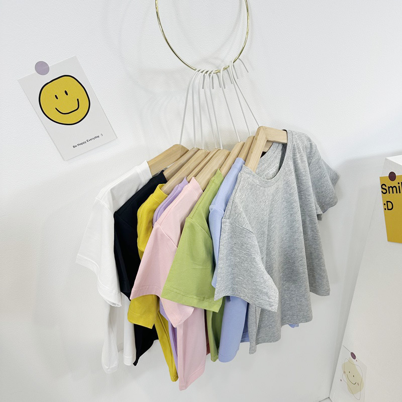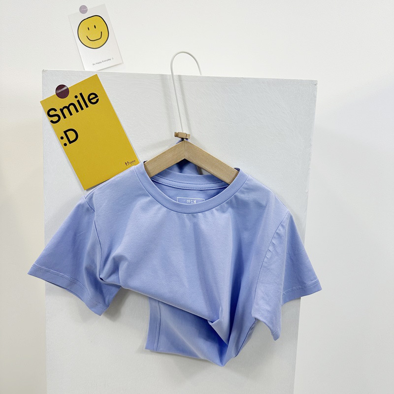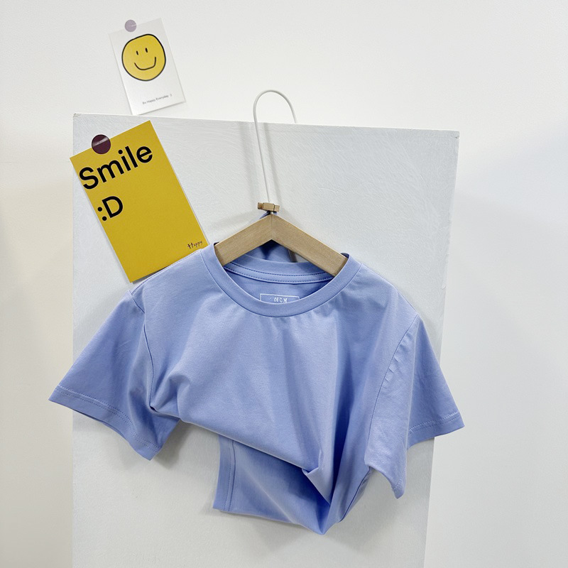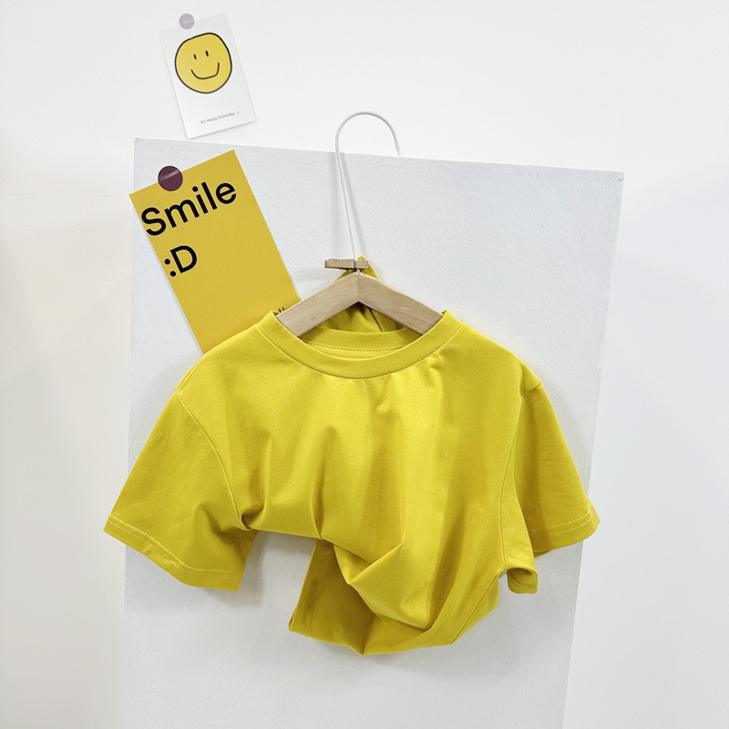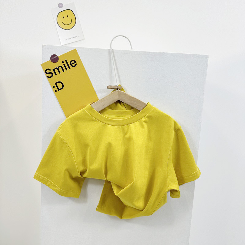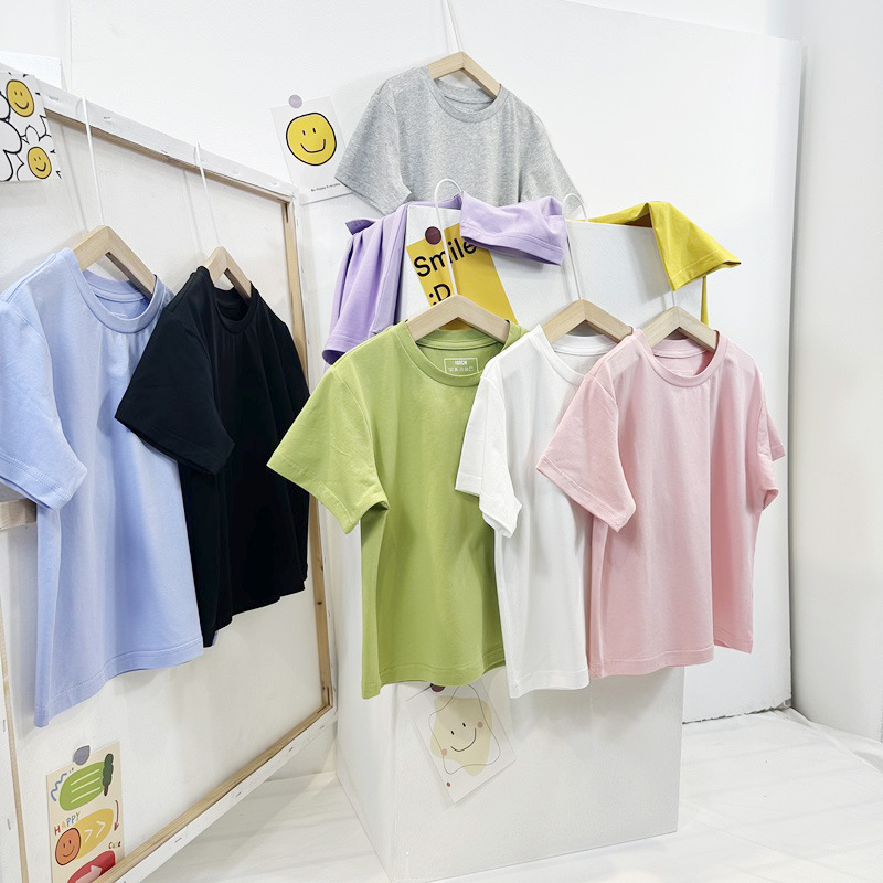 2025 여름 신상 루즈핏 남아 기본 단색 상의 여아 유아용 만능 반팔 면 반소매 티셔츠스토어 가기