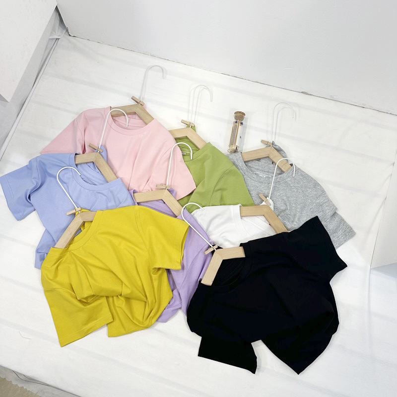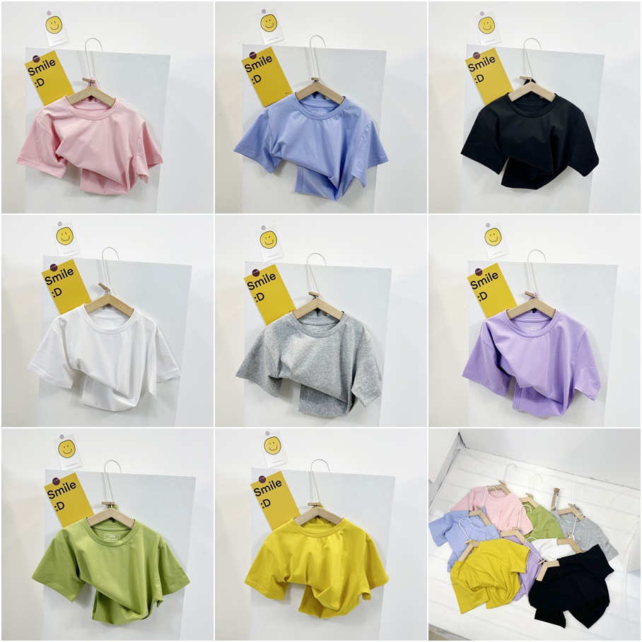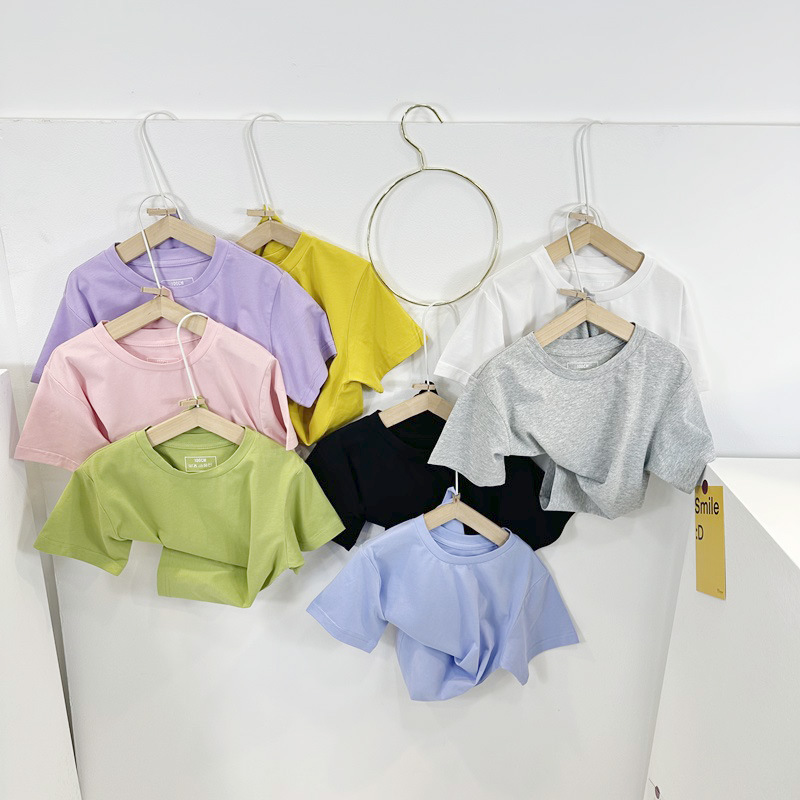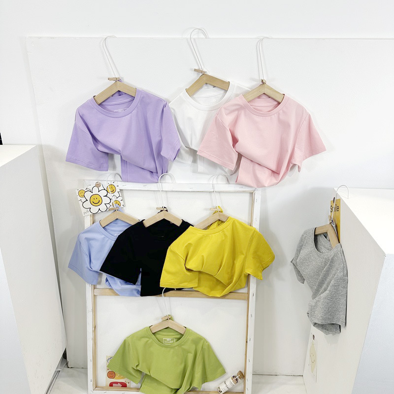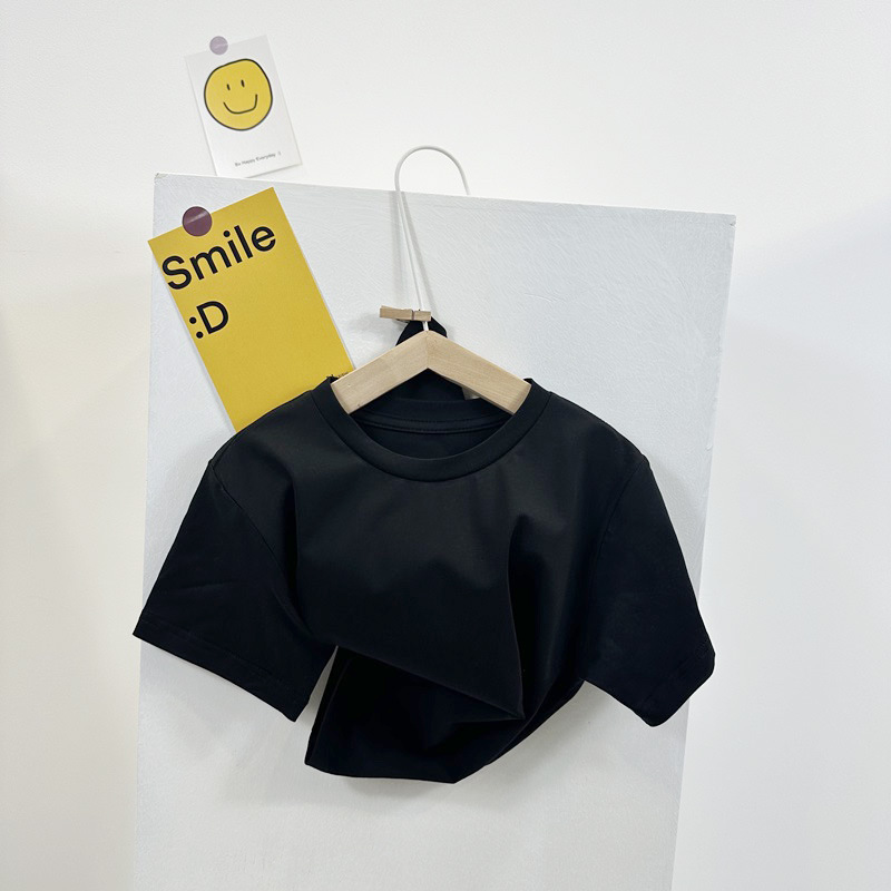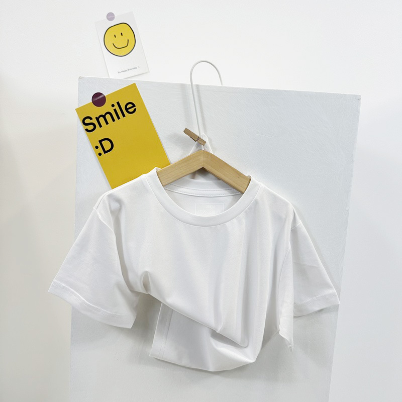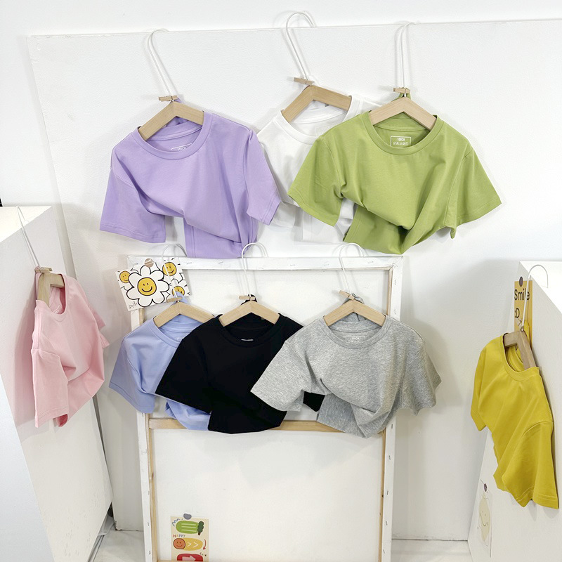 2025 여름 신상 루즈핏 남아 기본 단색 상의 여아 유아용 만능 반팔 면 반소매 티셔츠스토어 가기