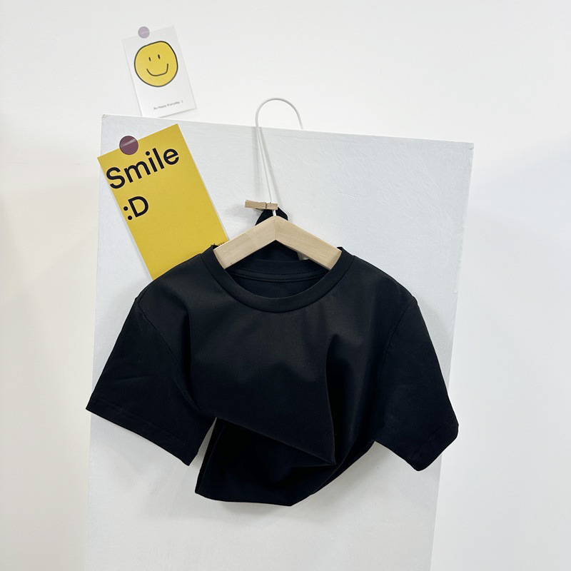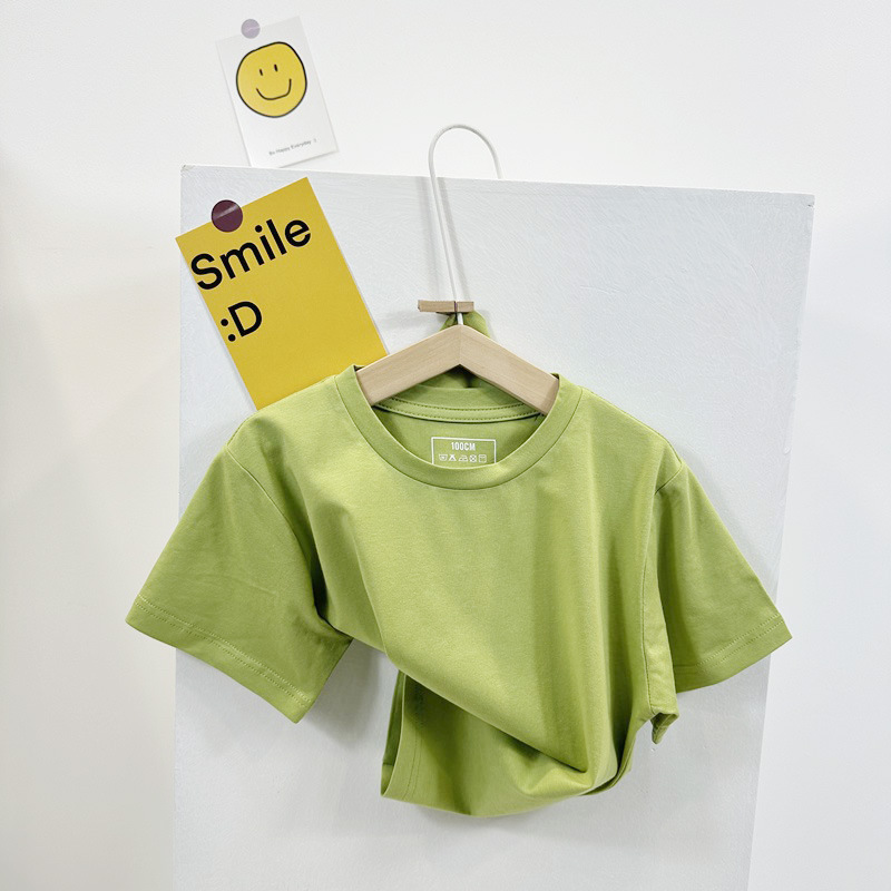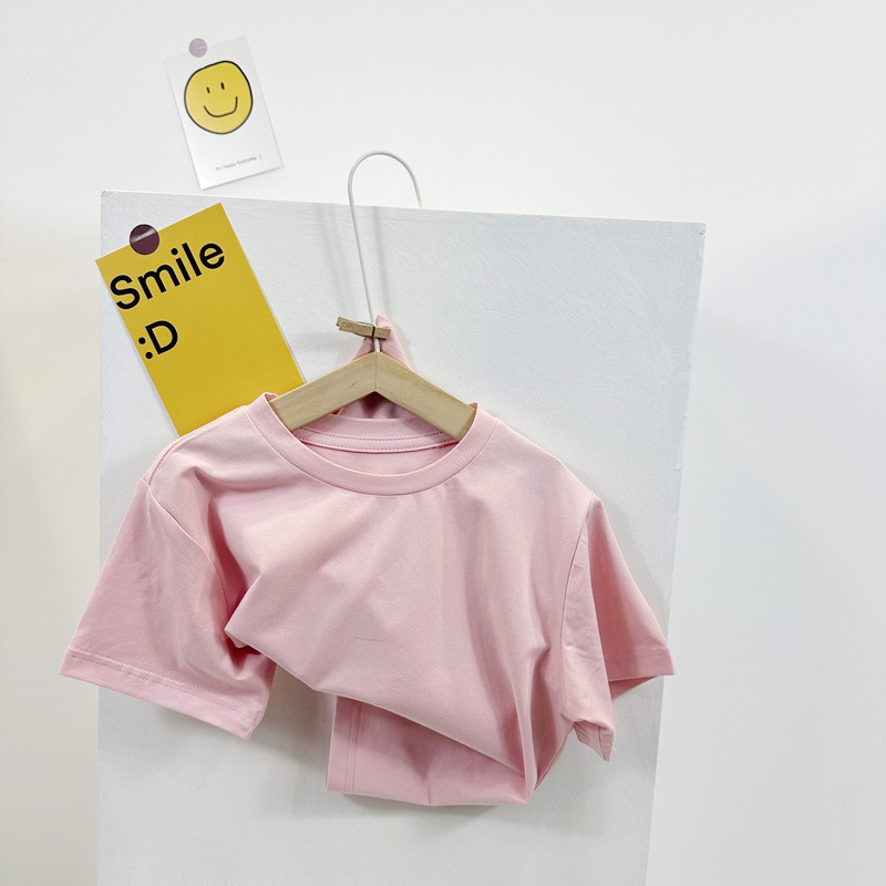 2025 여름 신상 루즈핏 남아 기본 단색 상의 여아 유아용 만능 반팔 면 반소매 티셔츠