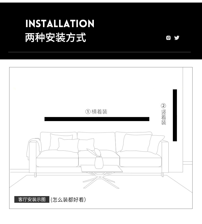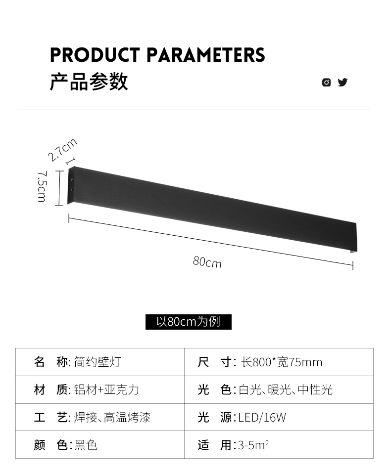 가정용 거실 침실용 긴형 양면 발광 벽등, 빌라 실내 마당 야외 방수 LED 벽세척등스토어 가기