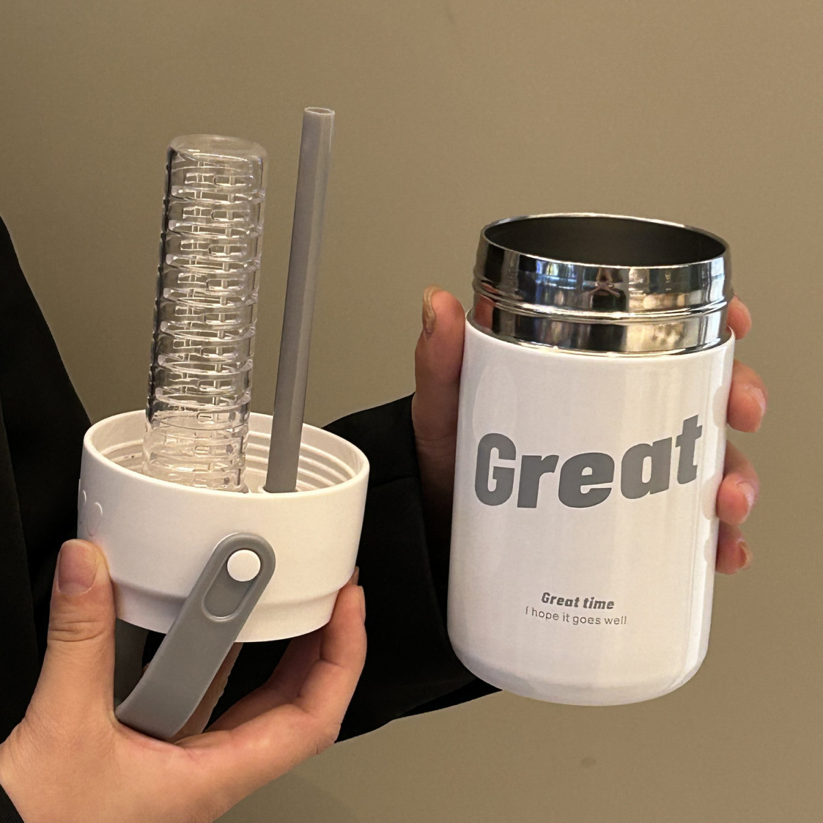 차와 물 분리형 향차컵 성인용 휴대용 심플 물컵 316 스테인리스 빨대 보온컵 대용량스토어 가기
