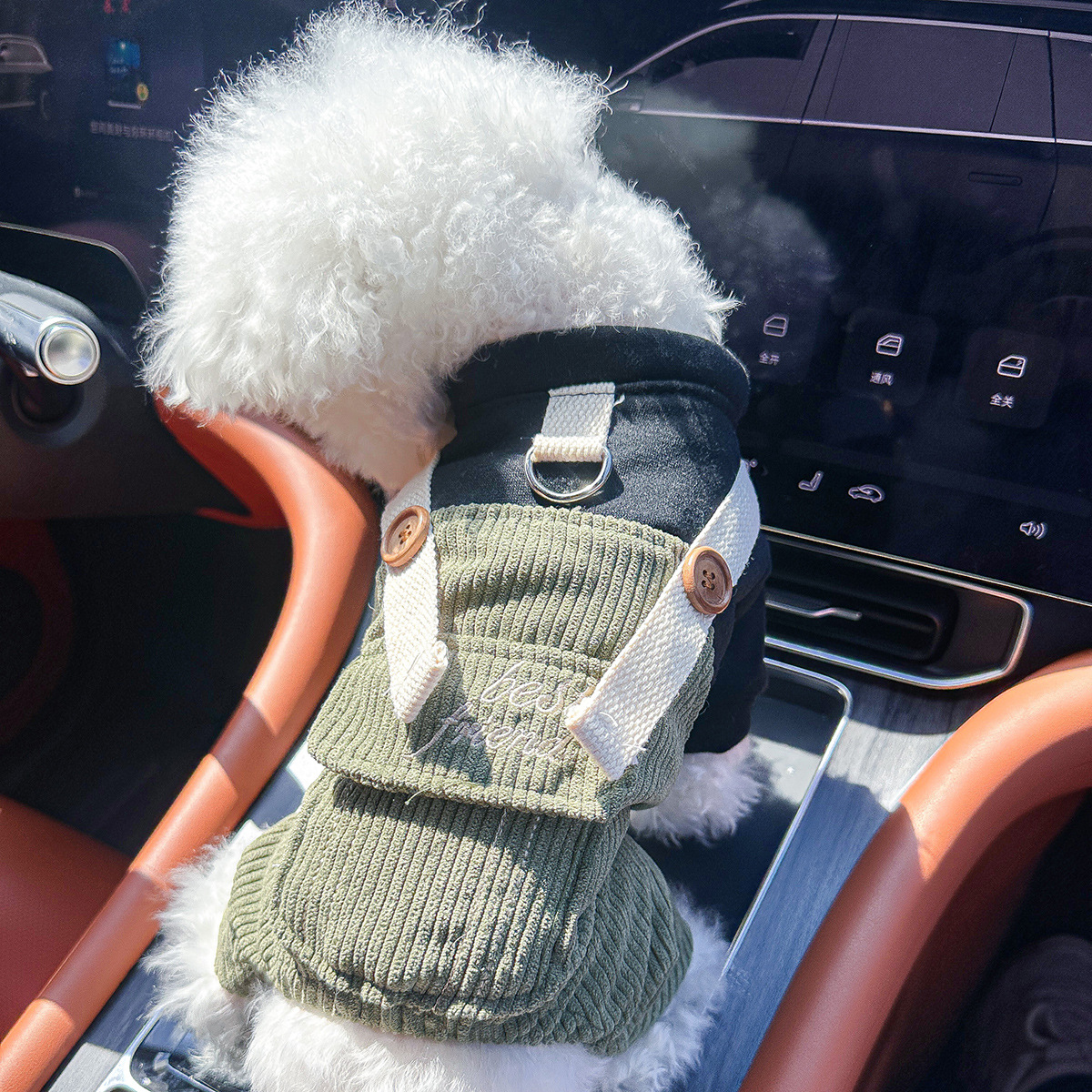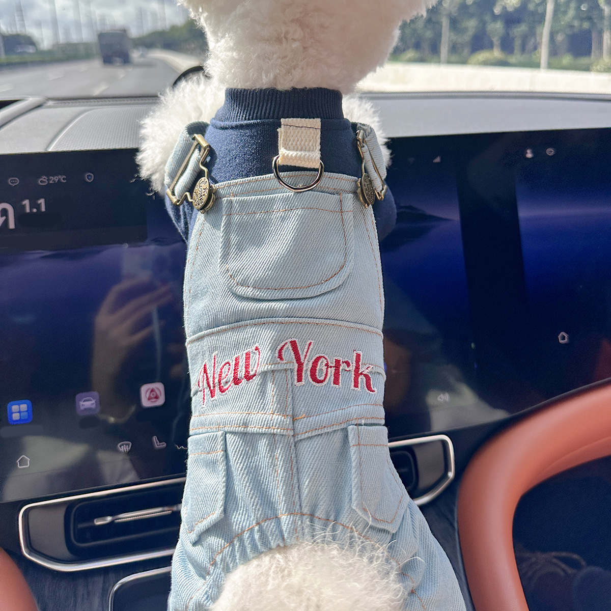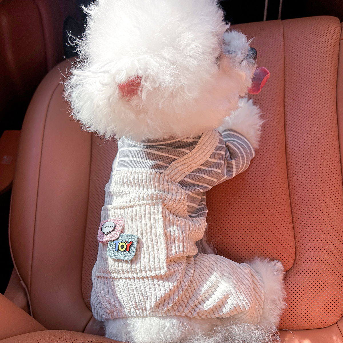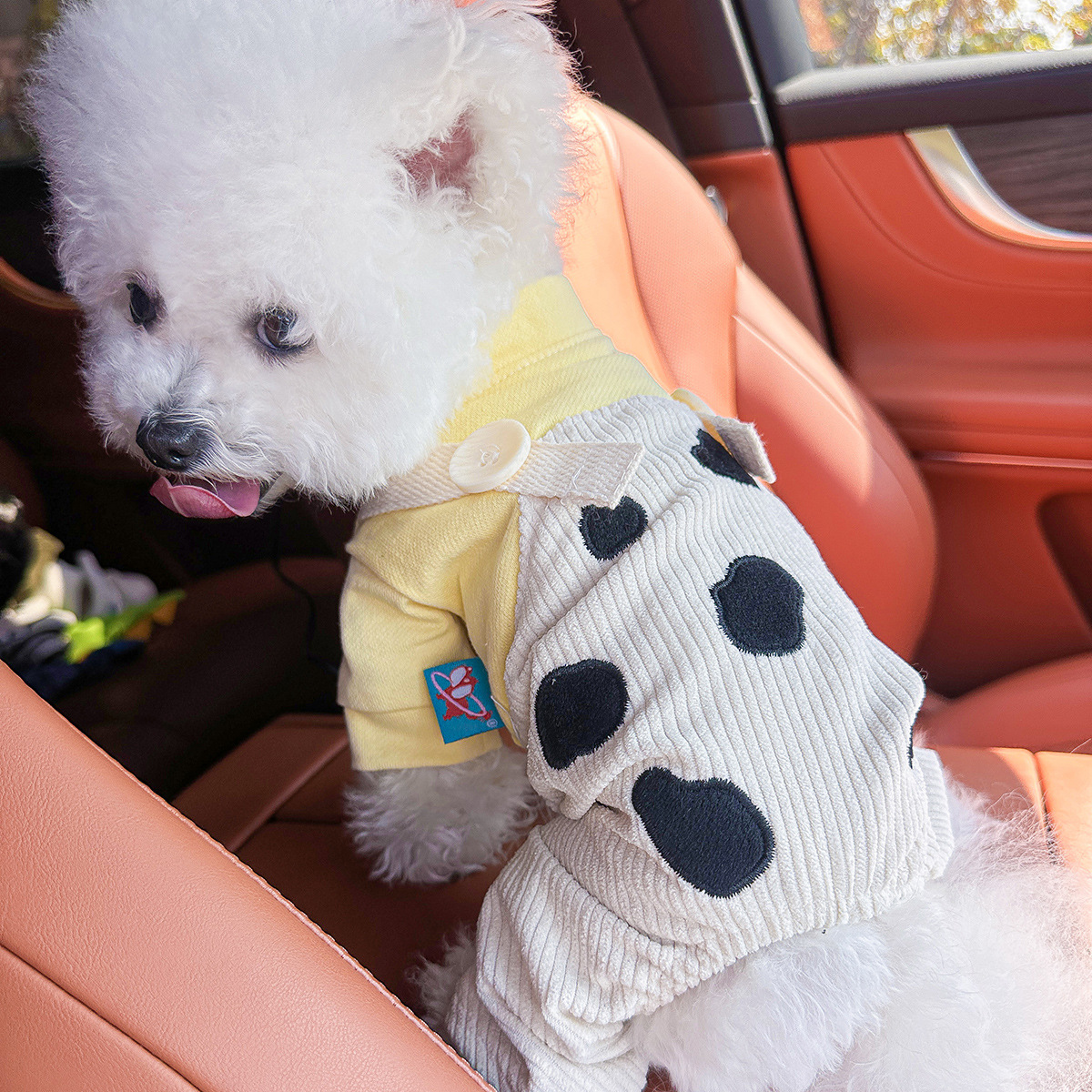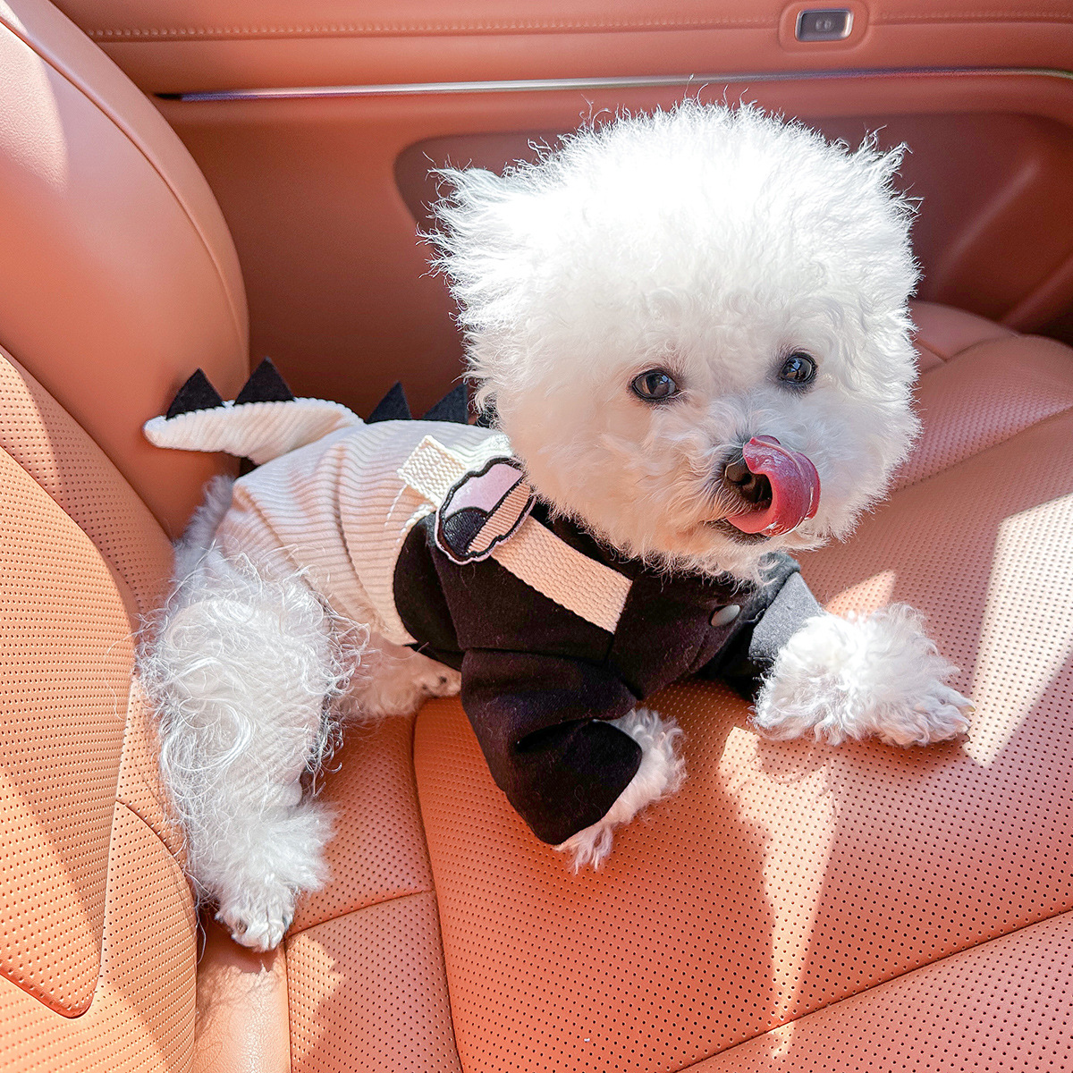 즉시 출고 가능한 애완동물 의류, 강아지 옷, 귀여운 공장제작 봄 가을 신상 공룡 네발옷, 멜빵바지 컬렉션