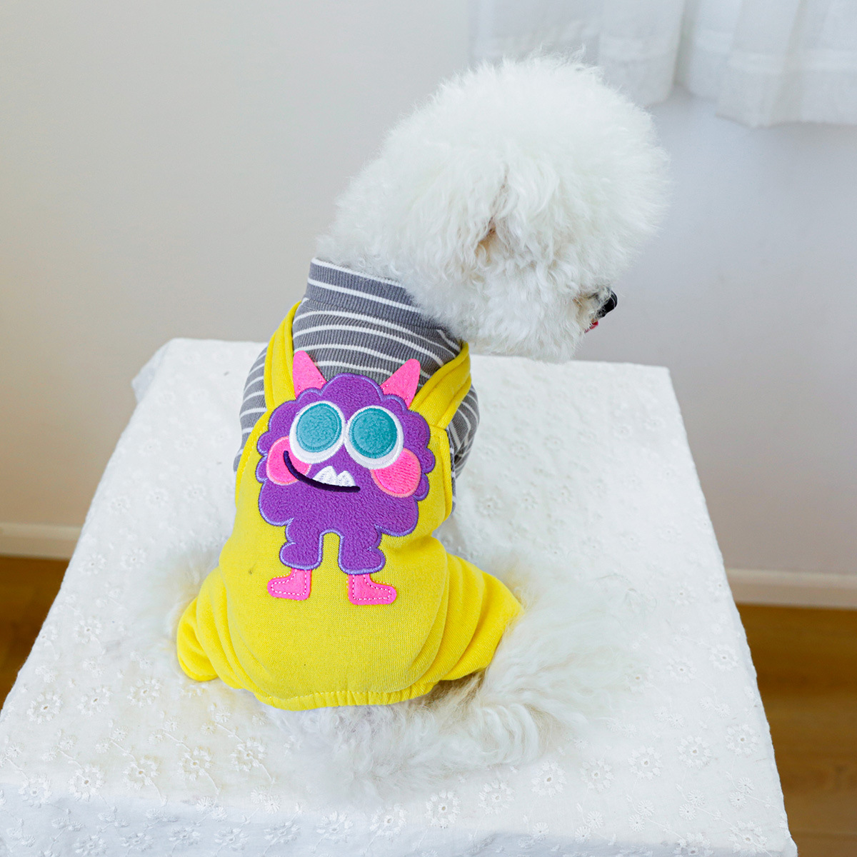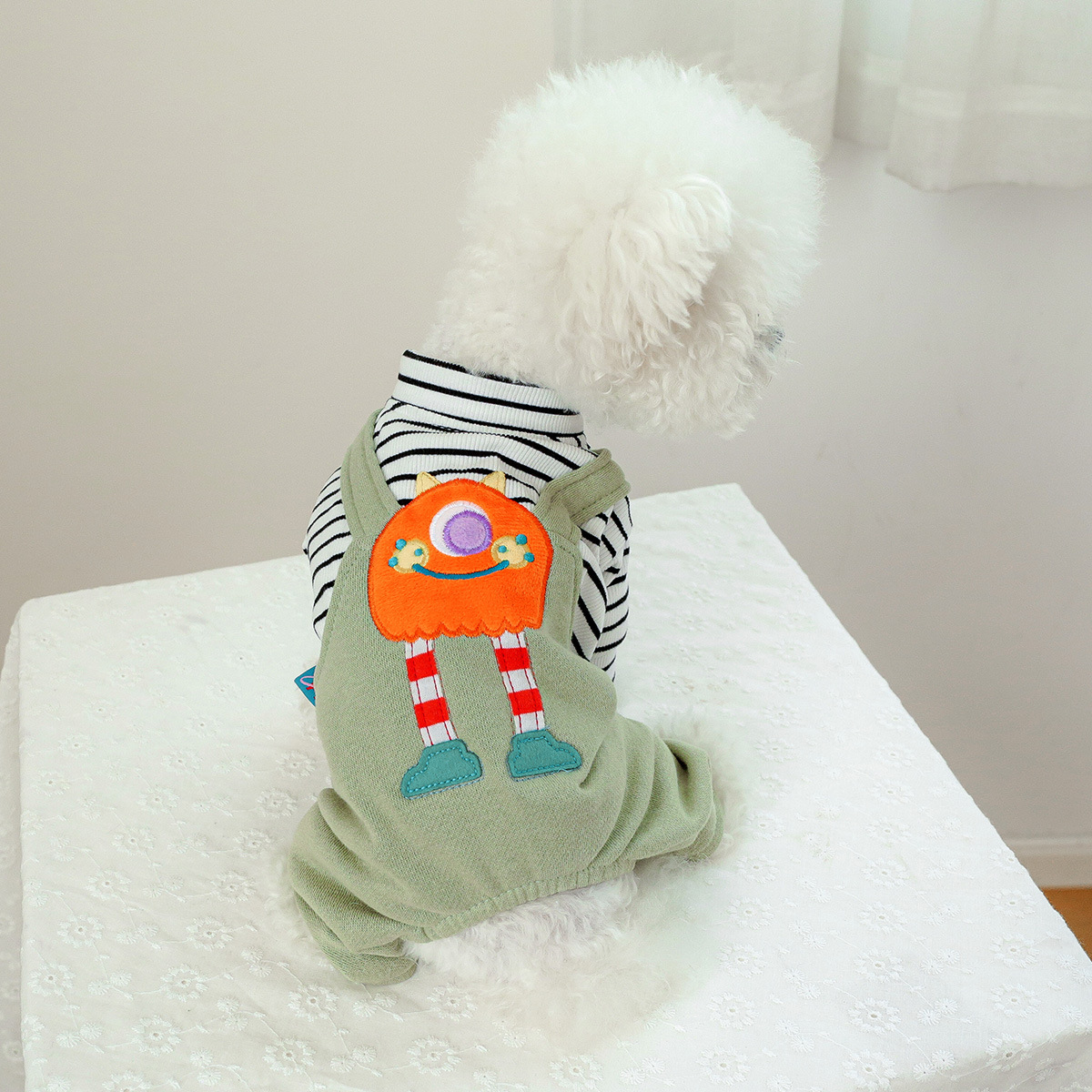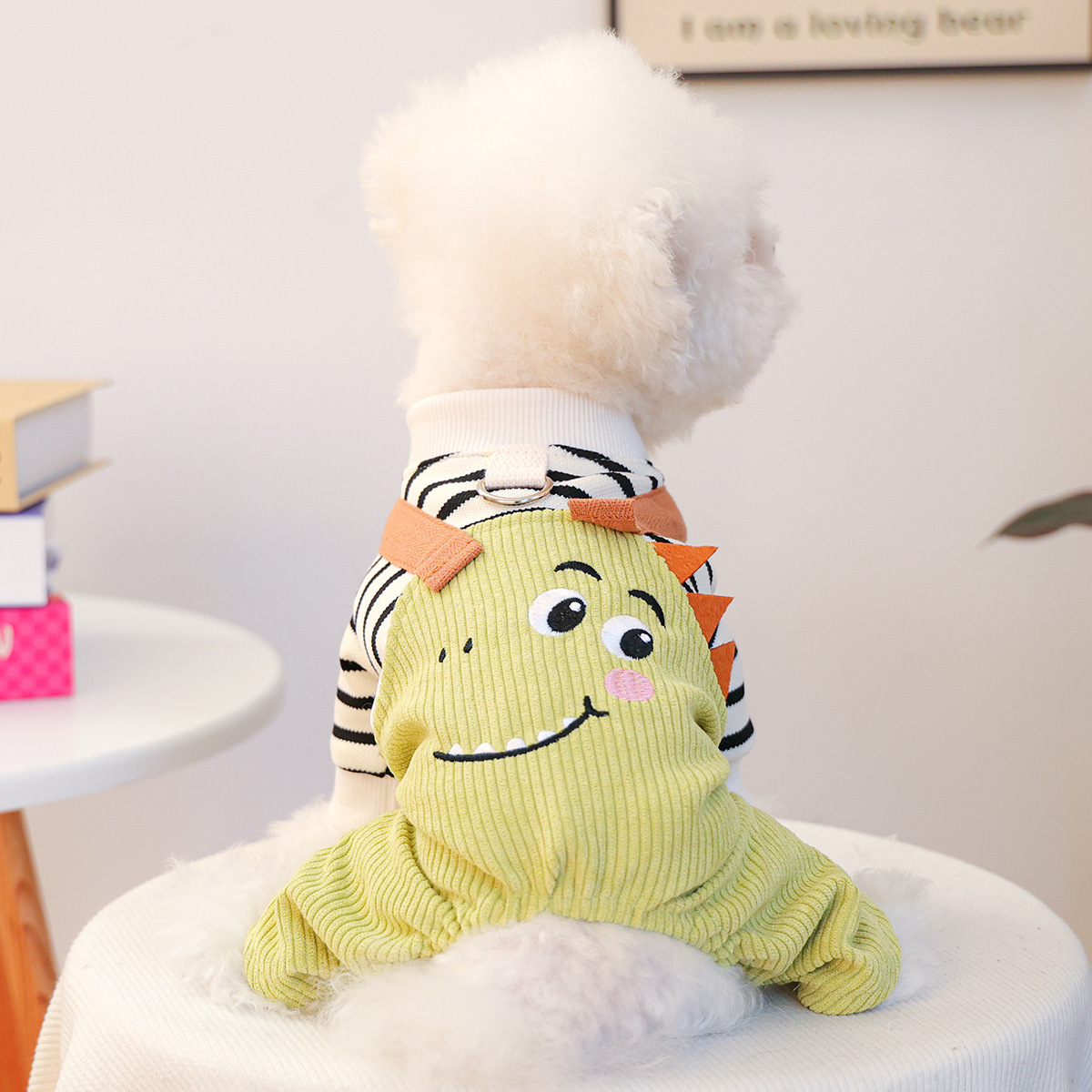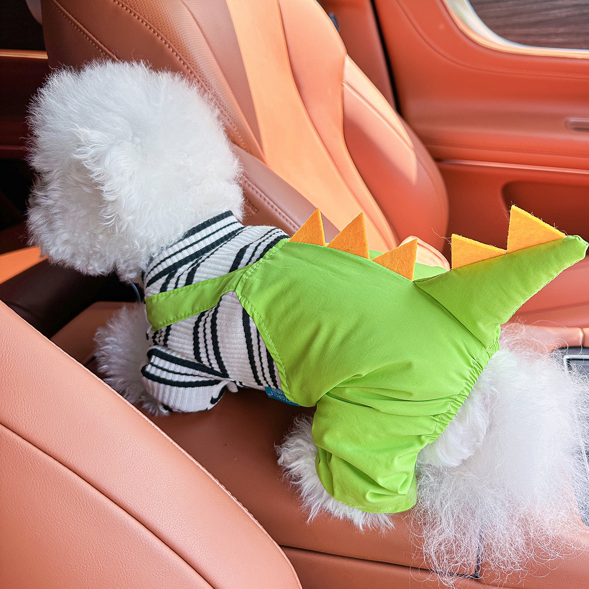 즉시 출고 가능한 애완동물 의류, 강아지 옷, 귀여운 공장제작 봄 가을 신상 공룡 네발옷, 멜빵바지 컬렉션스토어 가기