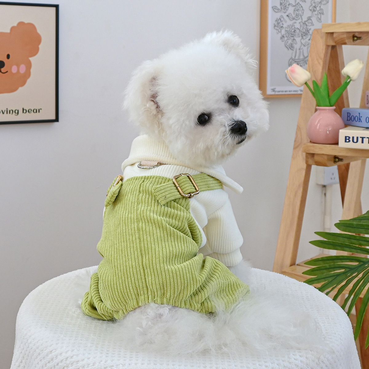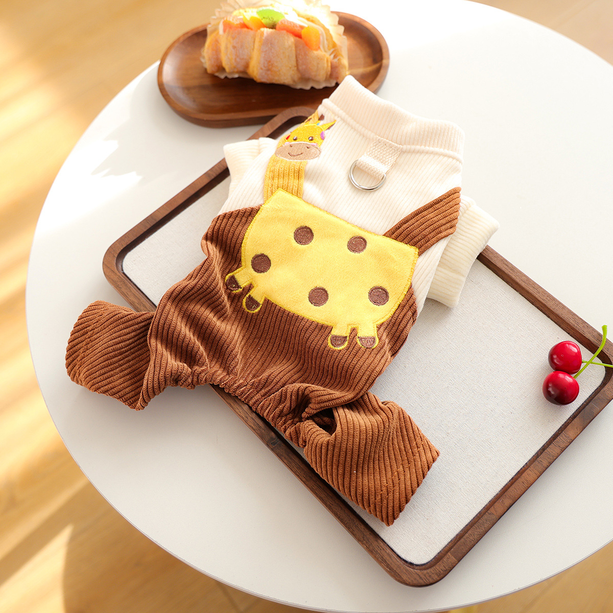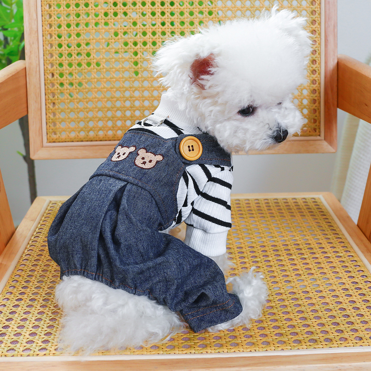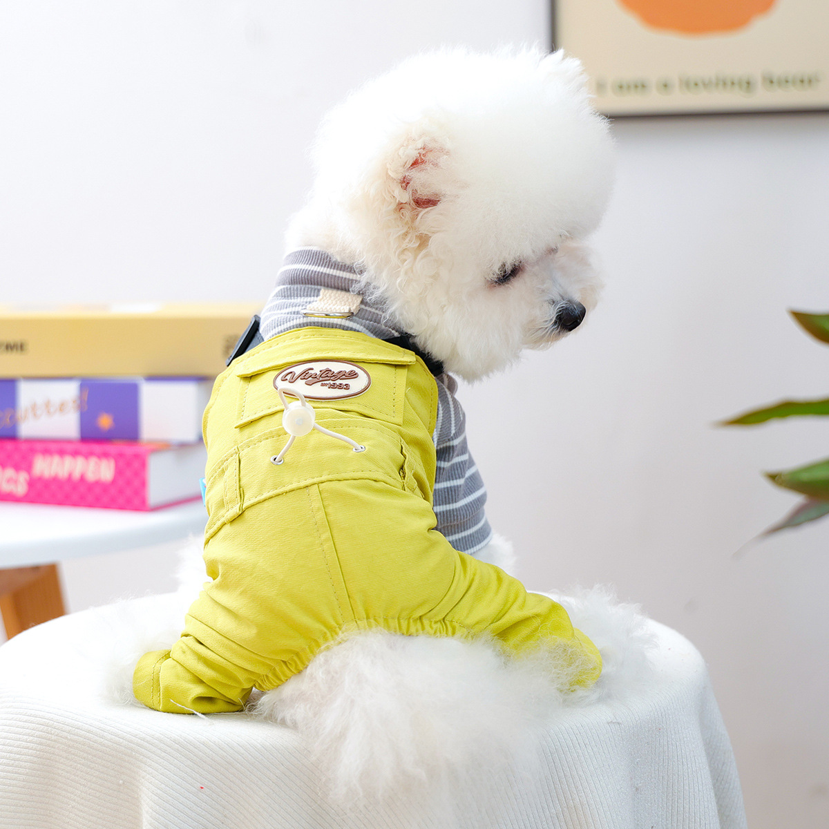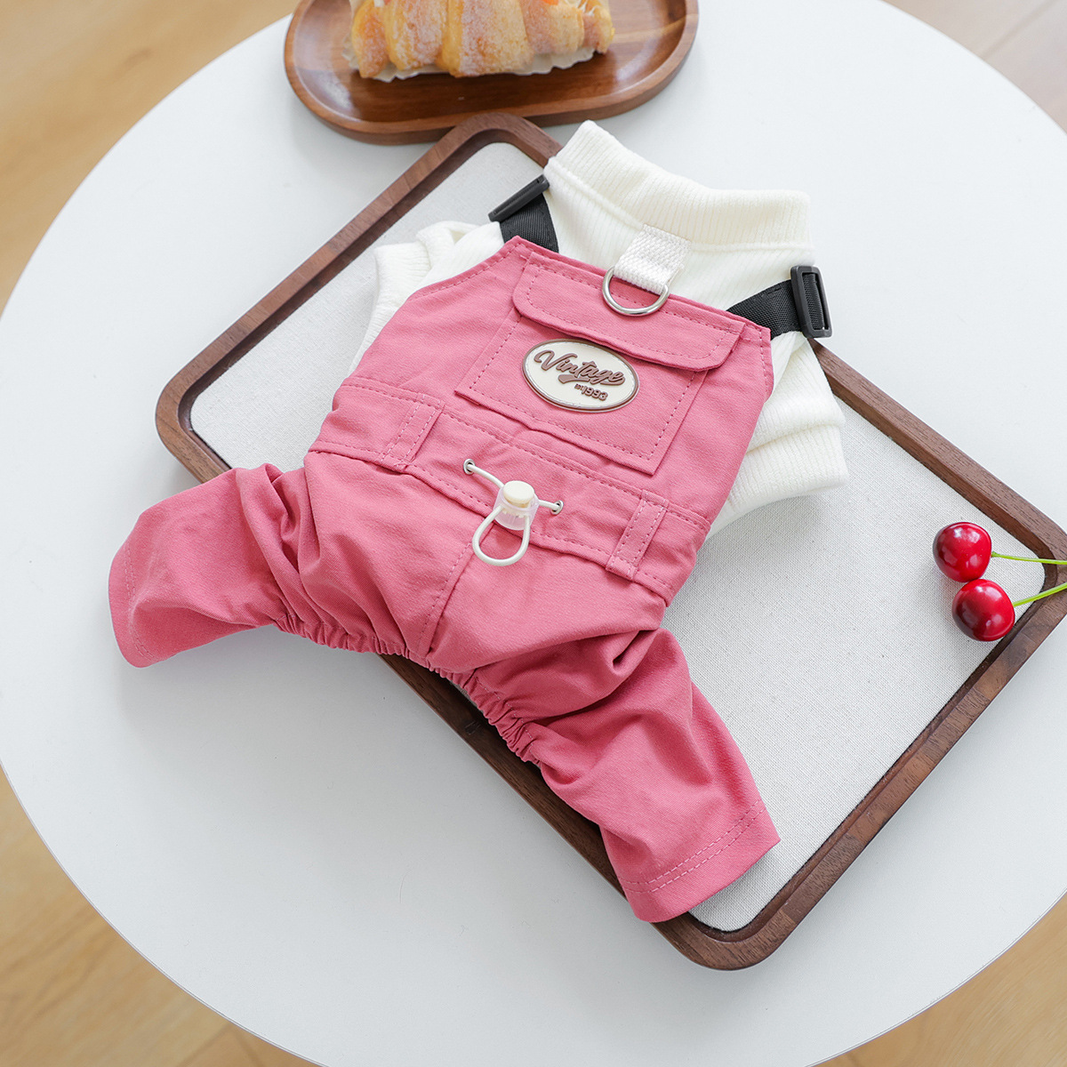 즉시 출고 가능한 애완동물 의류, 강아지 옷, 귀여운 공장제작 봄 가을 신상 공룡 네발옷, 멜빵바지 컬렉션스토어 가기