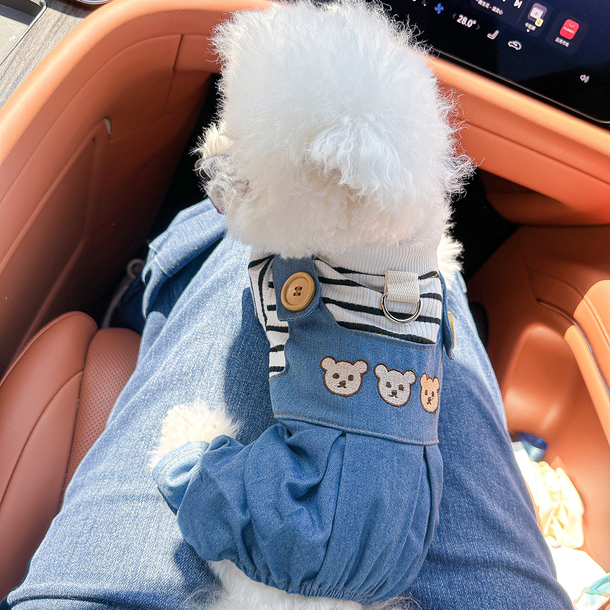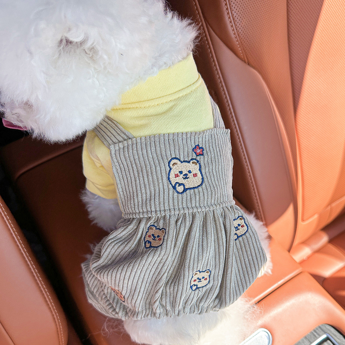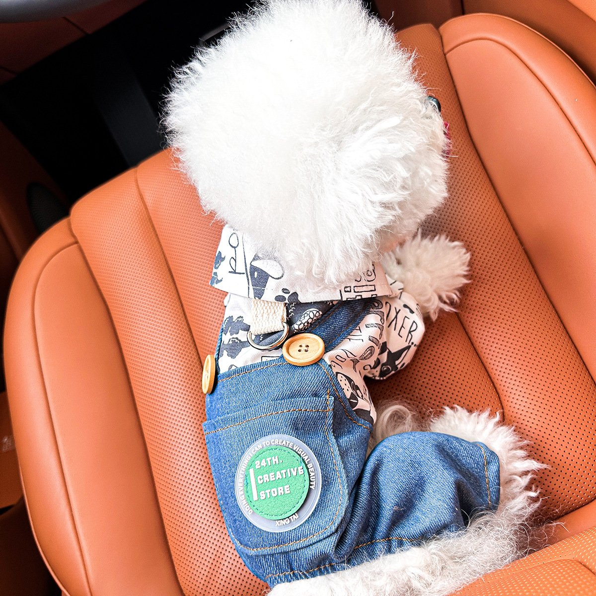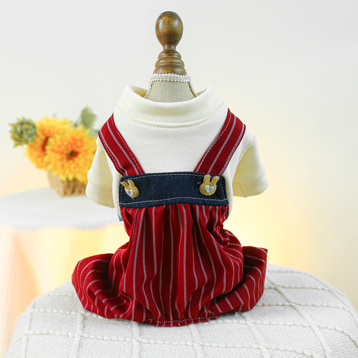 즉시 출고 가능한 애완동물 의류, 강아지 옷, 귀여운 공장제작 봄 가을 신상 공룡 네발옷, 멜빵바지 컬렉션스토어 가기