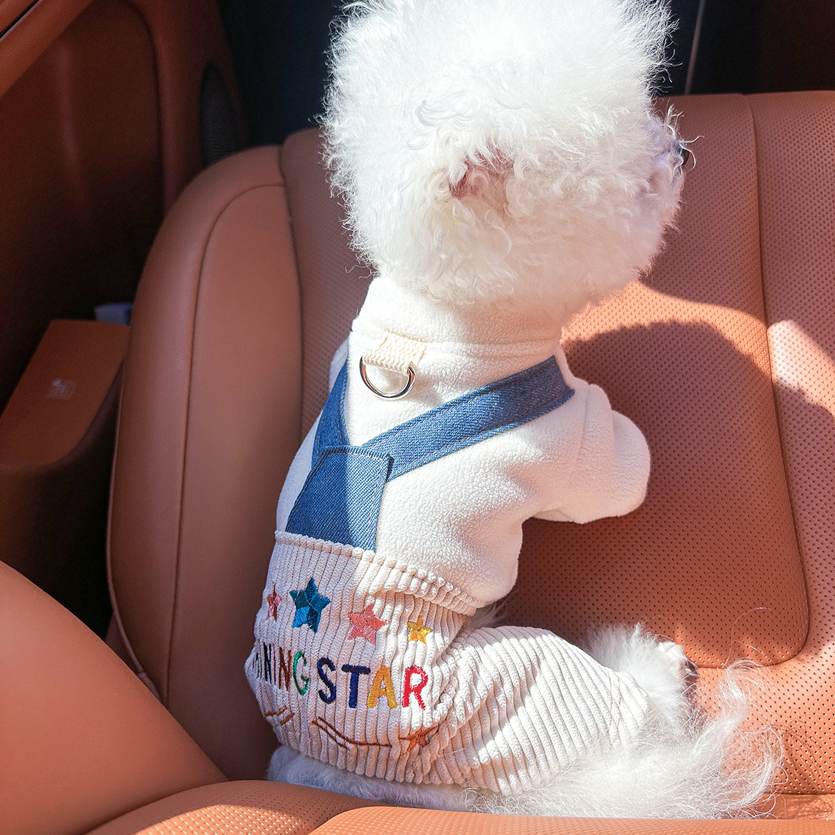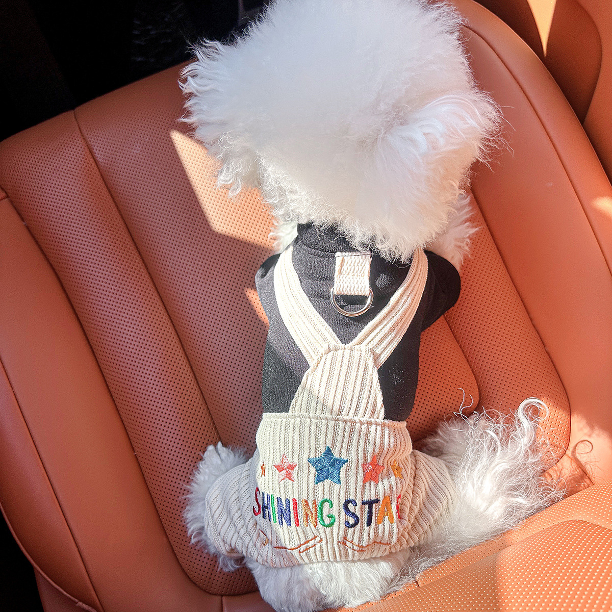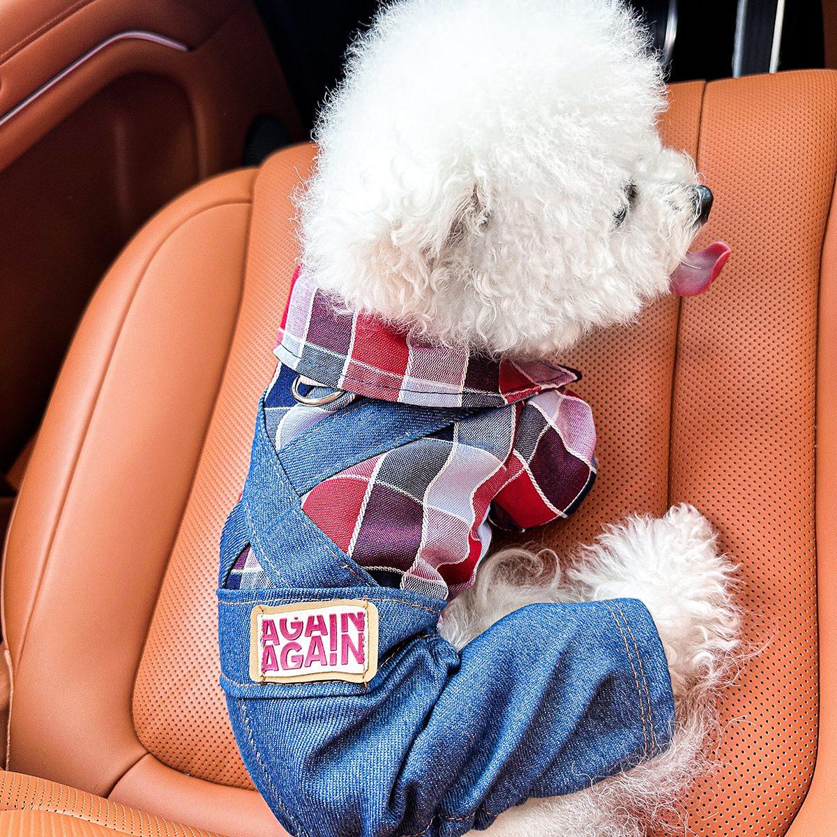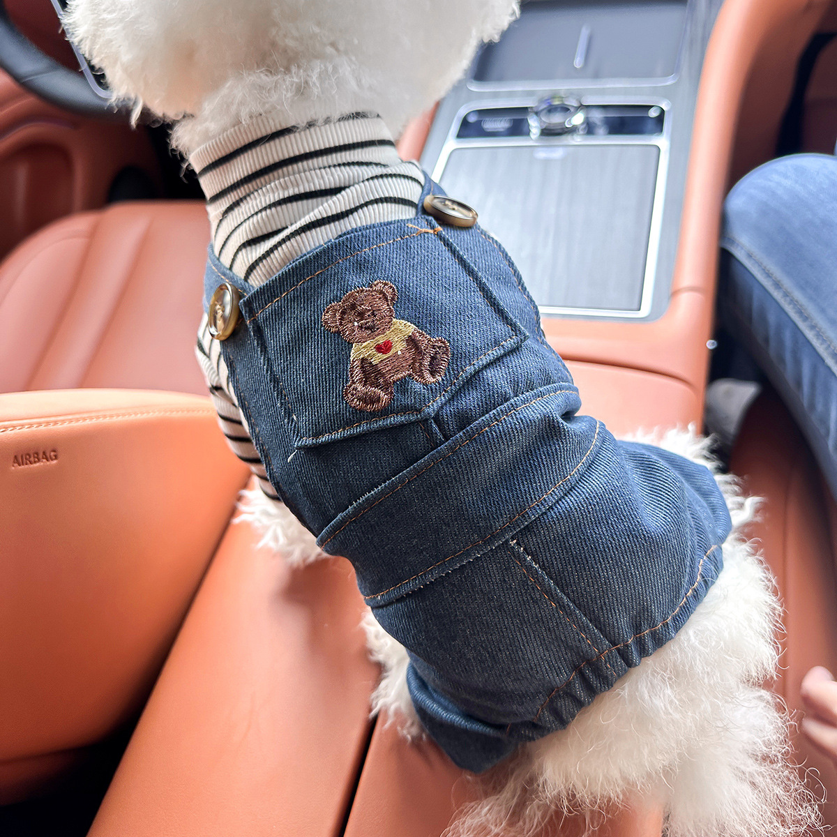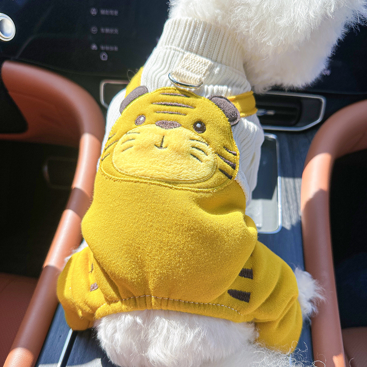 즉시 출고 가능한 애완동물 의류, 강아지 옷, 귀여운 공장제작 봄 가을 신상 공룡 네발옷, 멜빵바지 컬렉션스토어 가기