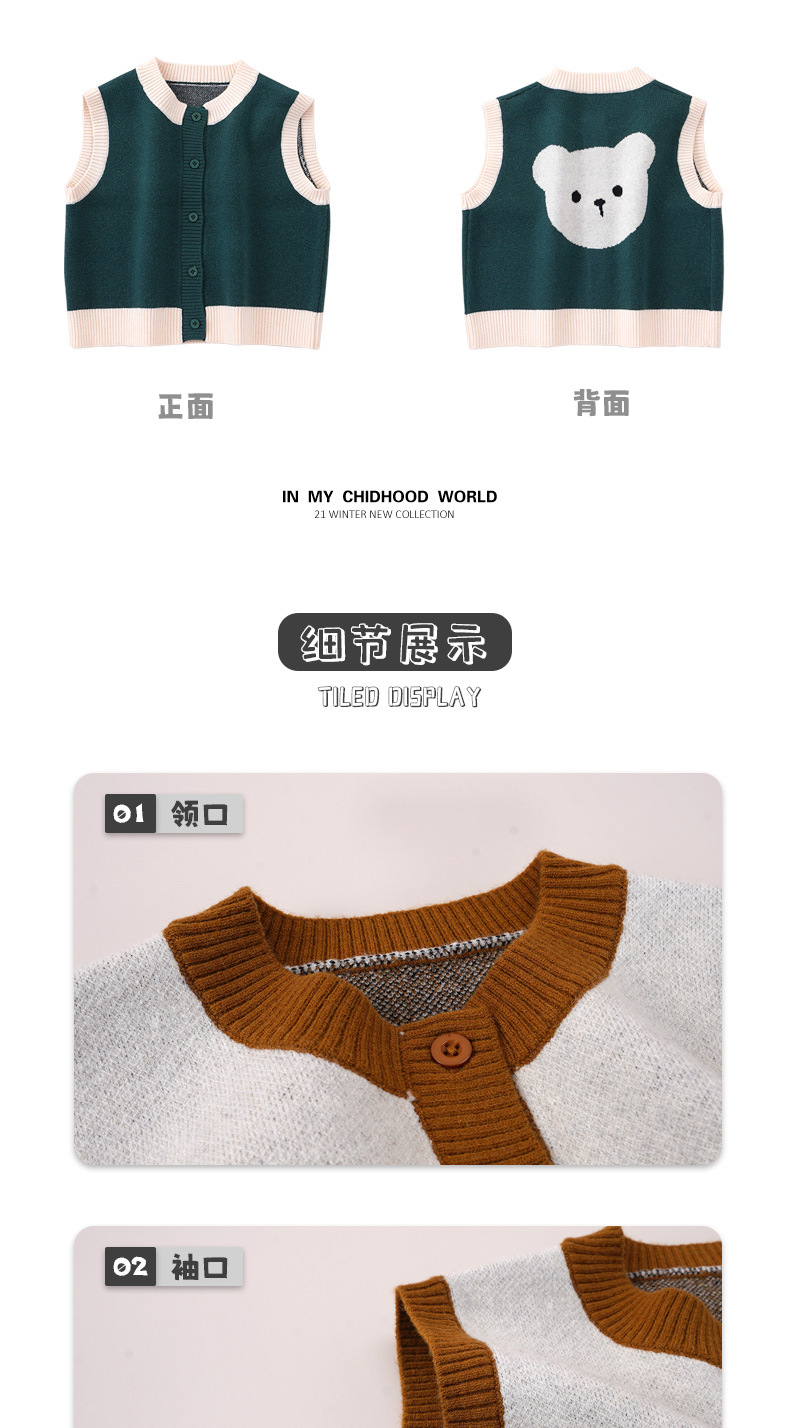 2024 봄 어린이 곰 조끼 중소 어린이 조끼 소년과 소녀 스웨터 양복 조끼 아기 니트 카디건
