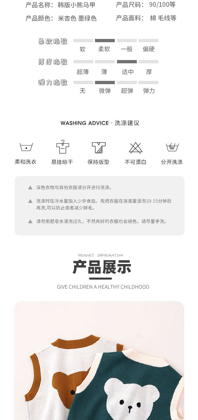 2024 봄 어린이 곰 조끼 중소 어린이 조끼 소년과 소녀 스웨터 양복 조끼 아기 니트 카디건스토어 가기
