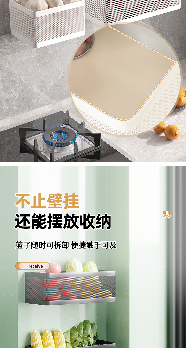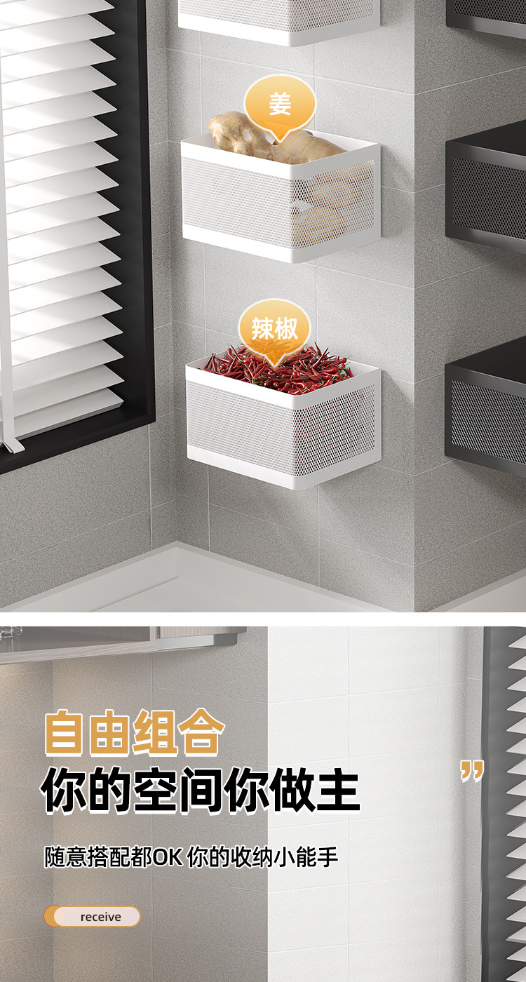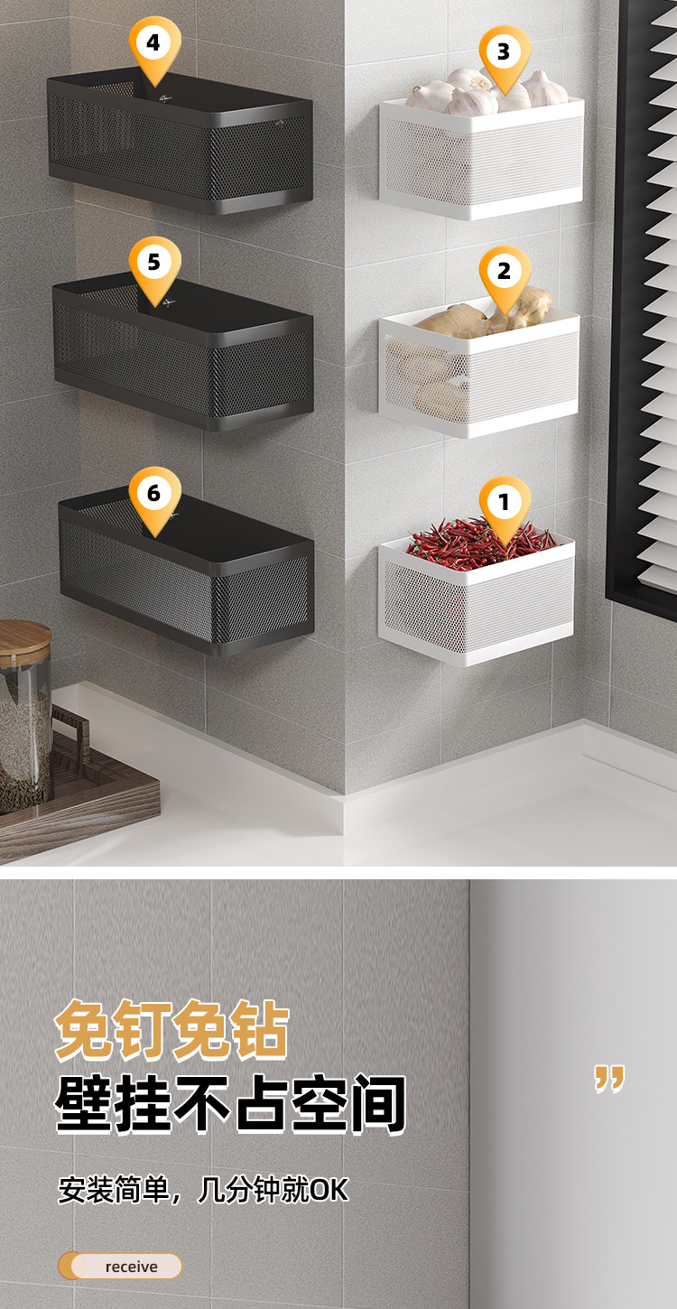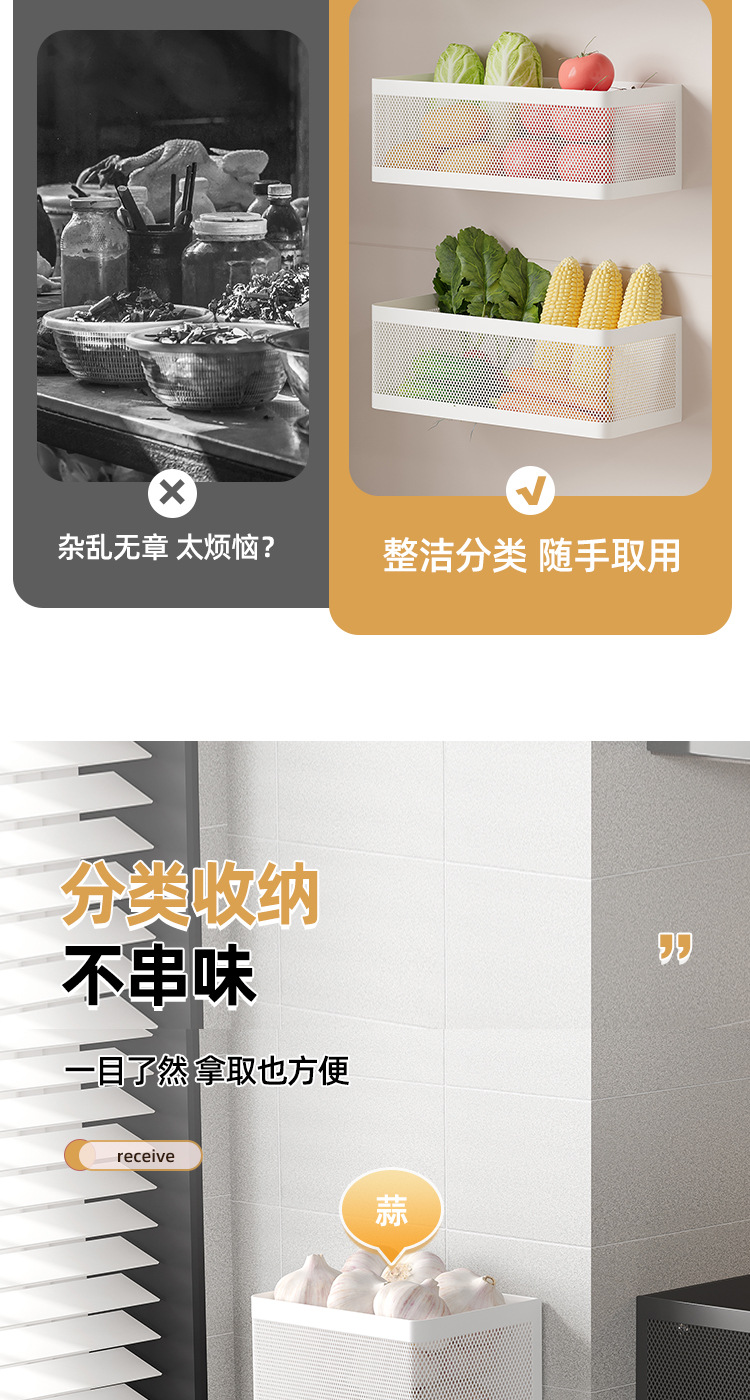 주방 양파, 생강 및 마늘 저장 상자 보관 랙 벽걸이 펀치 프리 조미료 랙 바구니 벽 야채 용품 유물스토어 가기