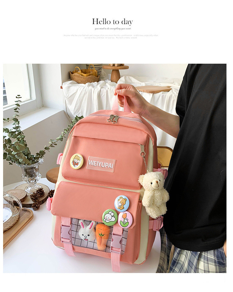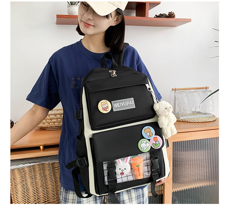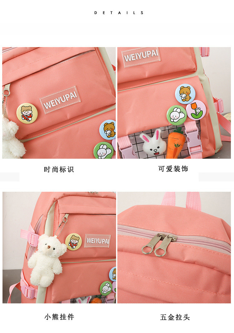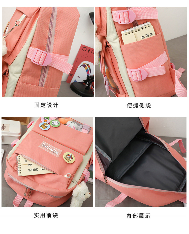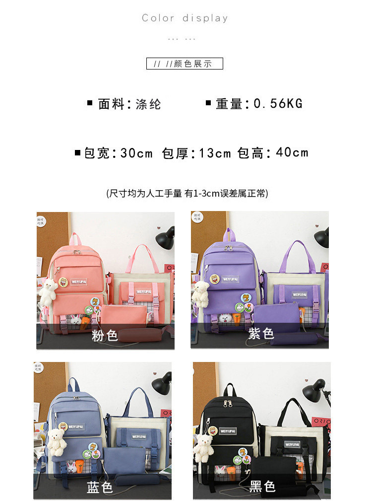 4 조각 학생 스쿨백 한국 스타일 캐주얼 유행 배낭 대용량 한국 스타일 간단한 단색 야외 여행 가방