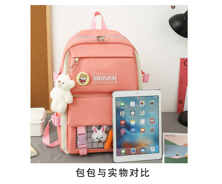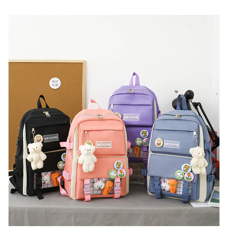 4 조각 학생 스쿨백 한국 스타일 캐주얼 유행 배낭 대용량 한국 스타일 간단한 단색 야외 여행 가방스토어 가기