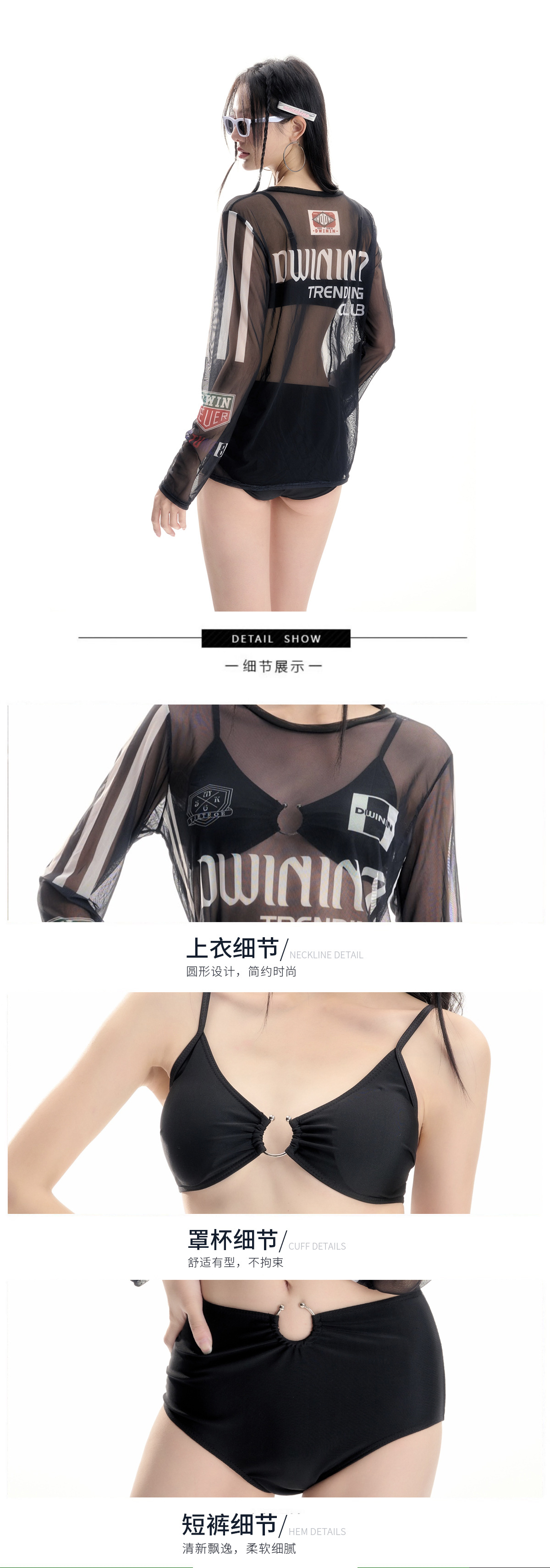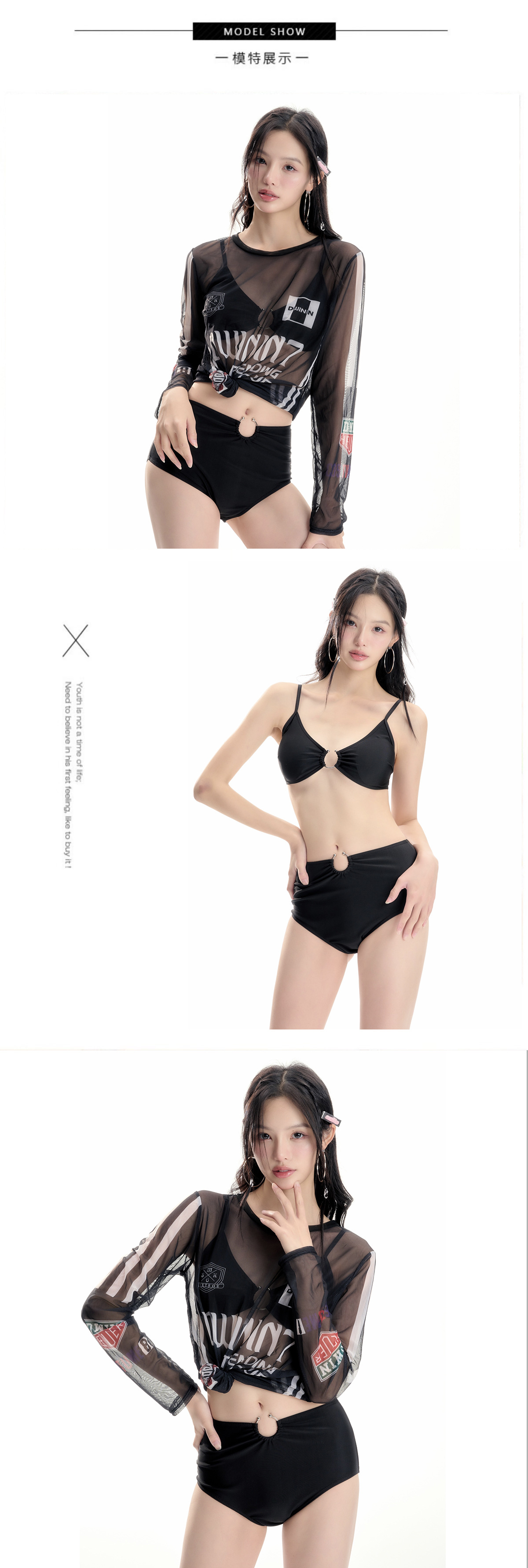 2024 새로운 폴리 에스테르 아시아 한국어 버전 분할 비키니 3 피스 섹시한 긴 소매 슬리밍 온천 수영복 여성 도매