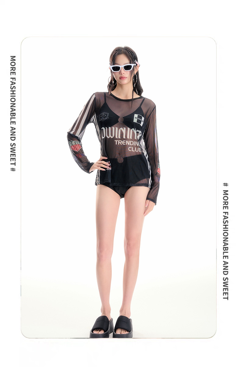 2024 새로운 폴리 에스테르 아시아 한국어 버전 분할 비키니 3 피스 섹시한 긴 소매 슬리밍 온천 수영복 여성 도매스토어 가기