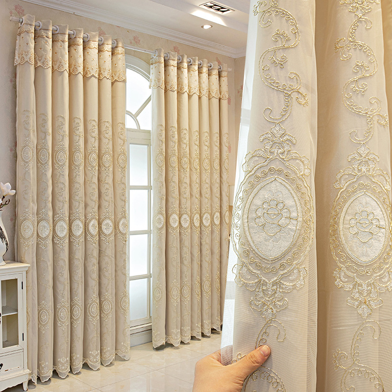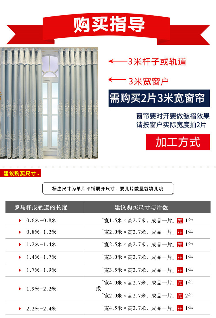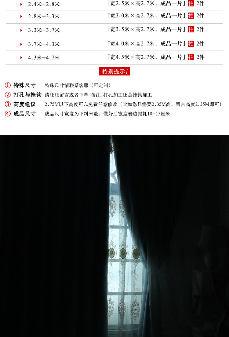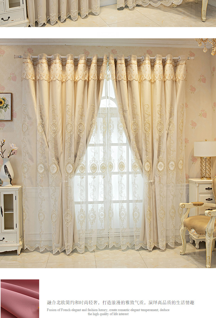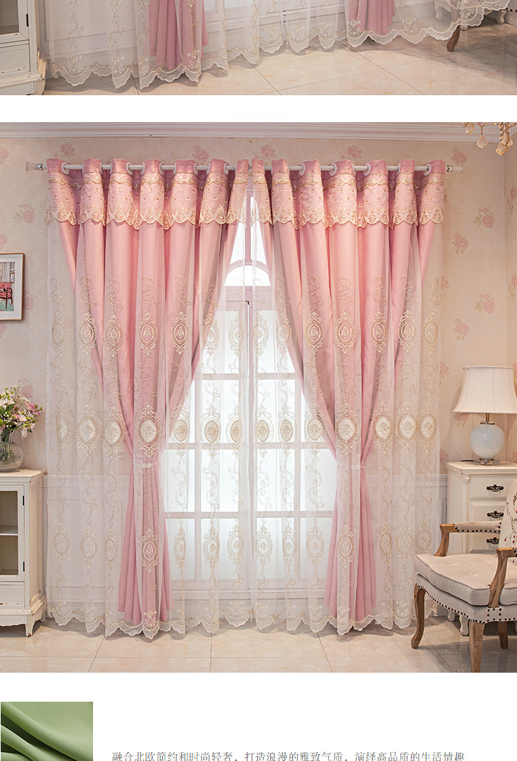 원피스 배달 천 원사 통합 레이스 자수 더블 레이어 커튼 침실 거실 베이 창 전체 음영 완제품스토어 가기