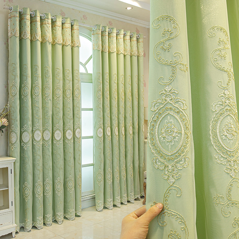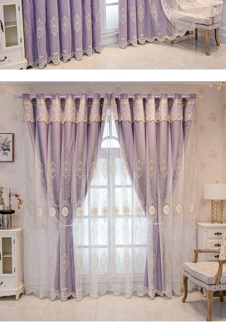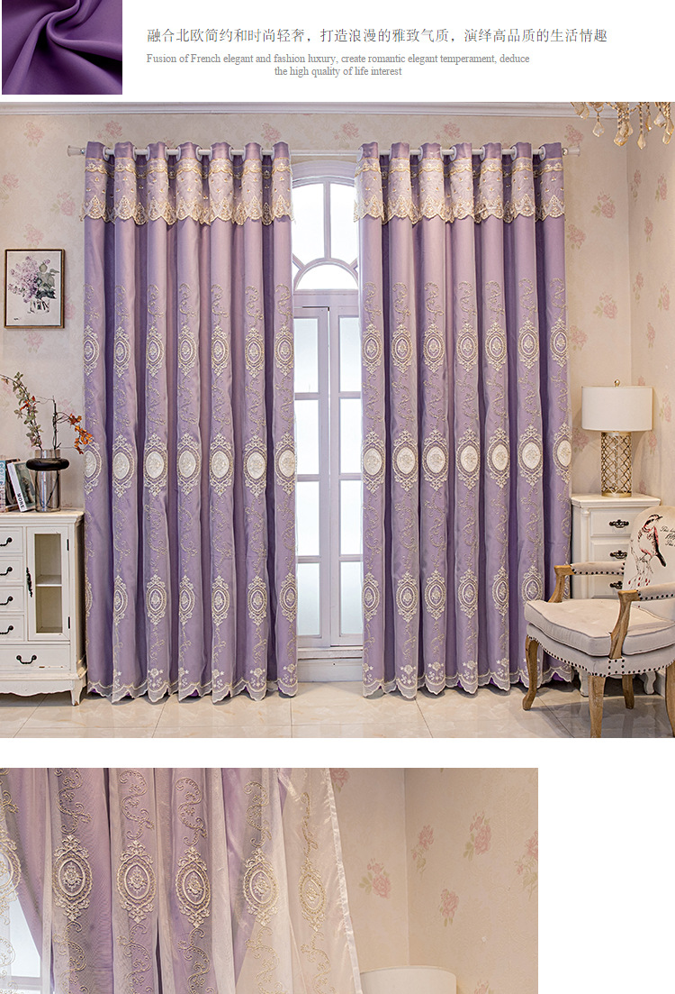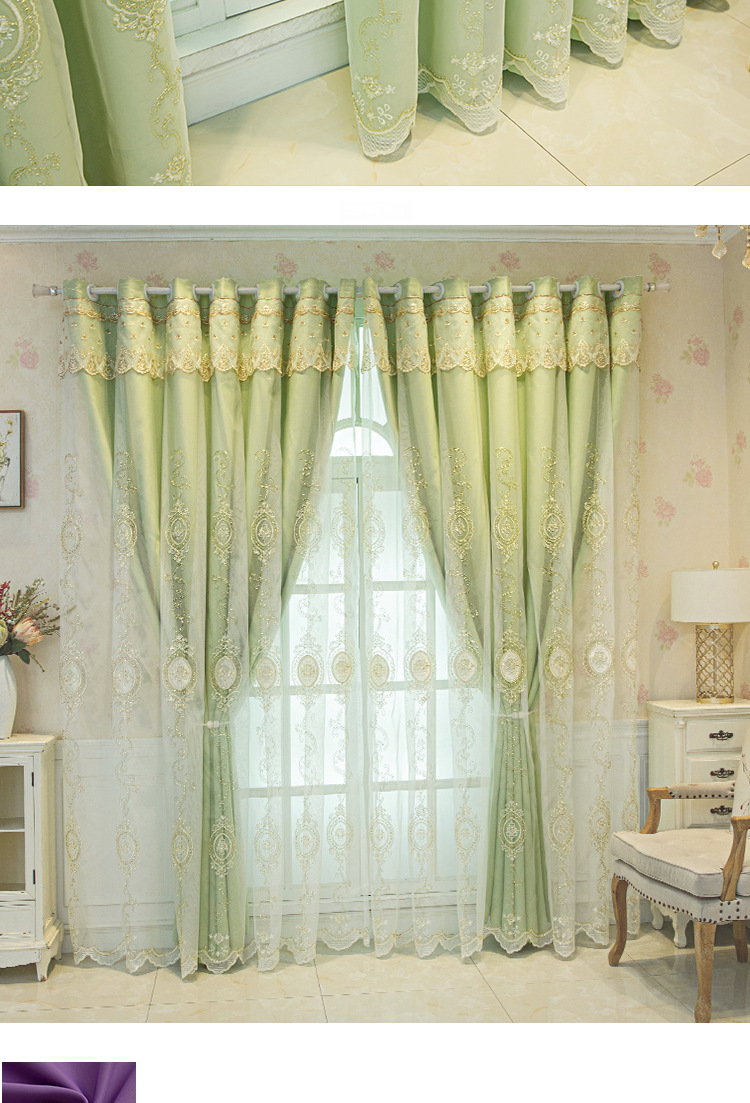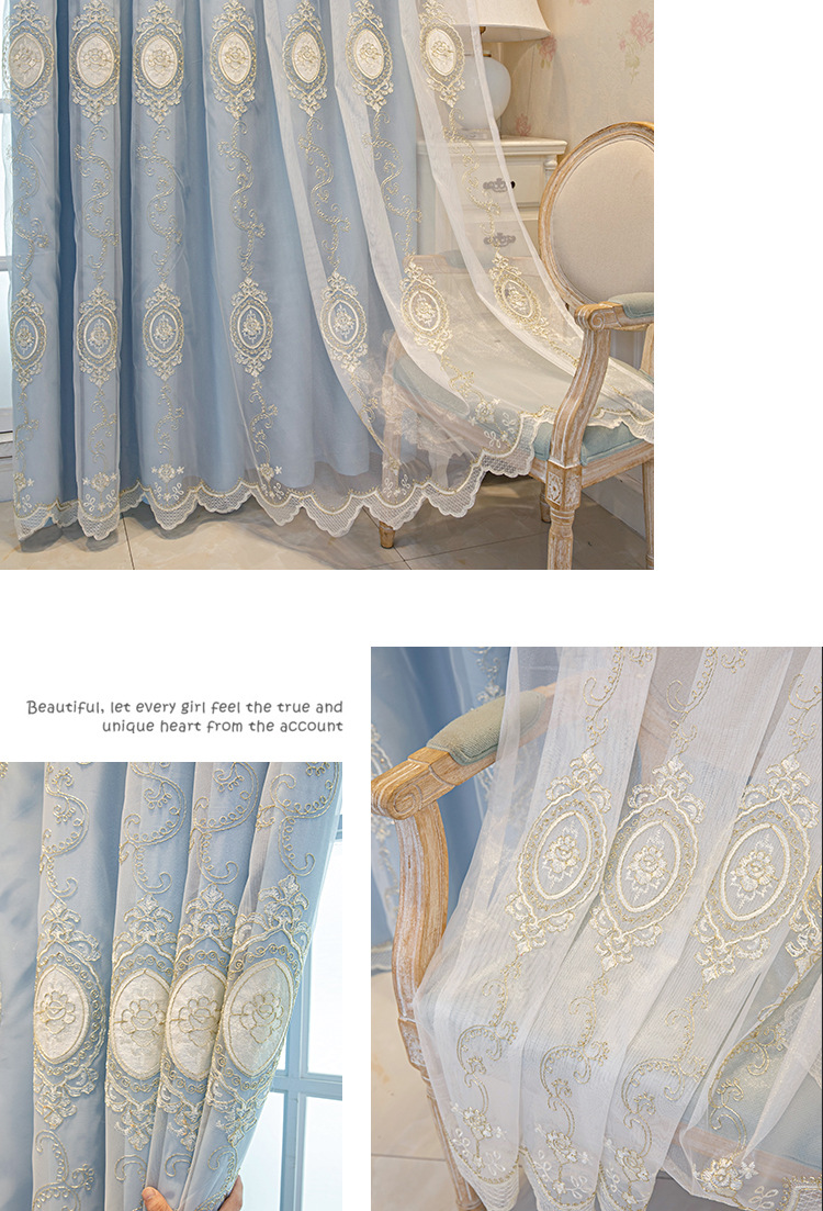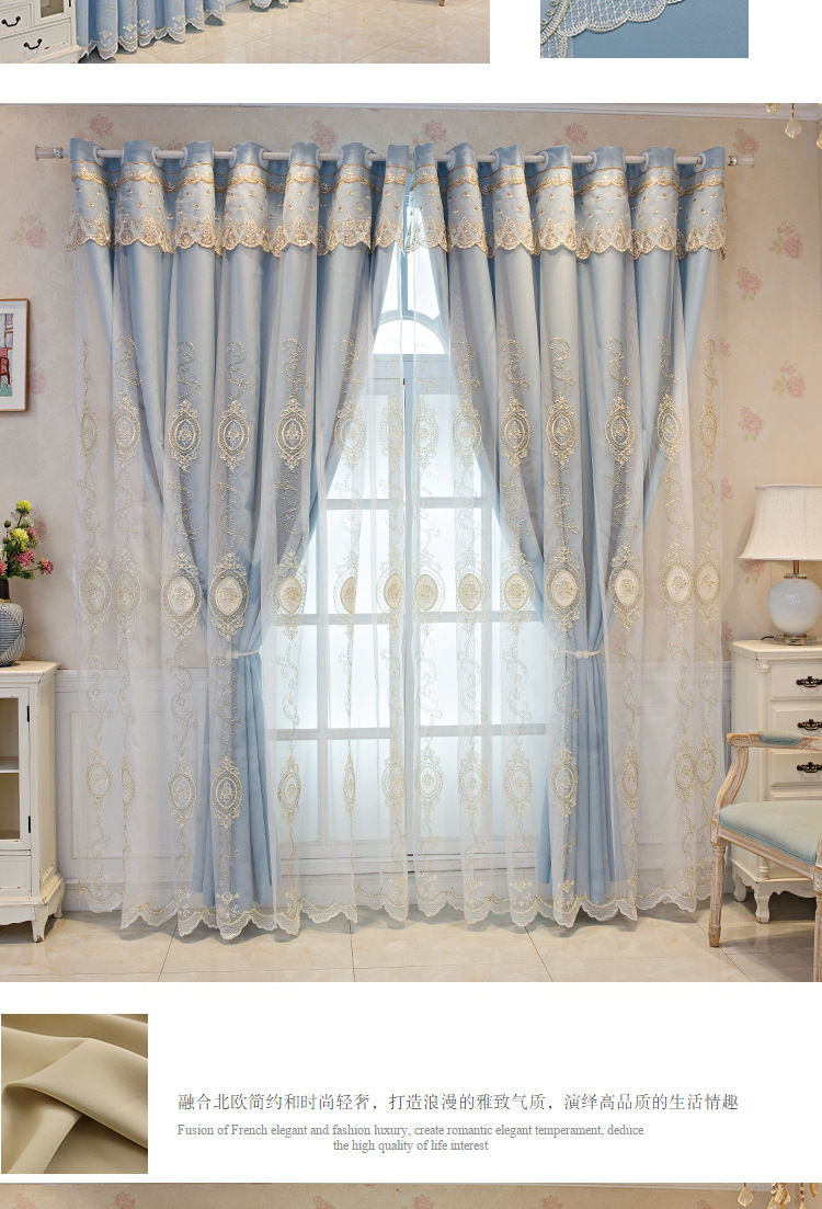 원피스 배달 천 원사 통합 레이스 자수 더블 레이어 커튼 침실 거실 베이 창 전체 음영 완제품