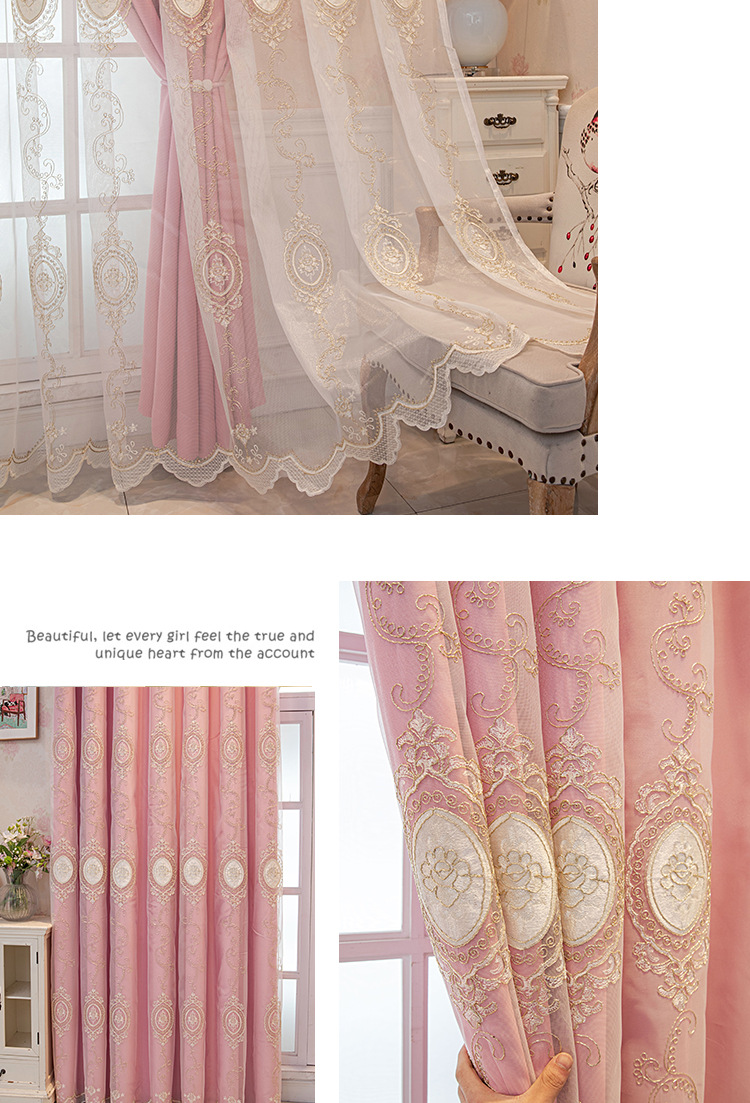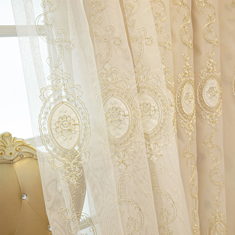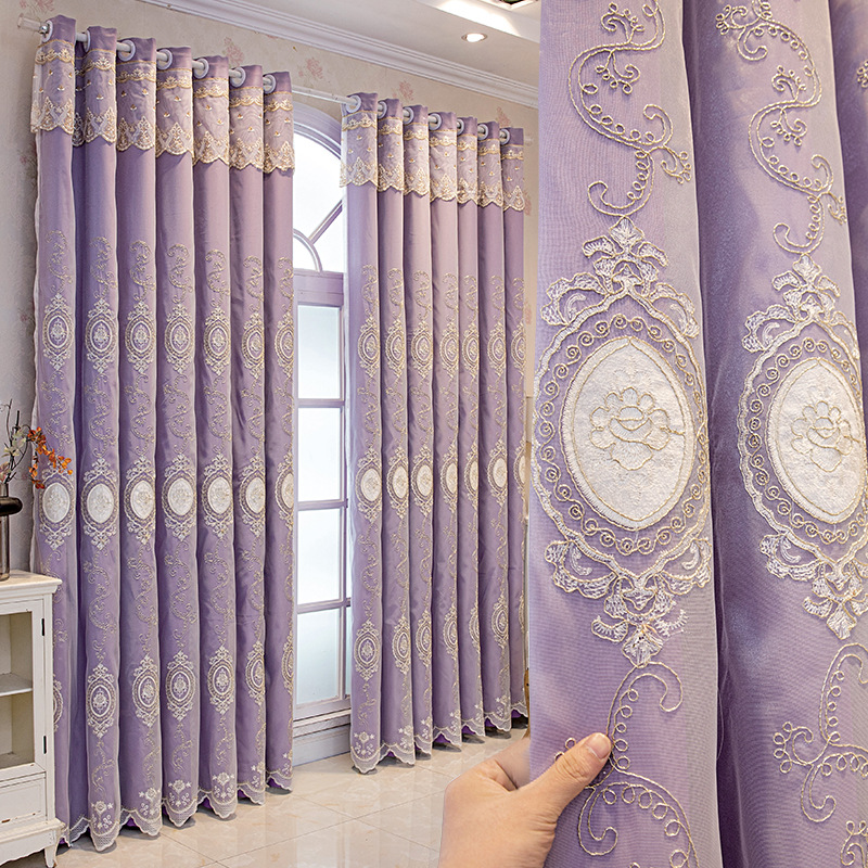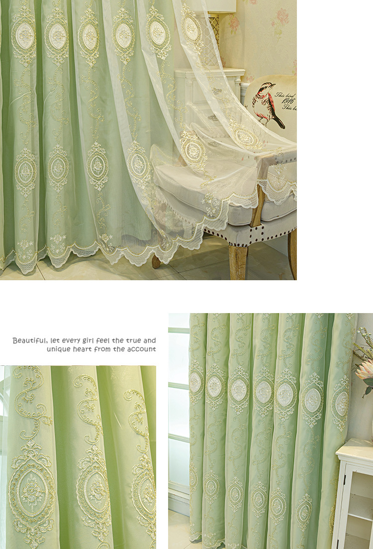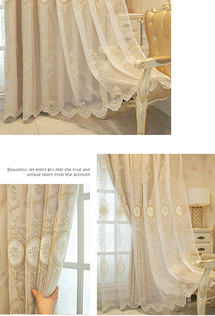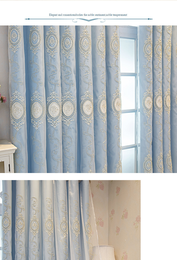 원피스 배달 천 원사 통합 레이스 자수 더블 레이어 커튼 침실 거실 베이 창 전체 음영 완제품