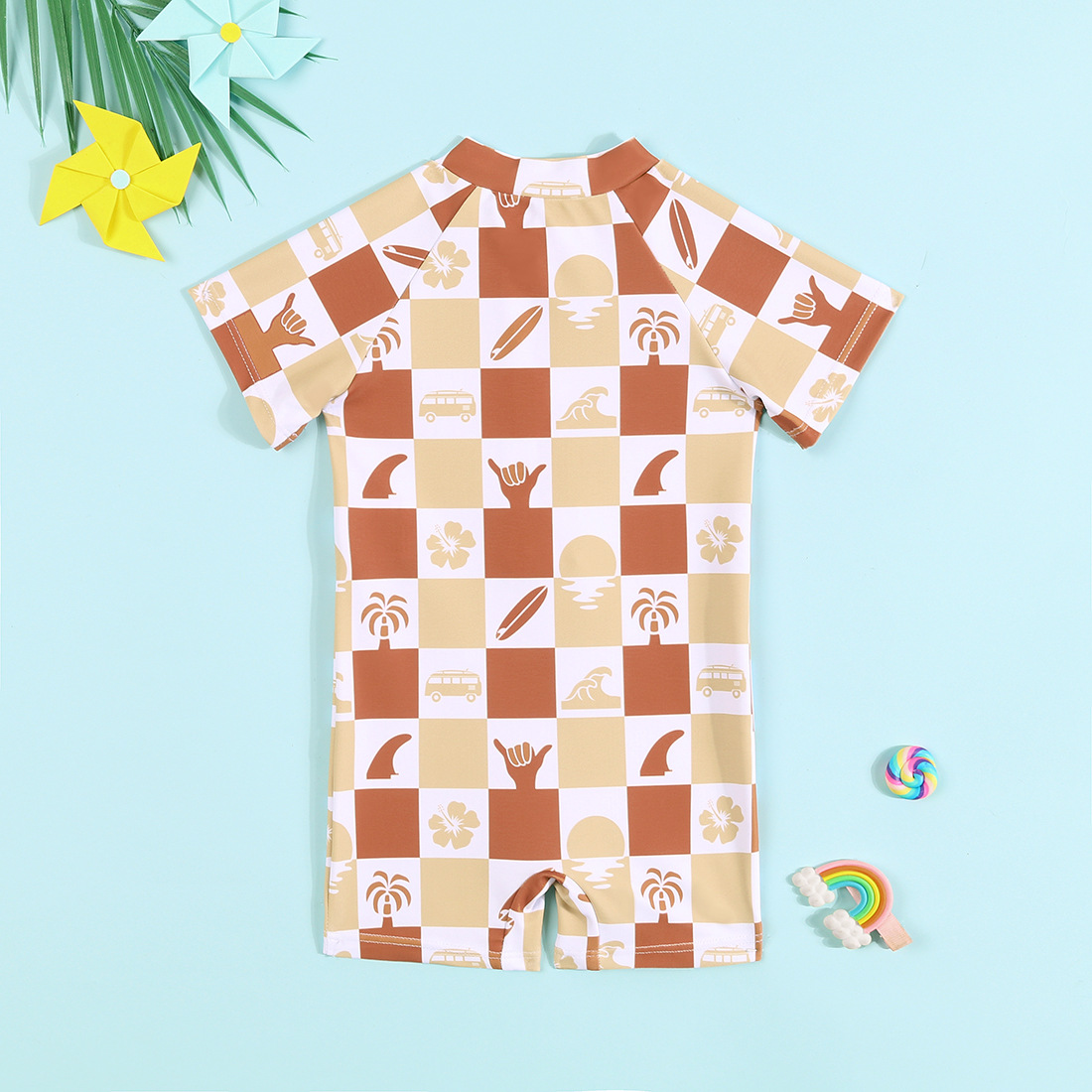 어린이 수영복 소년 원피스 수영복 긴팔 반바지 태양 보호 줄무늬 상어 둥근 목 어린이 수영복 국경 간 공급
