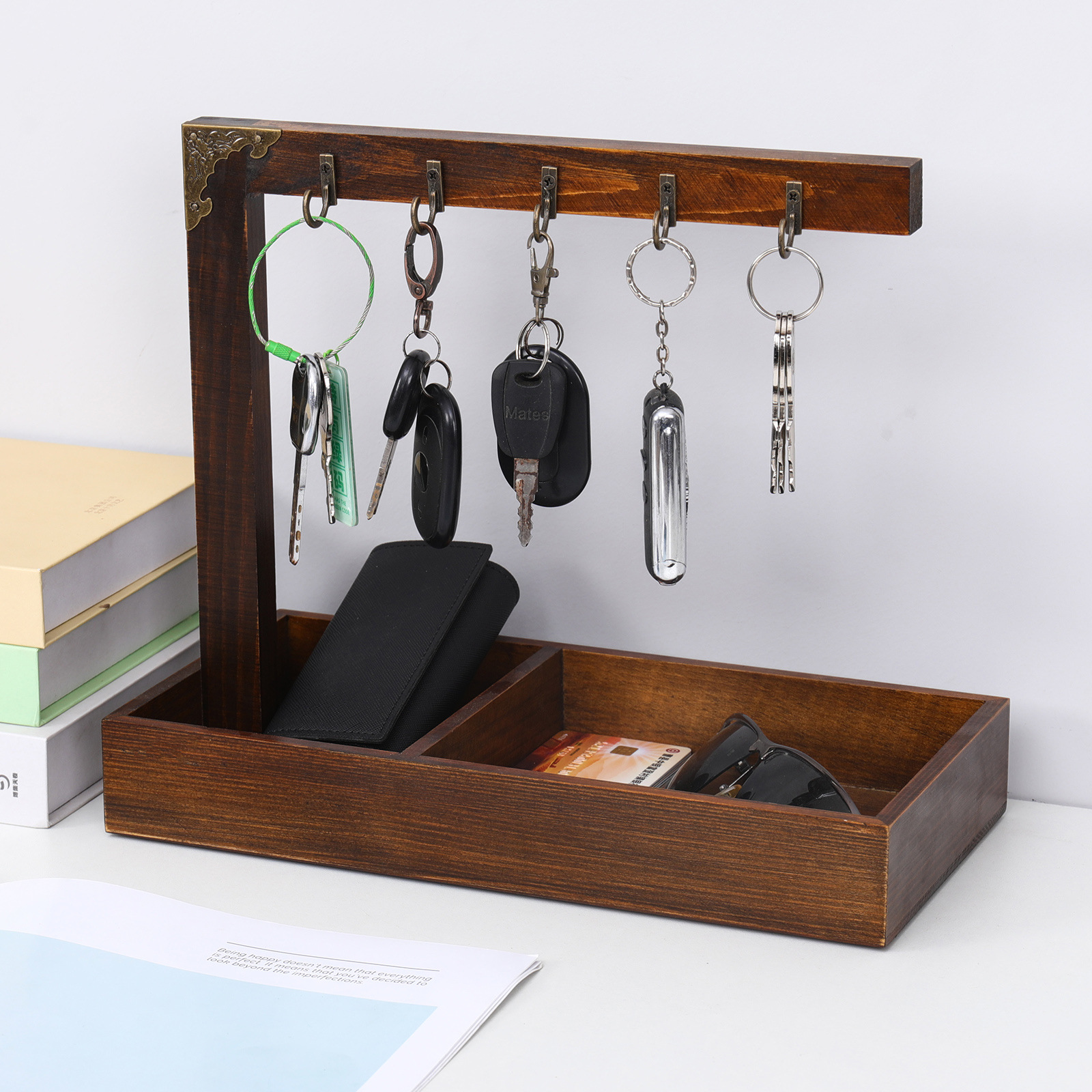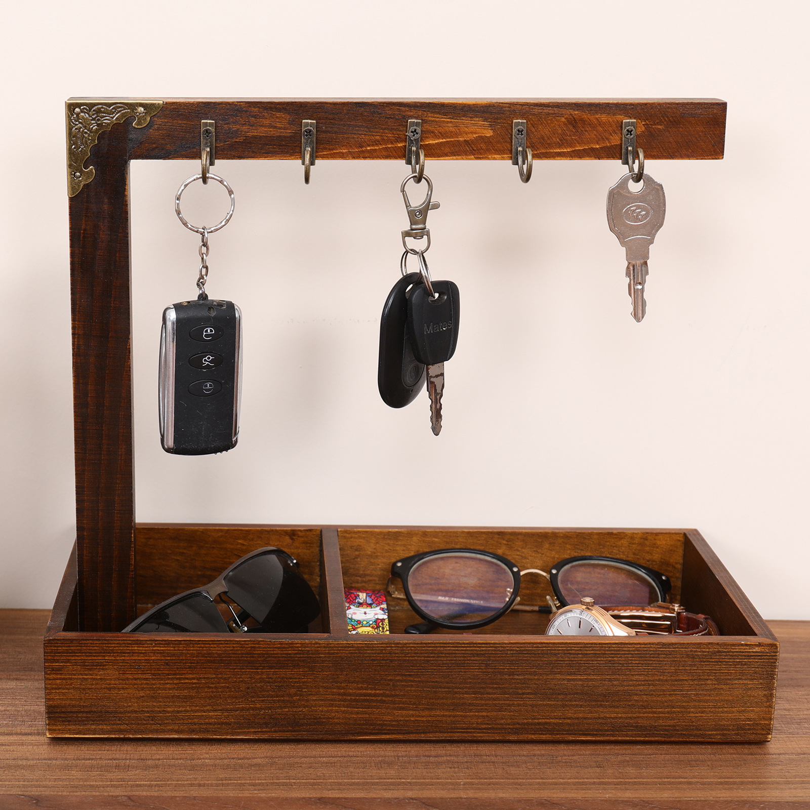 나무 현관문 앞 신발장 열쇠 보관함 거실 장식품 탁상용 열쇠 보관함 수납 트레이