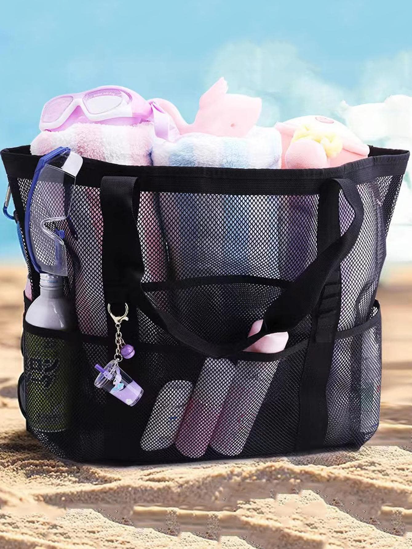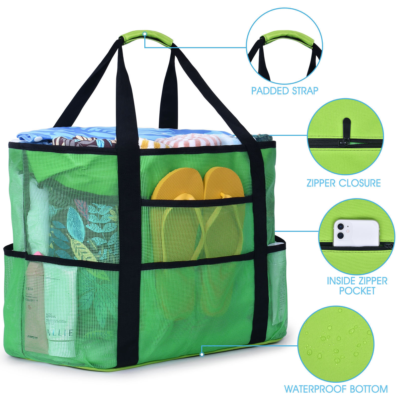 국경 간 아마존 대용량 장난감 보관 8 포켓 욕실 가방 휴대용 어깨 비치 가방 저장 가방 세척스토어 가기