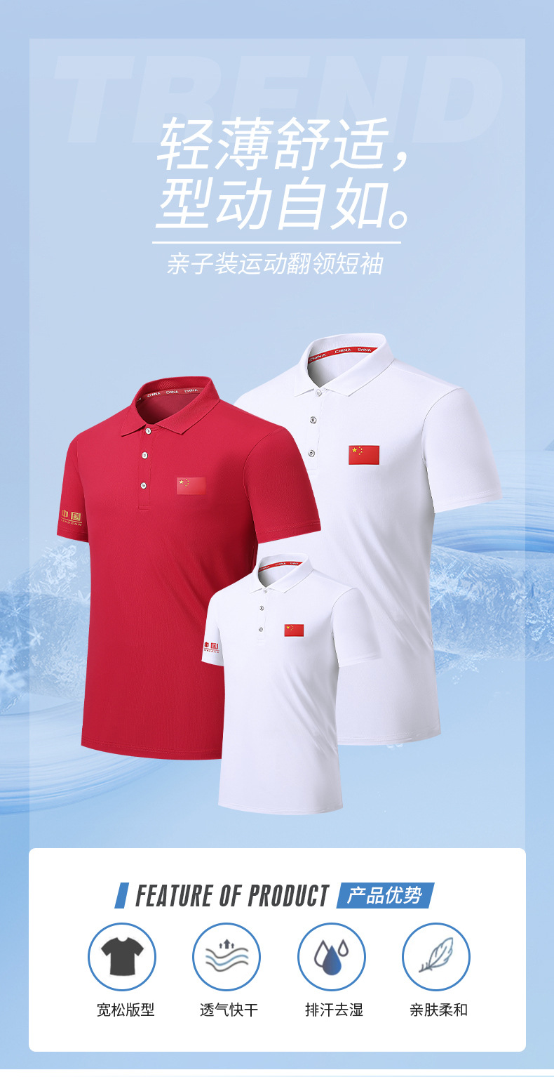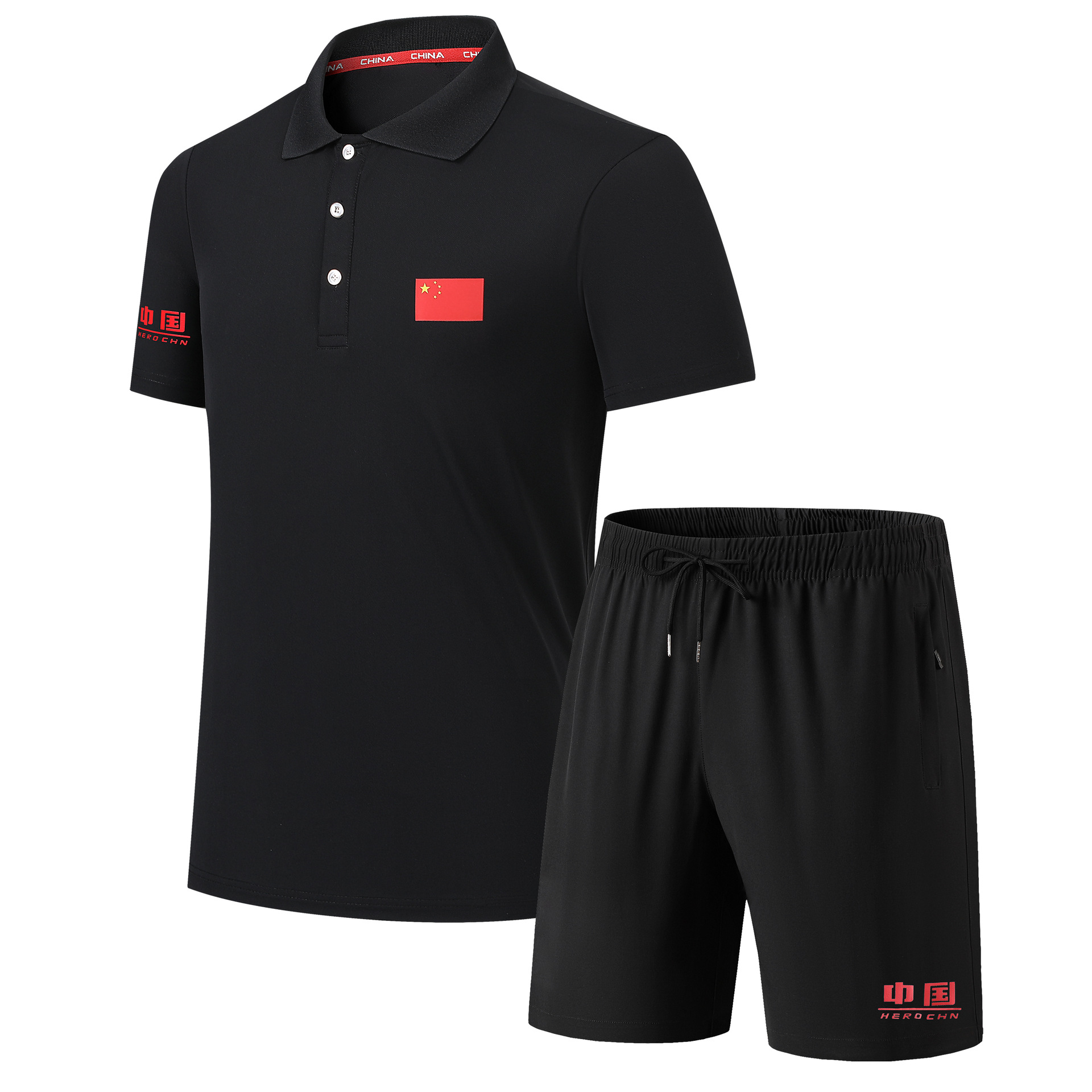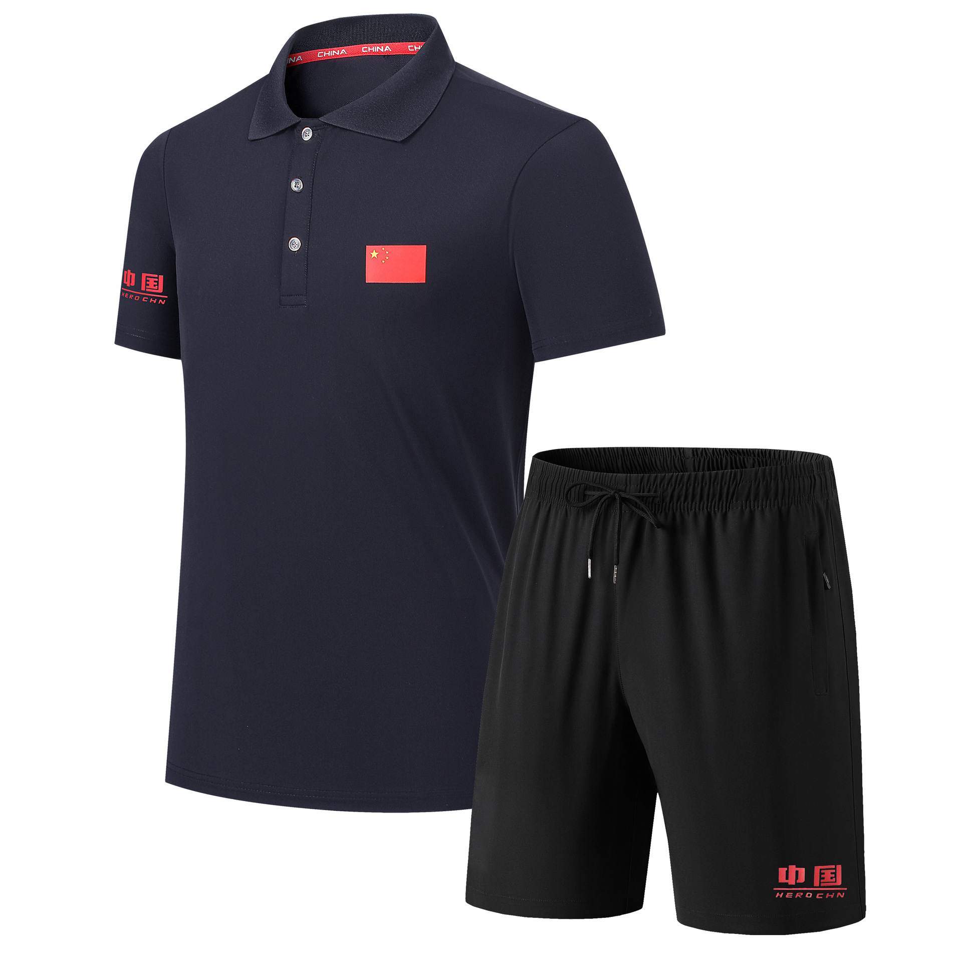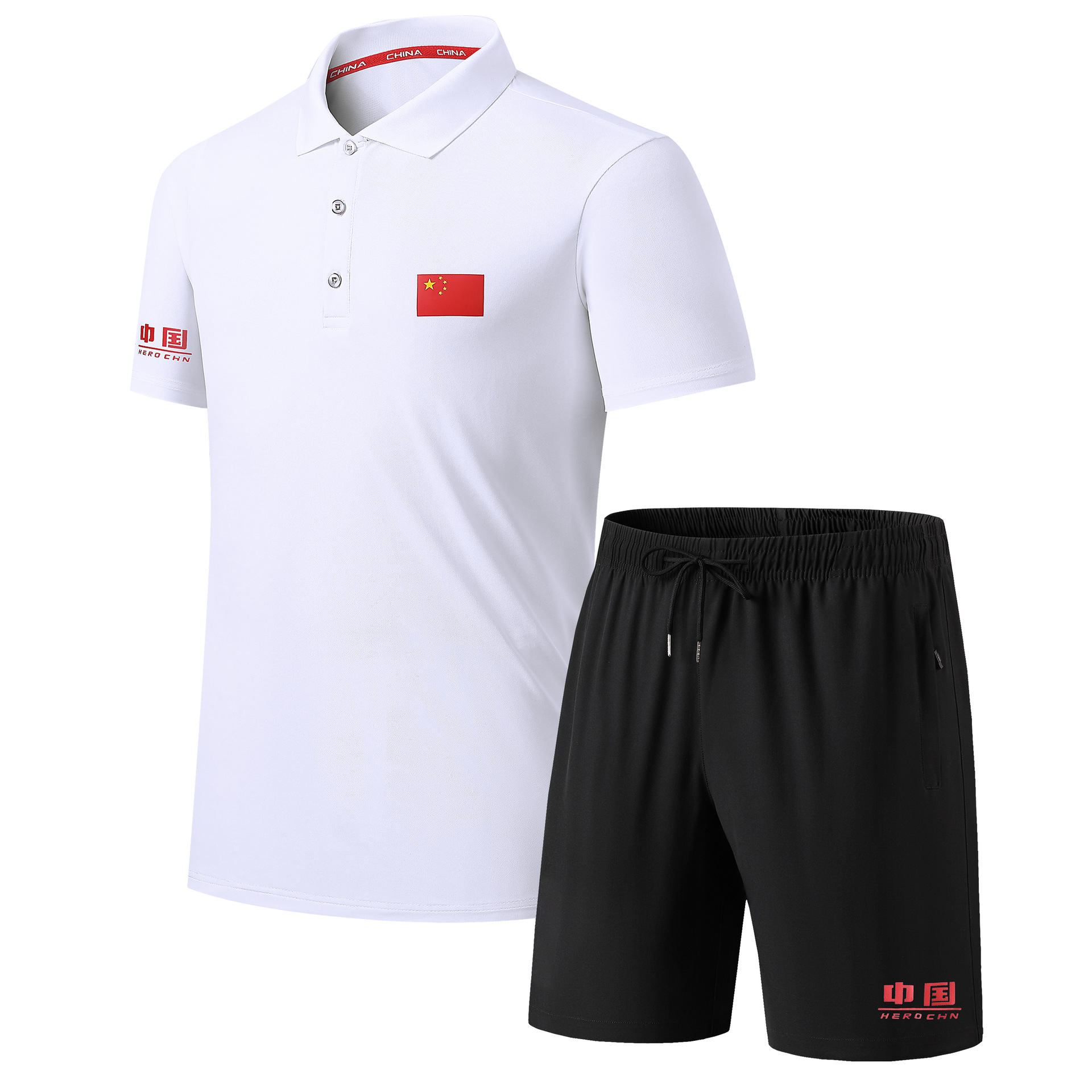 중국 팀 여름 남자 아이스 실크 폴로 반팔 스포츠 반바지 캐주얼 세트 코치 유니폼 커플 대회 유니폼 공연