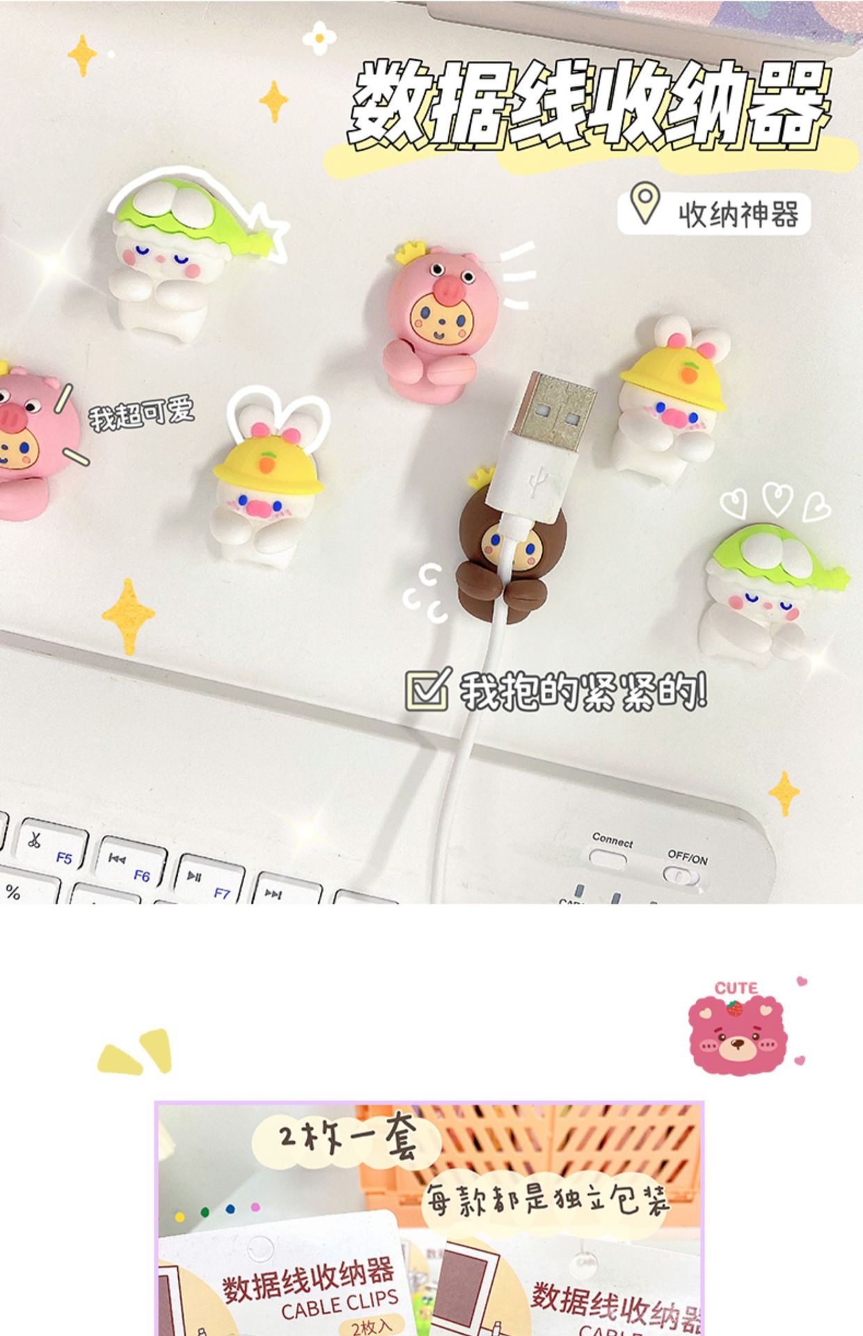 귀여운 데스크탑 데이터 케이블 저장 원활한 펀치 프리 케이블 주최자 휴대 전화 충전 케이블 고정 클립 버클 홀더