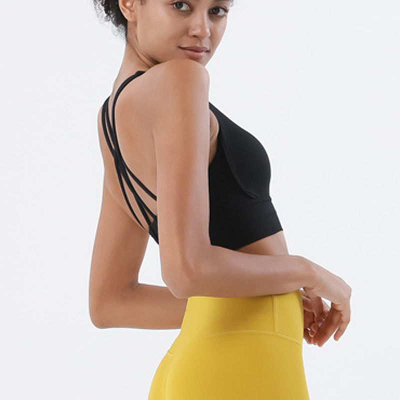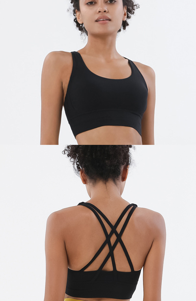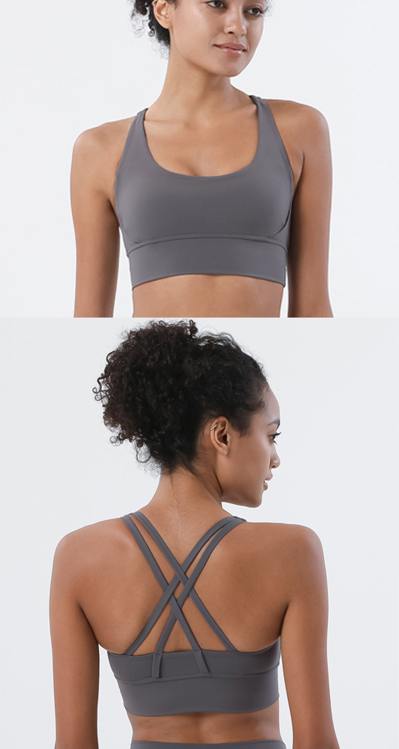 새로운 재고 양면 솔질 크로스 백 스포츠 속옷 충격 방지 푸시 업 요가 스포츠 브래지어 피트니스 조끼
