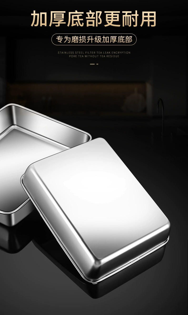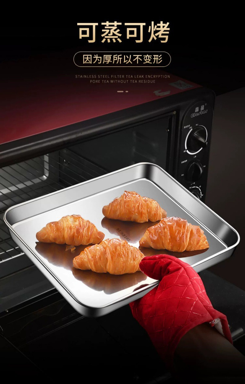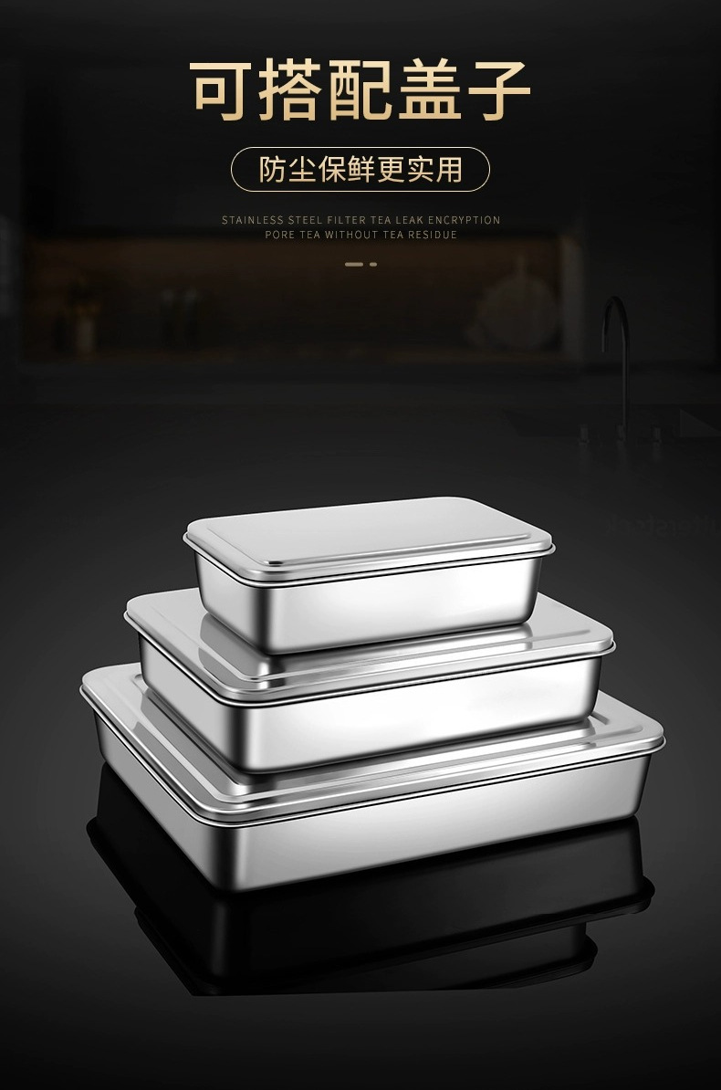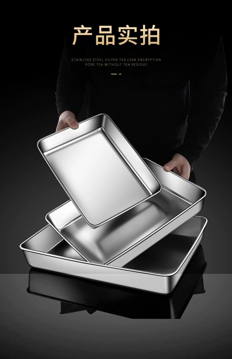 • 304 스테인리스 스틸 두께 평판 트레이 - [중형] + 스틸 뚜껑