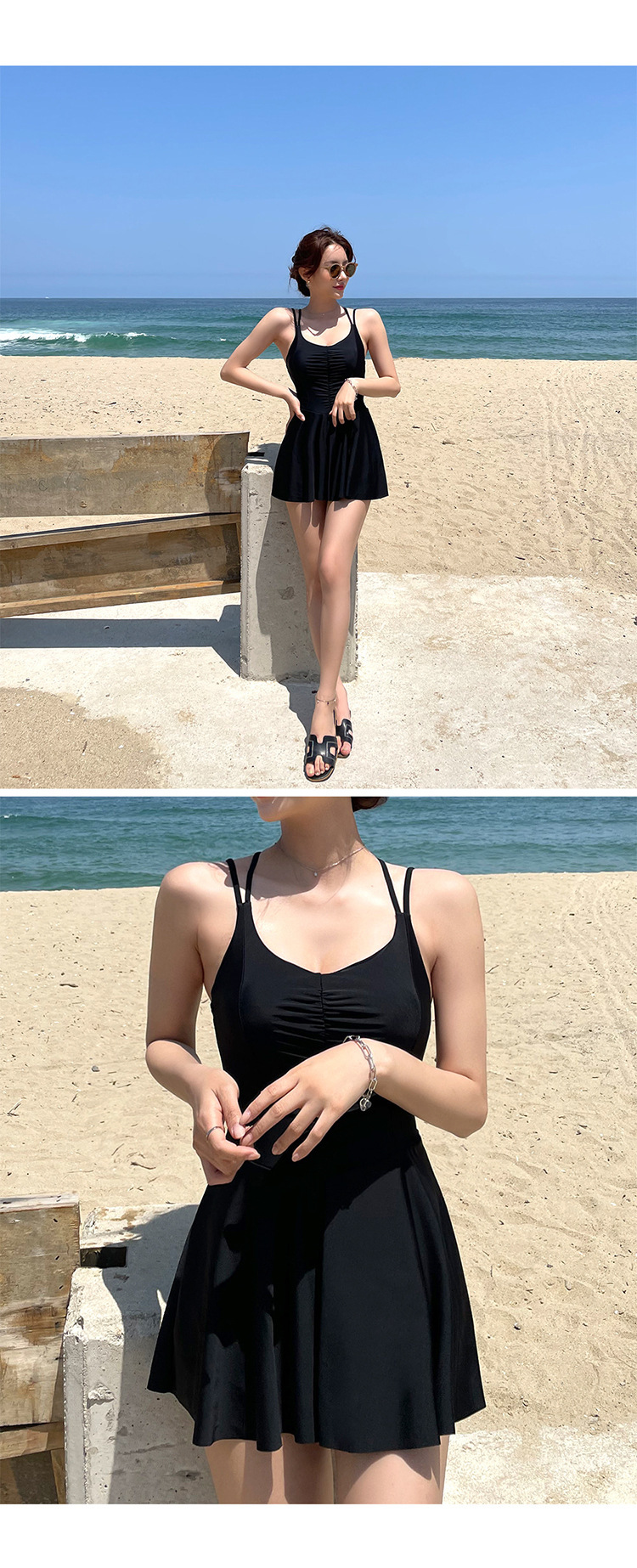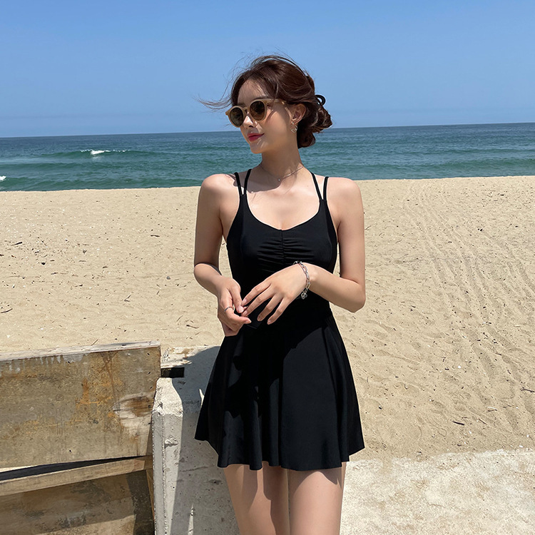 크로스-국경 도매 섹시한 뷰티 백 원피스 복서 스커트 배 커버 슬리밍 슬림 스틸 지원 작은 가슴 온천 여성 수영복