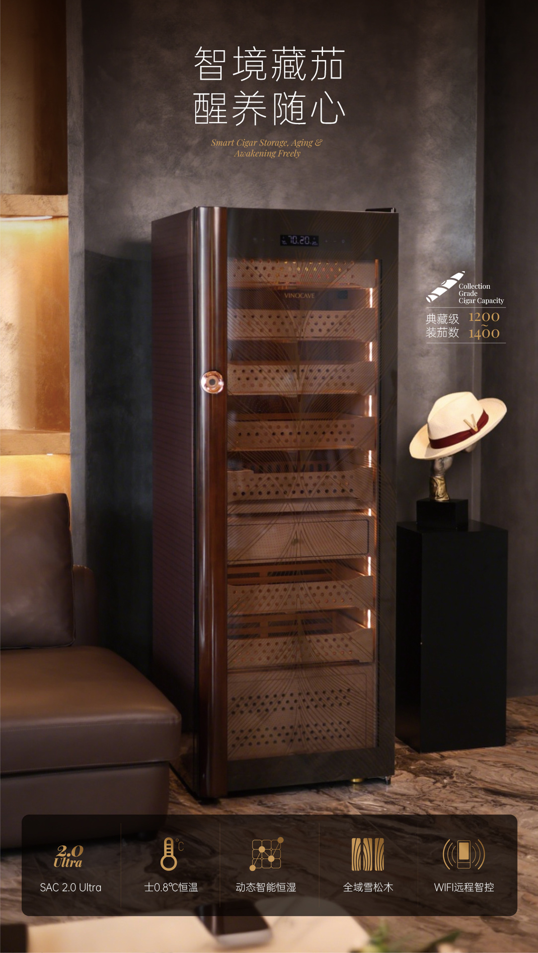 Vinocave/Vinocaf JC-268AH 일정한 온도와 습도 시가 캐비닛 가지 룸 등급 알몸 시가 보습 캐비닛