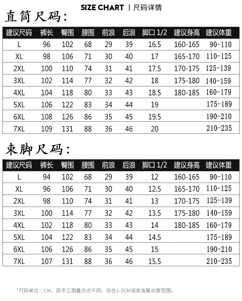 3. 尺码定制:支持常规码/大码/定制尺码表