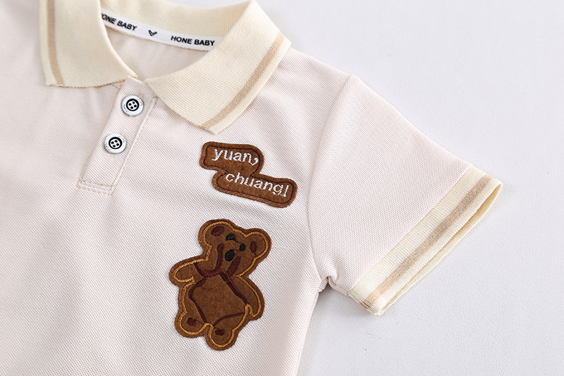 2024 소년 옷깃 만화 곰 폴로 셔츠 투피스 세트 유아 멋진 잘 생긴 새 옷 공장 도매