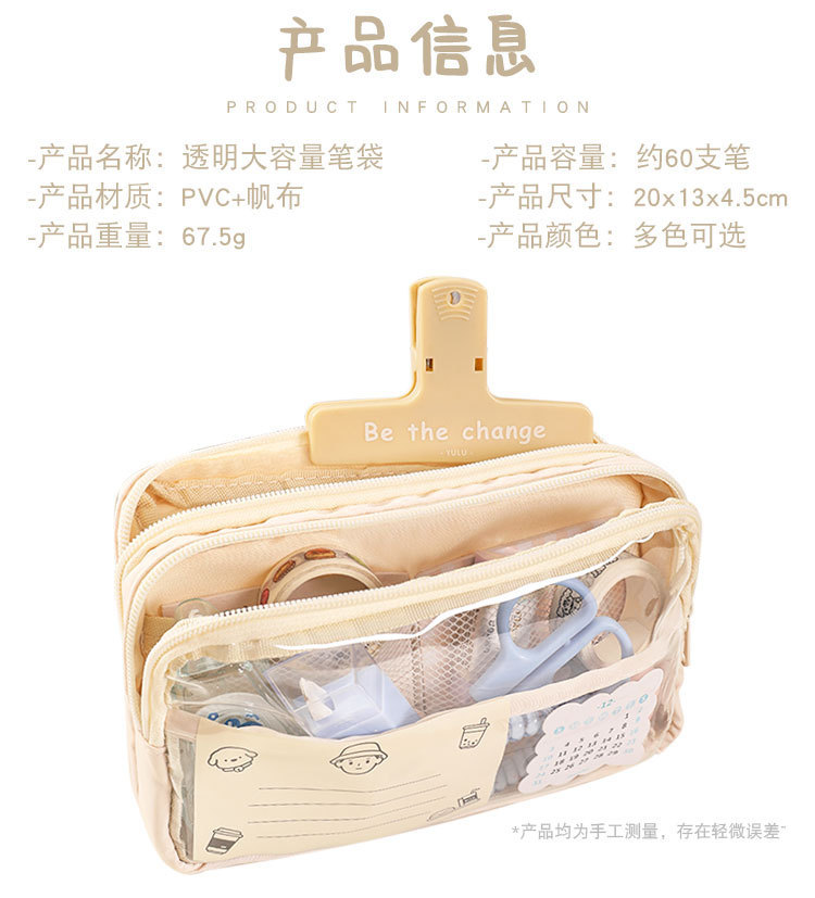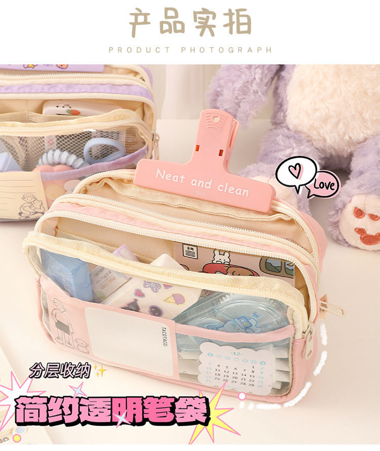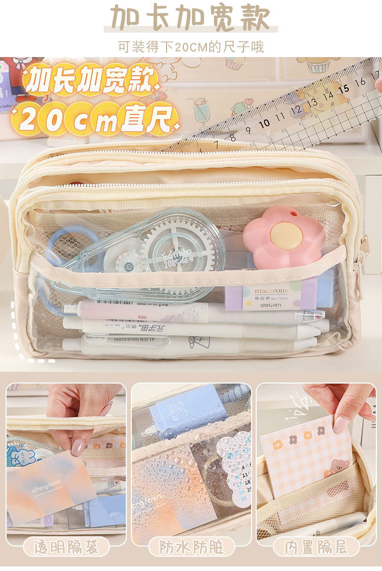 3단 대용량 투명 필통 도매 여학생 가방 초중등학생 필통 문구함 수납 가방