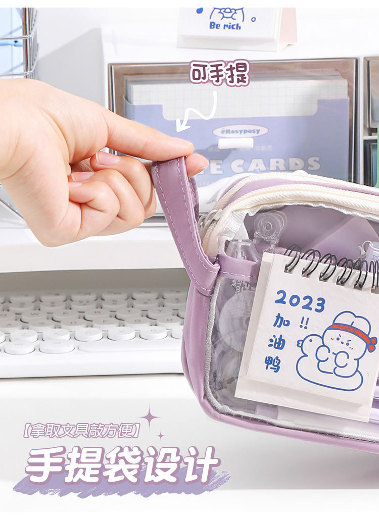 • 대용량 투명 연필 케이스-보라색 연필 케이스