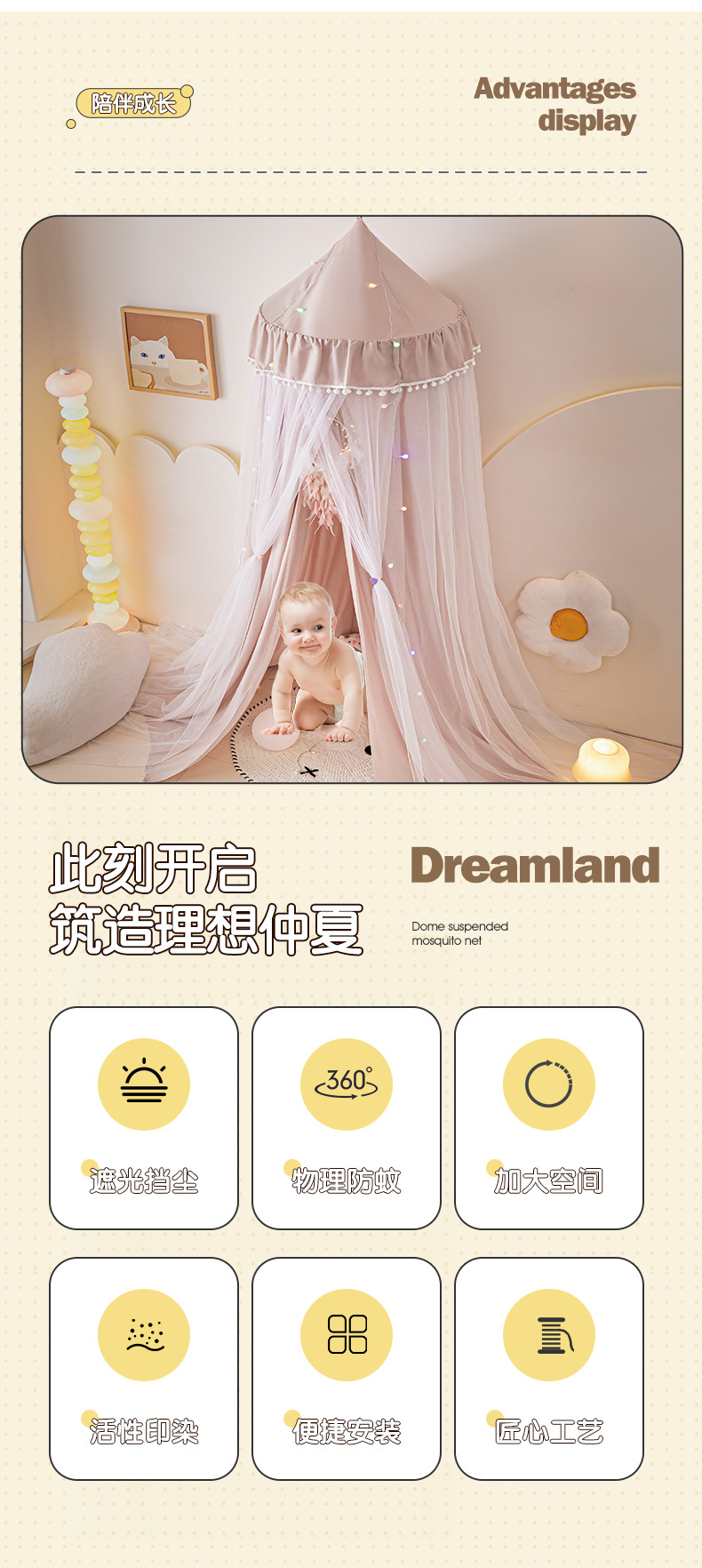 • 상단 원 직경 65CM 높이 270CM 낮은 헴 텐트 원사 800CM 천 커튼 400CM